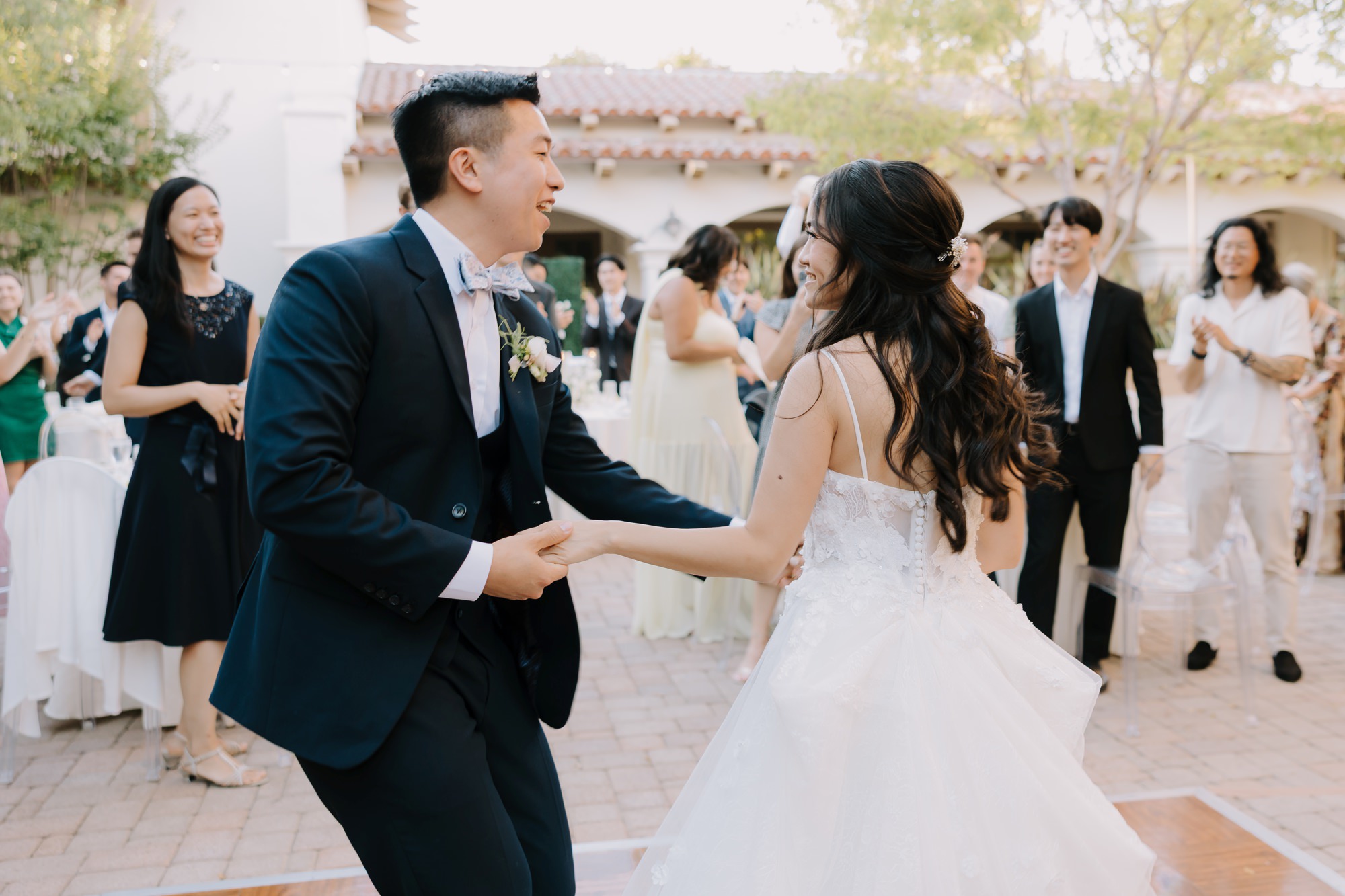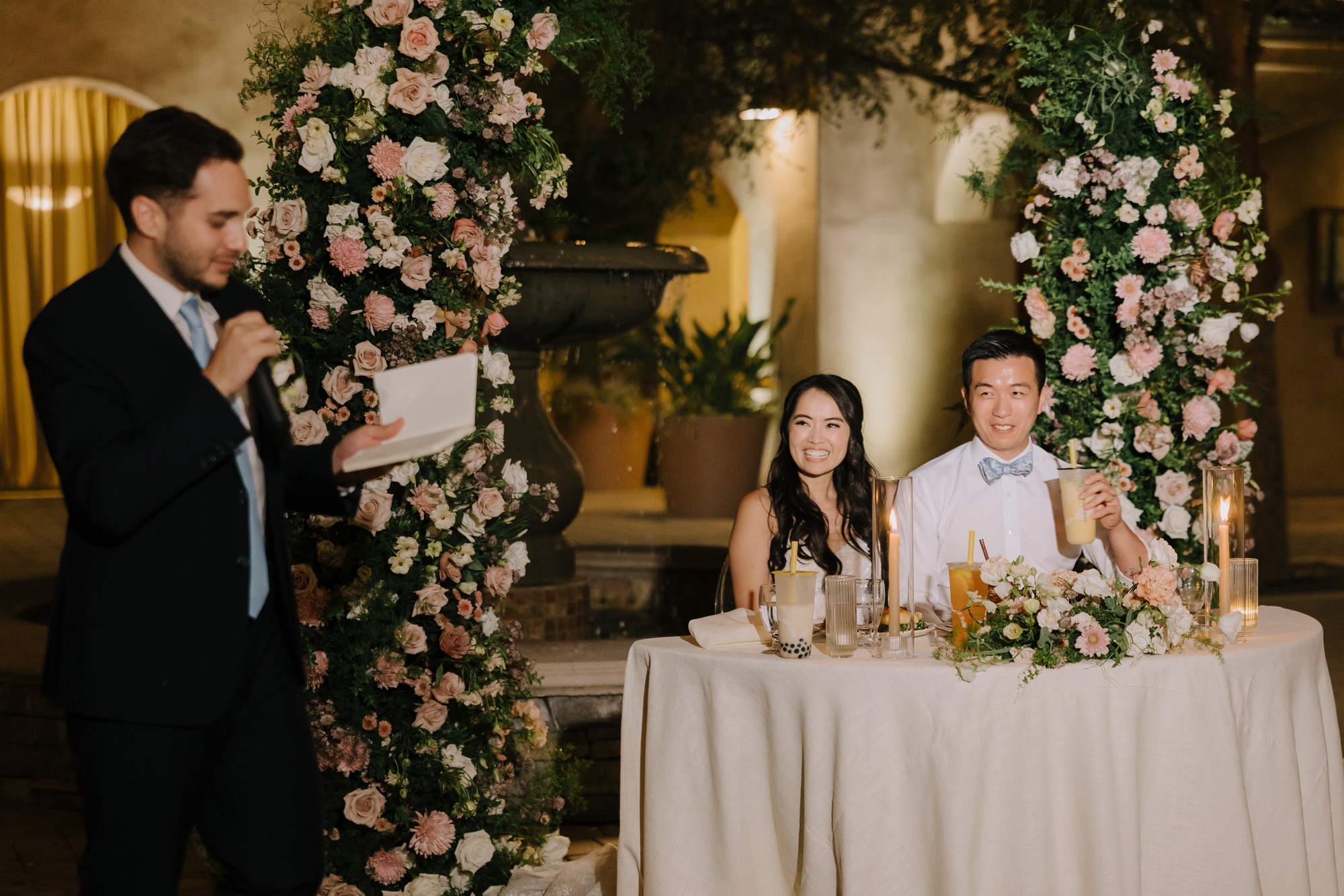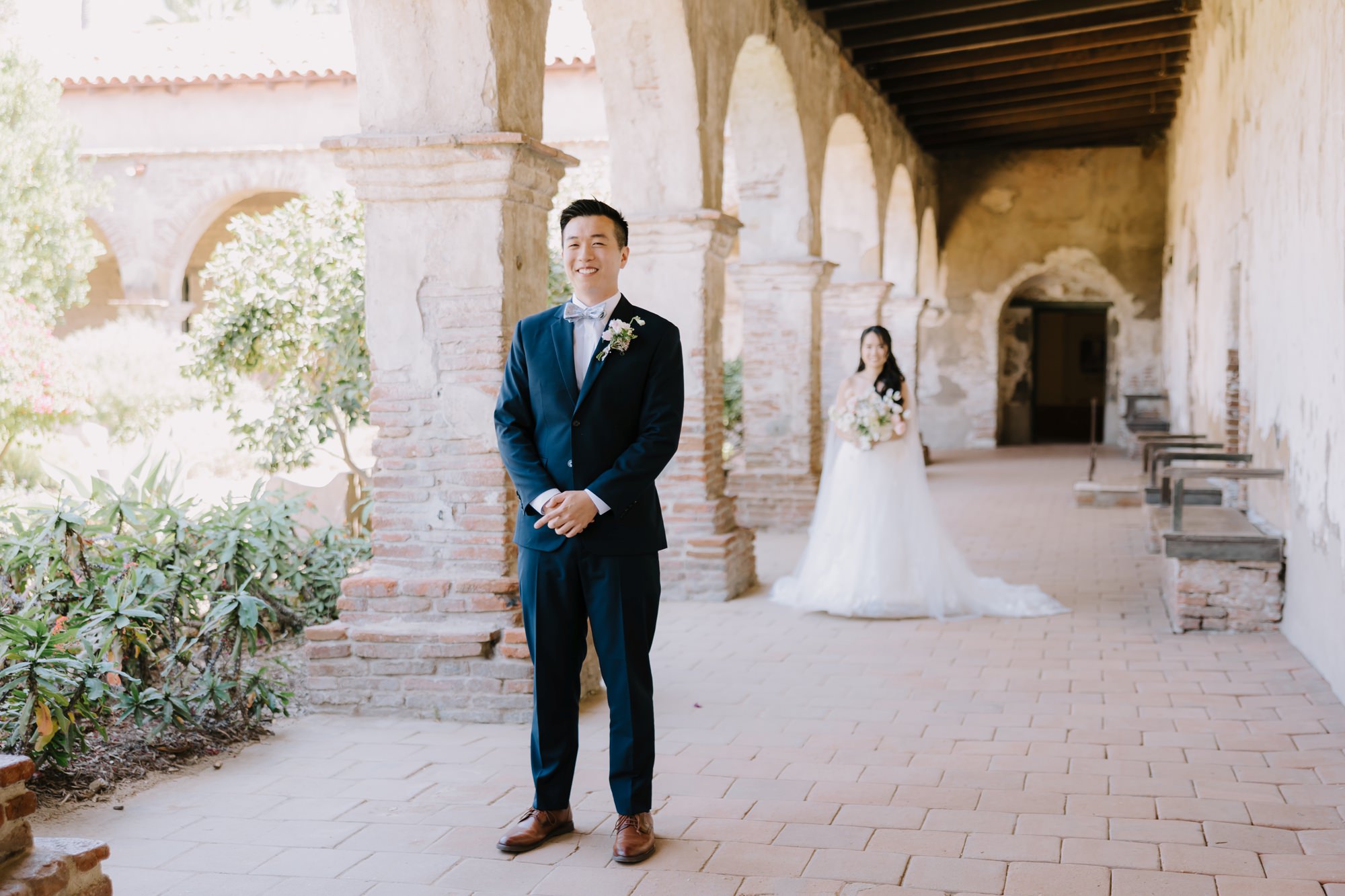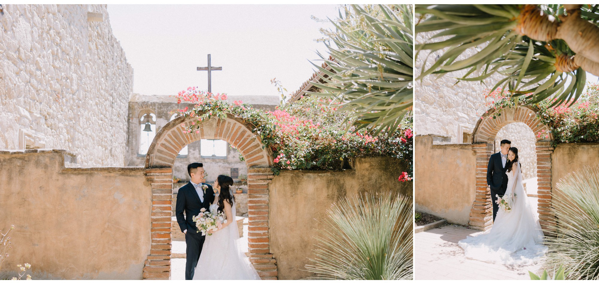 Mai and Nate’s wedding at the stunning Serra Plaza in San Juan Capistrano was a study in beautiful contrasts, a testament to how the perfect color palette can elevate an already picturesque setting.