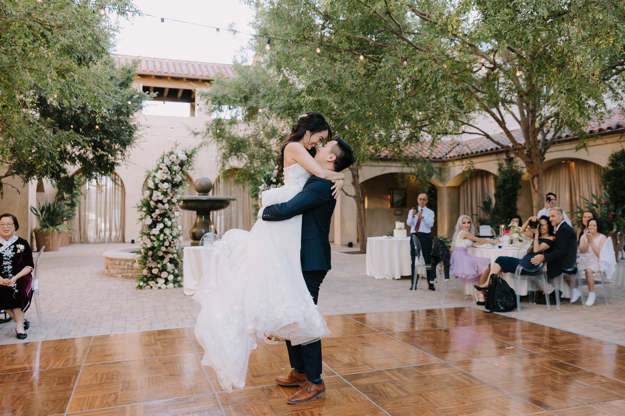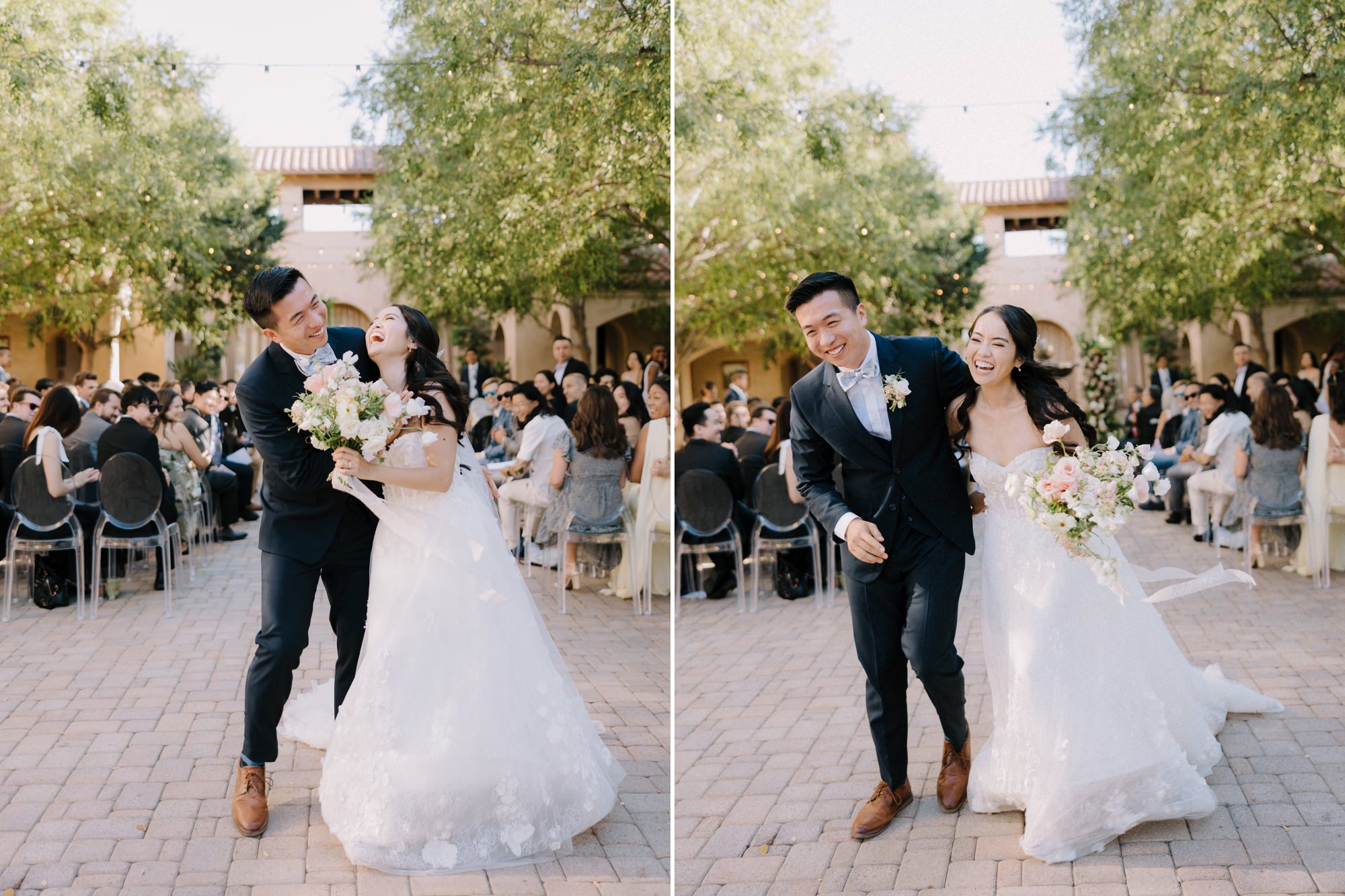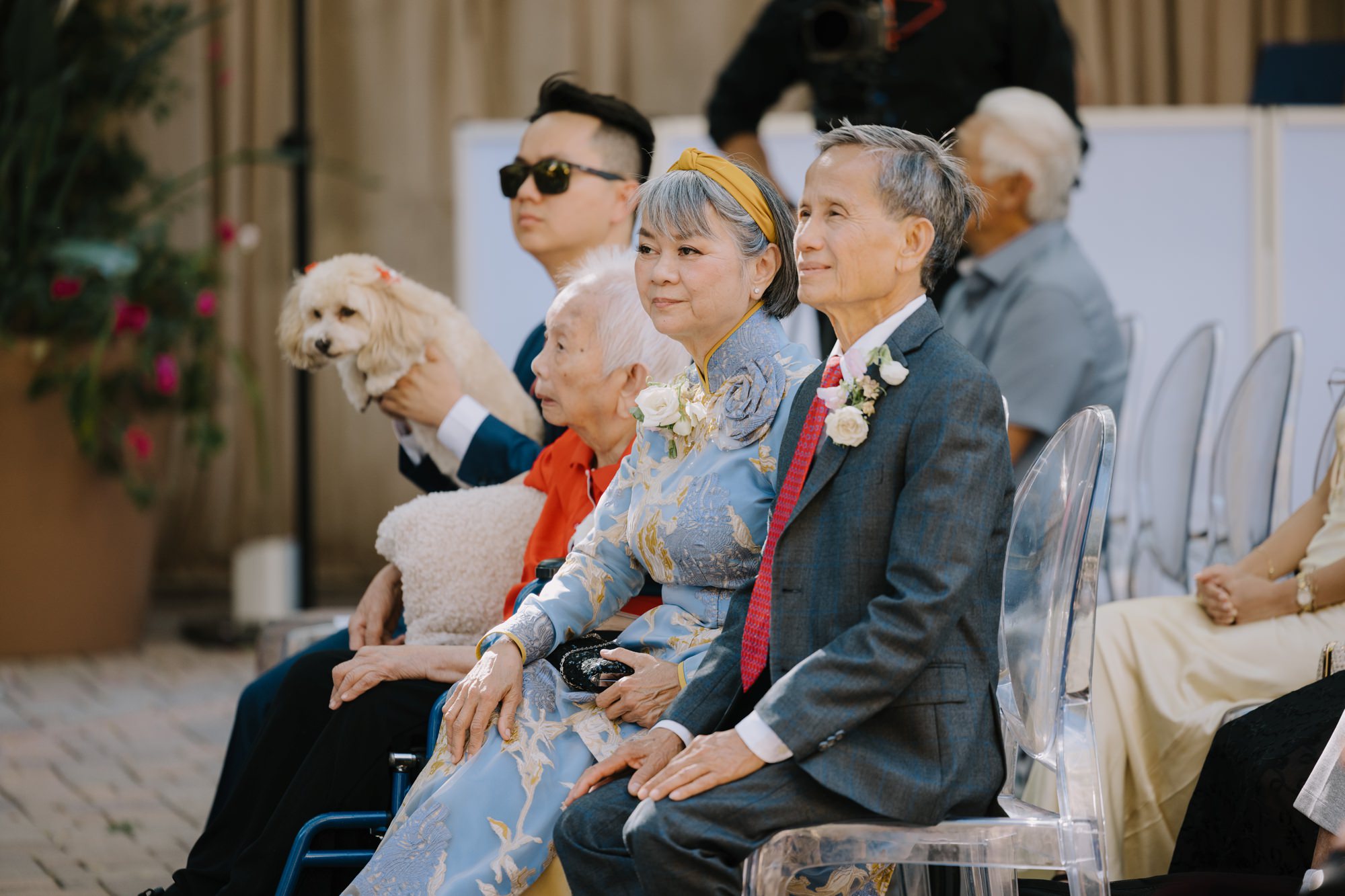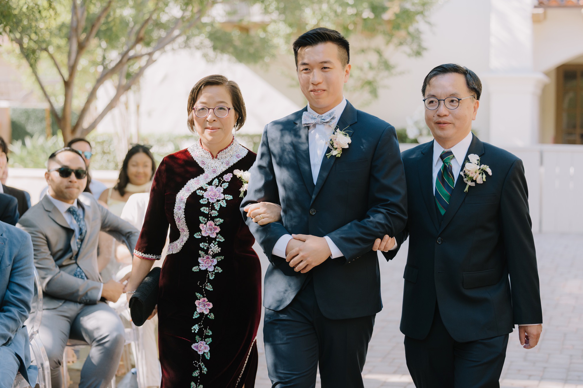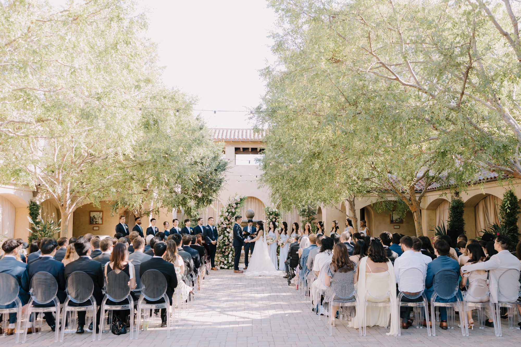 Mai and Nate’s wedding at the stunning Serra Plaza in San Juan Capistrano was a study in beautiful contrasts, a testament to how the perfect color palette can elevate an already picturesque setting.