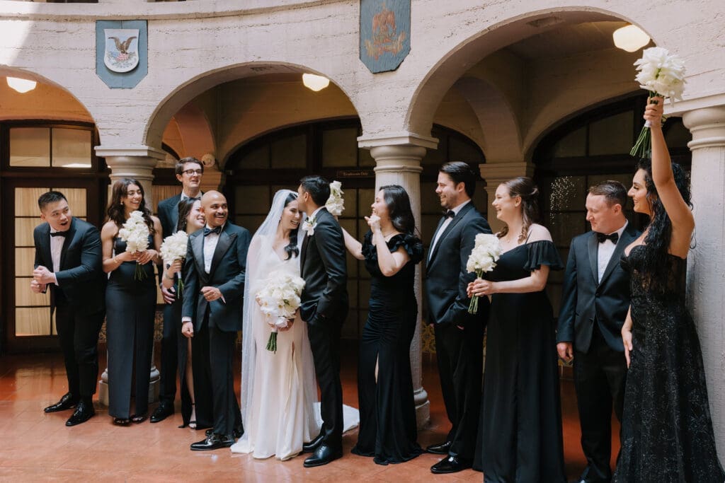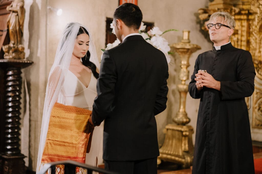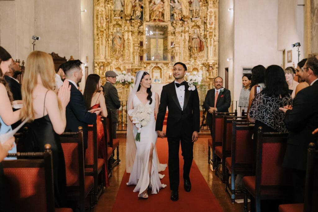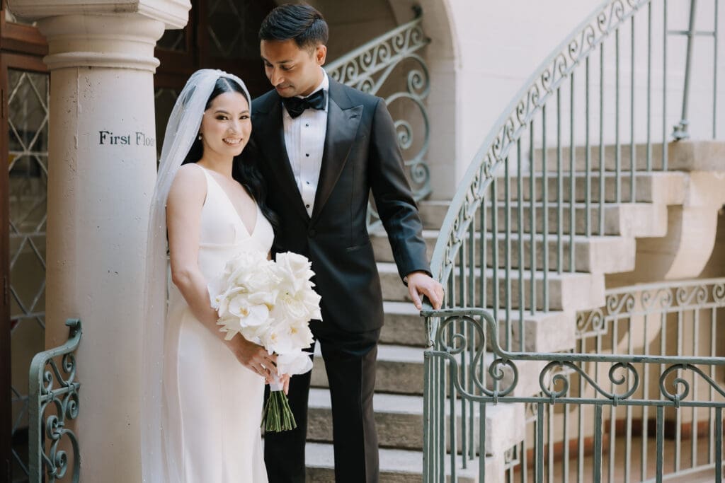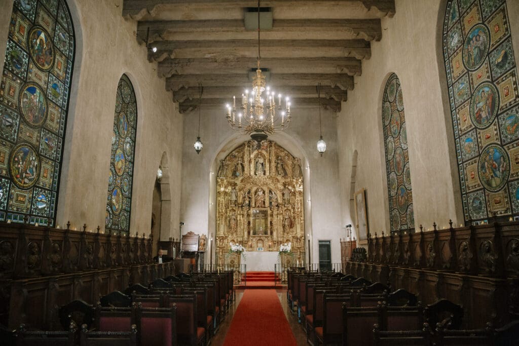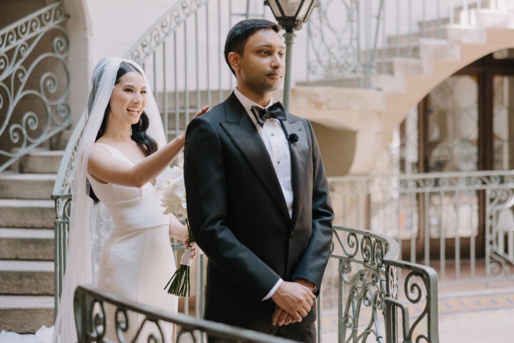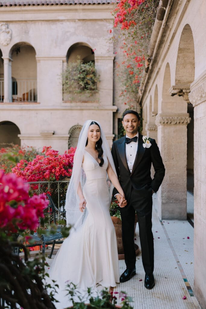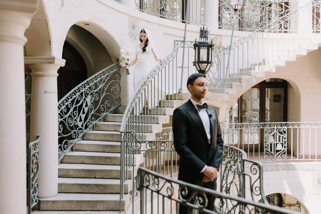 A “Historic” Ceremony & Reception The couple exchanged vows in the St. Francis of Assisi Chapel, framed by gold-leafed altars and stunning stained glass. Following the ceremony, guests transitioned to the Spanish Gallery. The gallery’s iconic arches and ambient lighting created an atmosphere of festivity that brought Yen and Vinay’s vision to life.