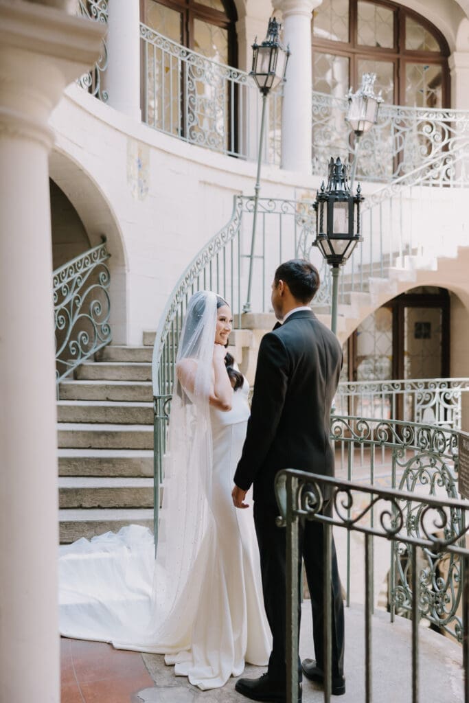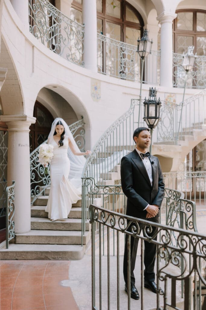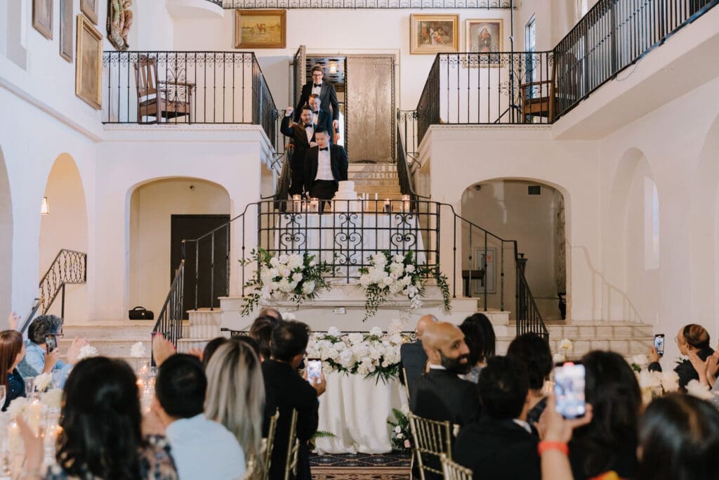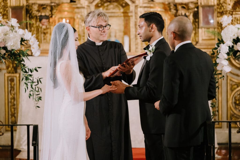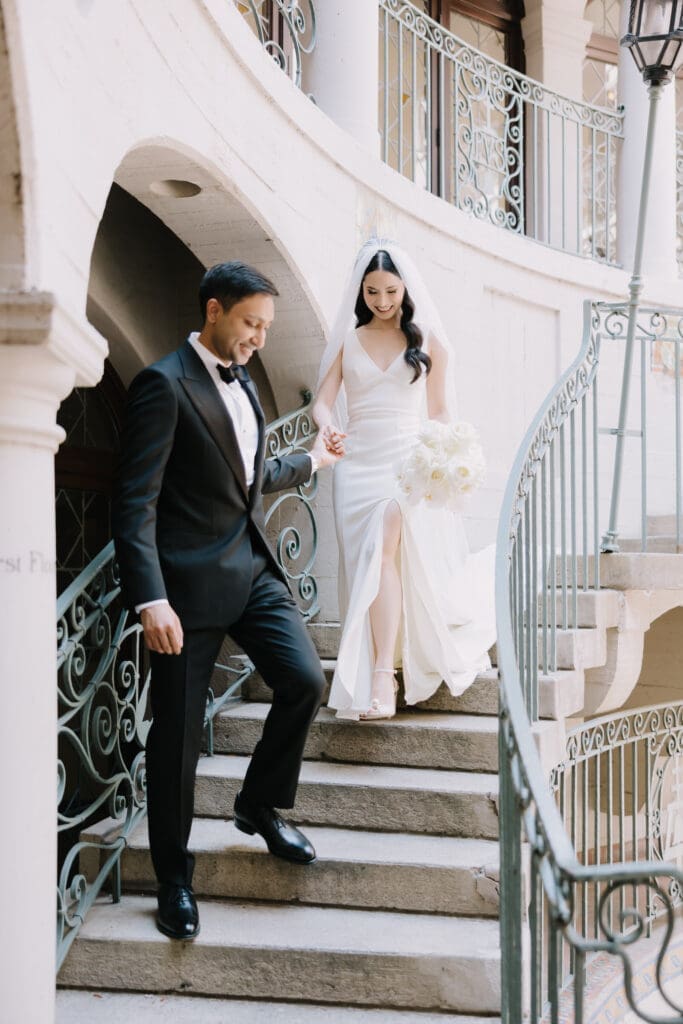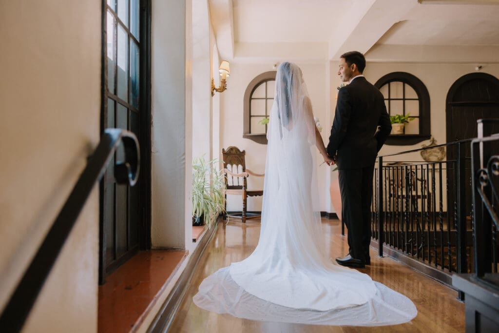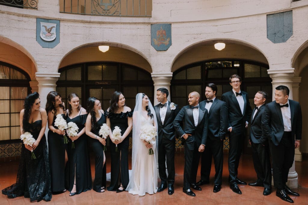 A “Historic” Ceremony & Reception The couple exchanged vows in the St. Francis of Assisi Chapel, framed by gold-leafed altars and stunning stained glass. Following the ceremony, guests transitioned to the Spanish Gallery. The gallery’s iconic arches and ambient lighting created an atmosphere of festivity that brought Yen and Vinay’s vision to life.
