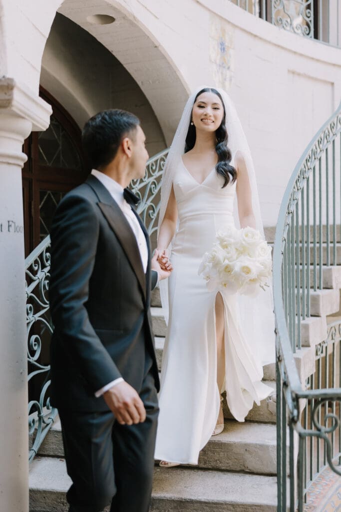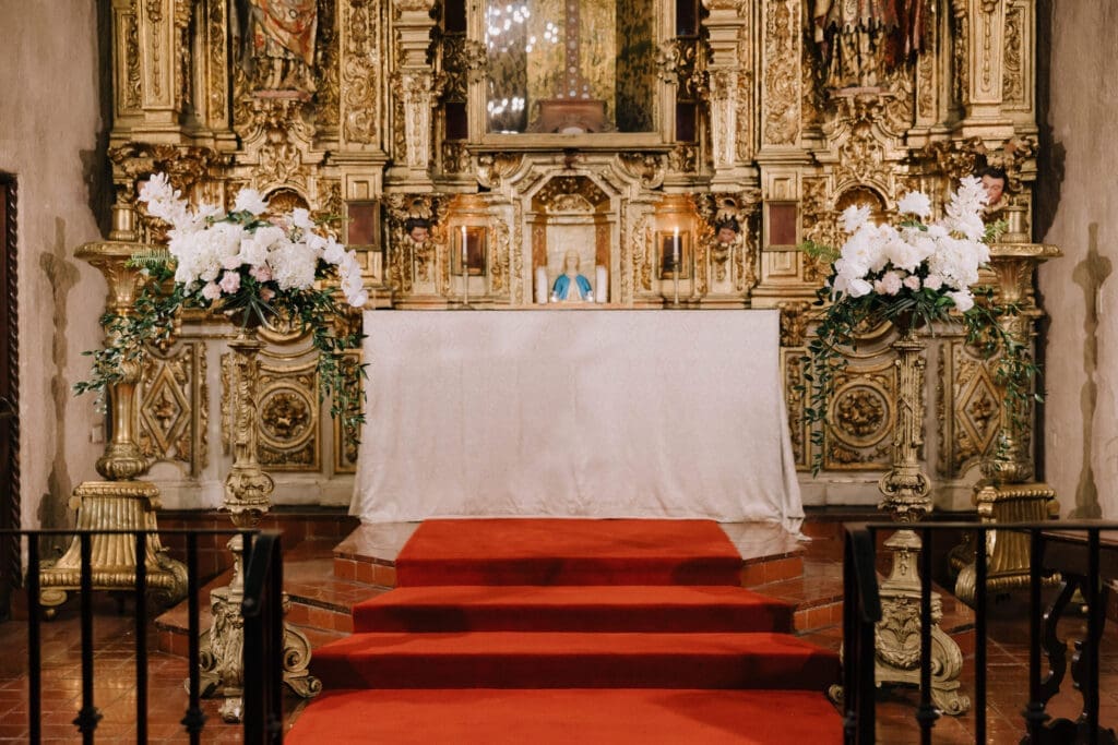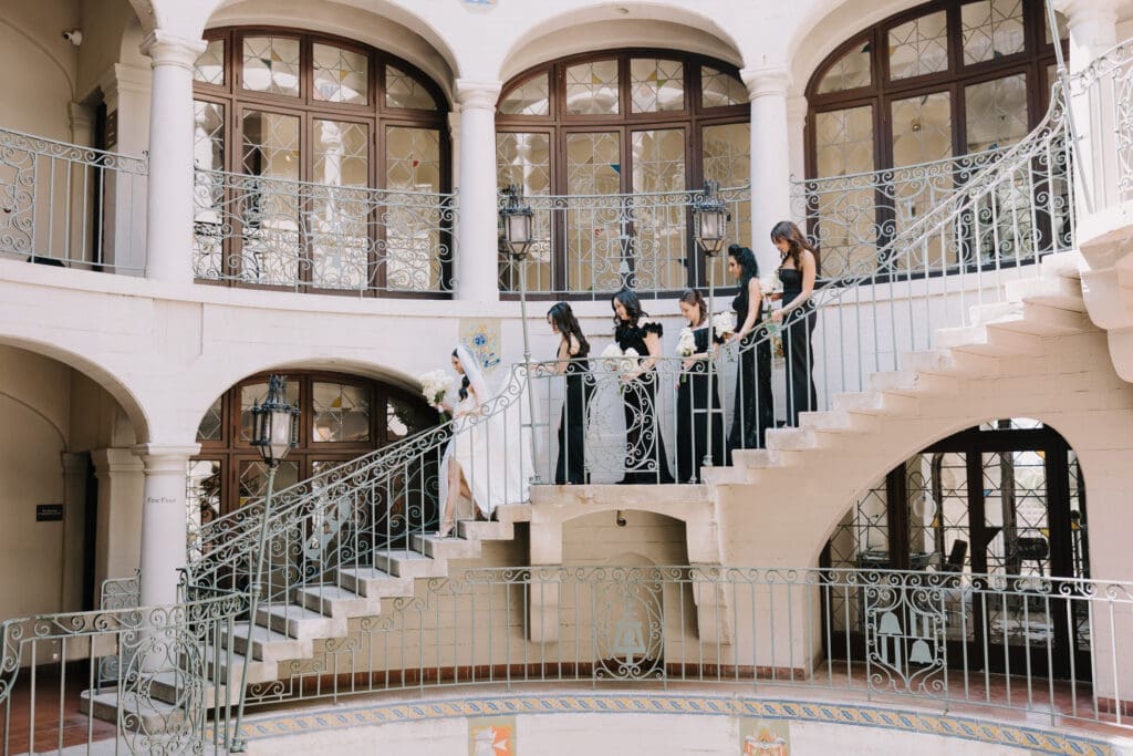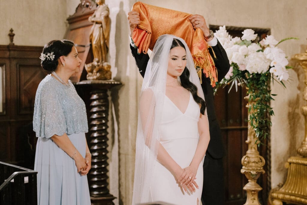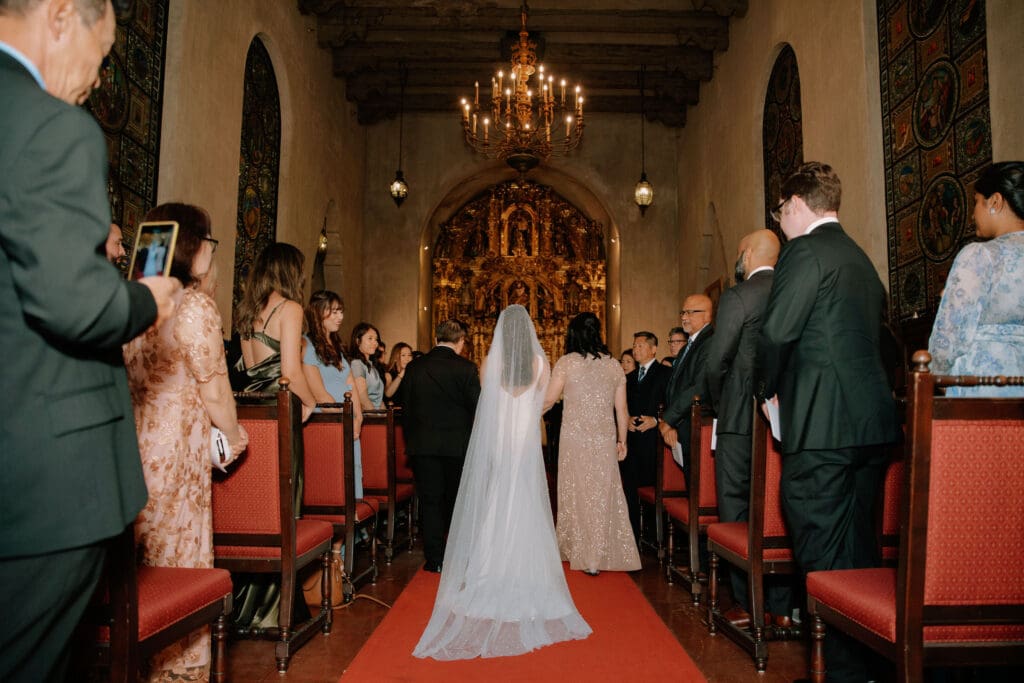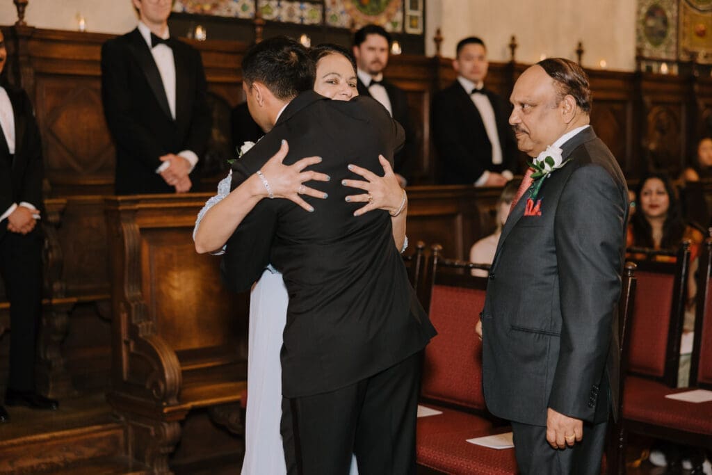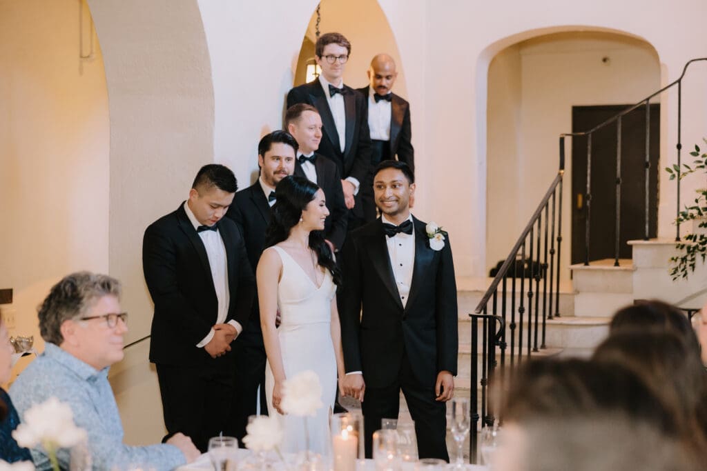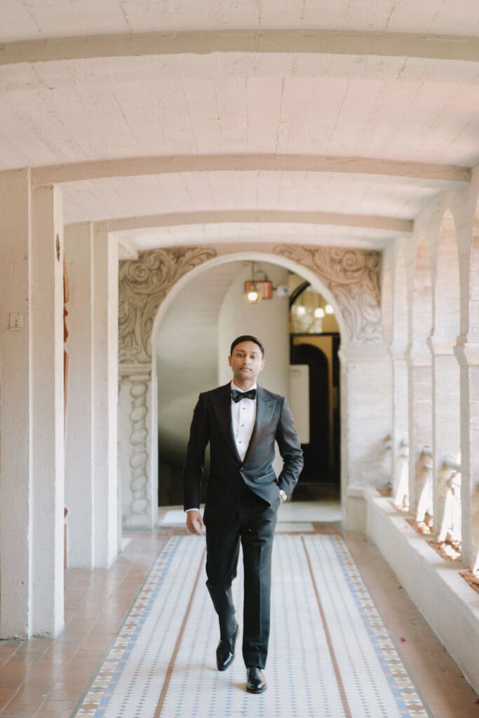 A “Historic” Ceremony & Reception The couple exchanged vows in the St. Francis of Assisi Chapel, framed by gold-leafed altars and stunning stained glass. Following the ceremony, guests transitioned to the Spanish Gallery. The gallery’s iconic arches and ambient lighting created an atmosphere of festivity that brought Yen and Vinay’s vision to life.