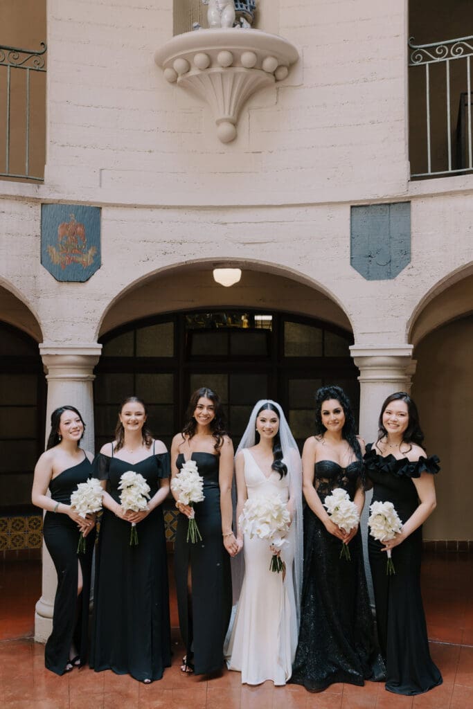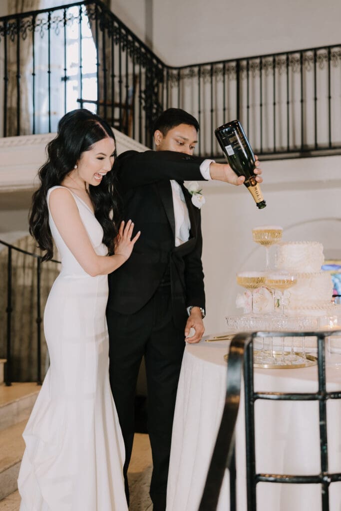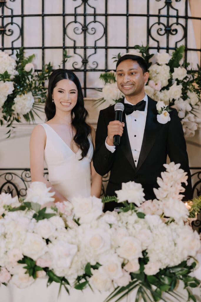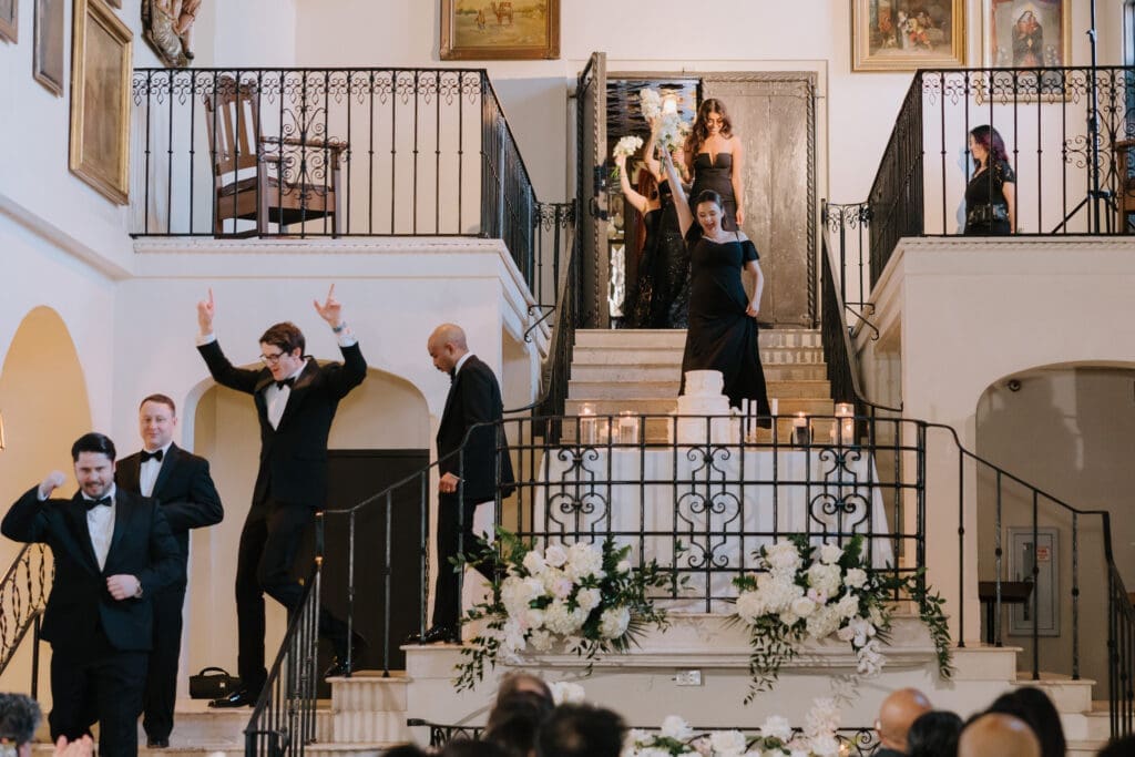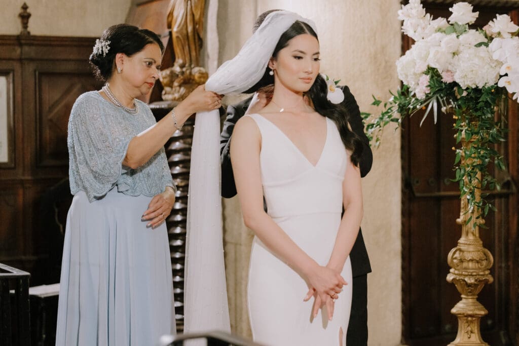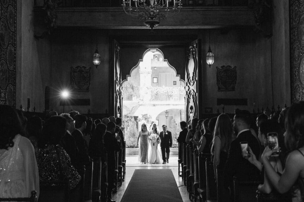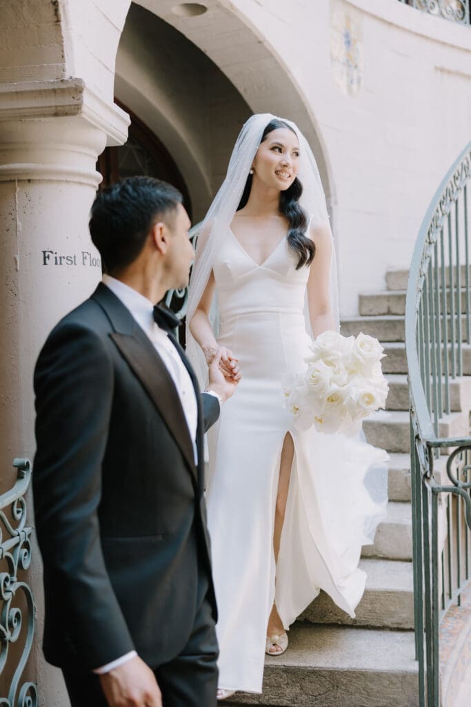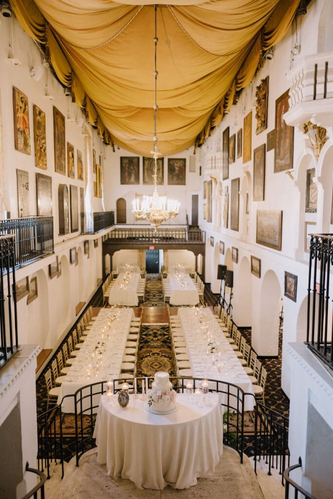 A “Historic” Ceremony & Reception The couple exchanged vows in the St. Francis of Assisi Chapel, framed by gold-leafed altars and stunning stained glass. Following the ceremony, guests transitioned to the Spanish Gallery. The gallery’s iconic arches and ambient lighting created an atmosphere of festivity that brought Yen and Vinay’s vision to life.