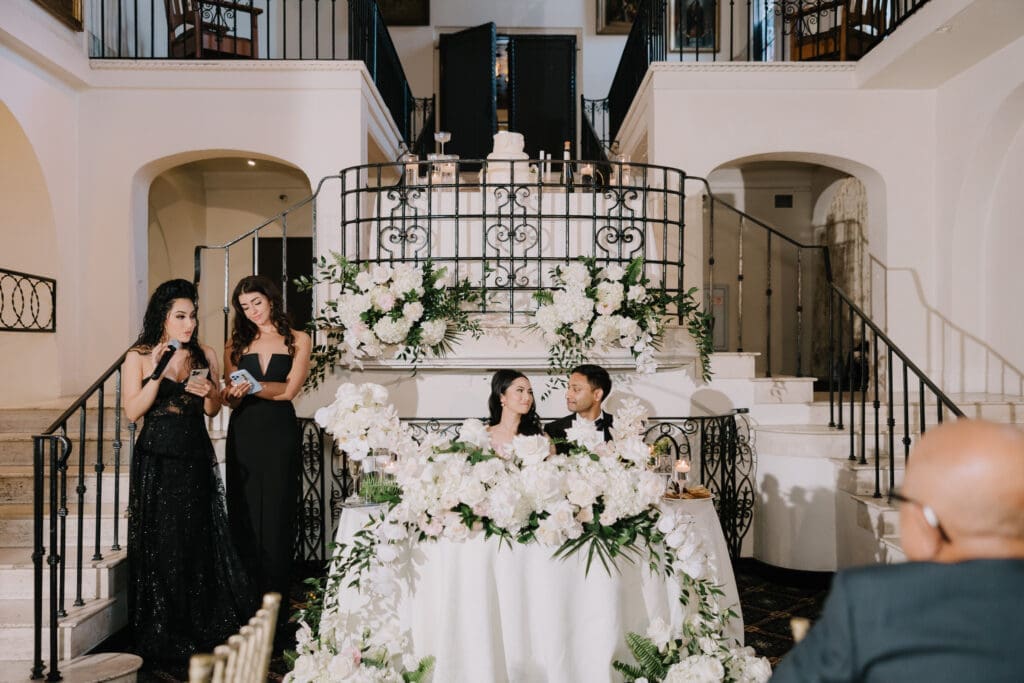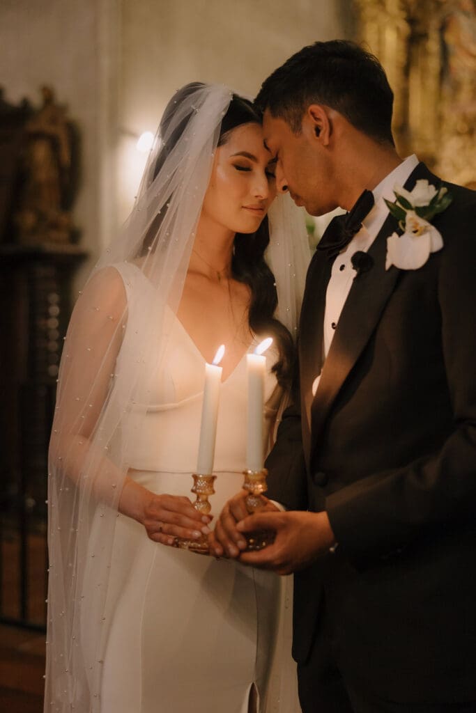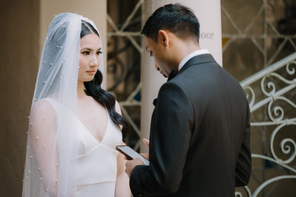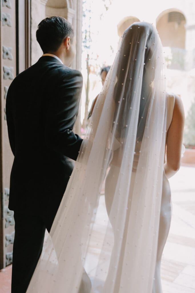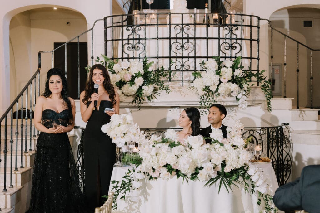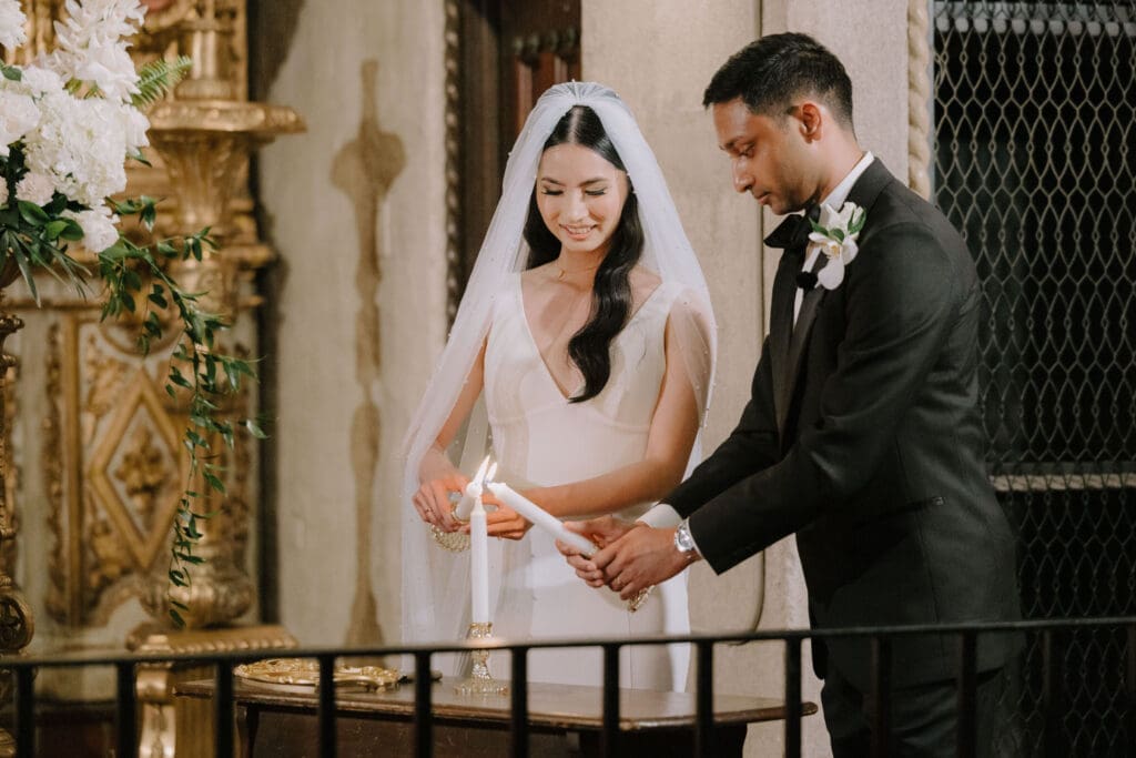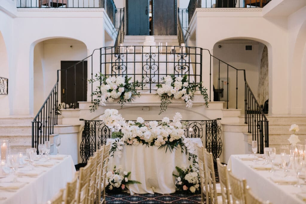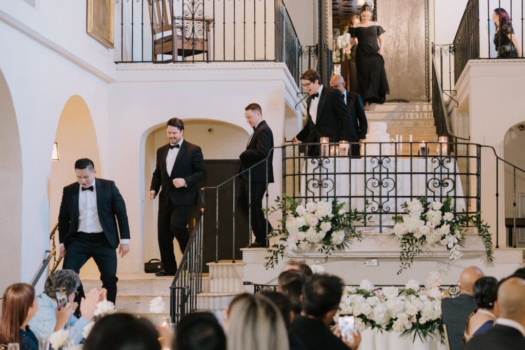 A “Historic” Ceremony & Reception The couple exchanged vows in the St. Francis of Assisi Chapel, framed by gold-leafed altars and stunning stained glass. Following the ceremony, guests transitioned to the Spanish Gallery. The gallery’s iconic arches and ambient lighting created an atmosphere of festivity that brought Yen and Vinay’s vision to life.
