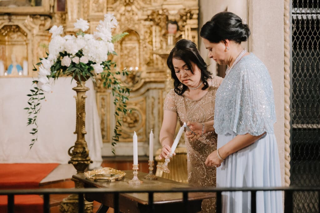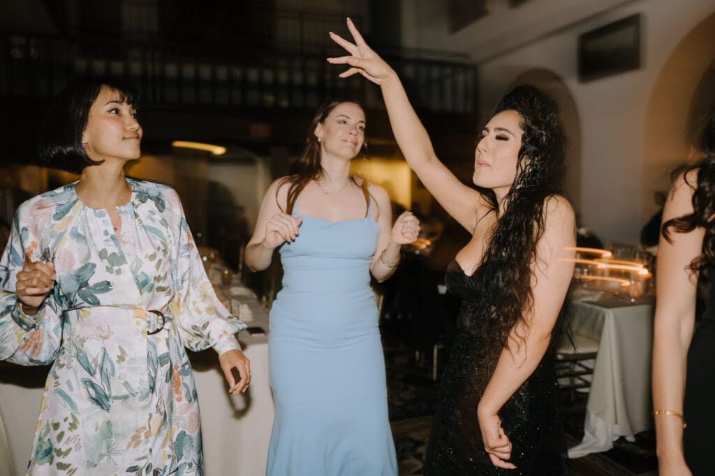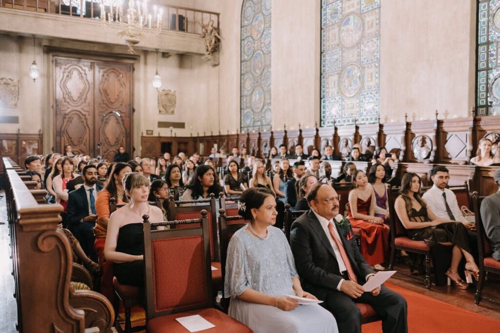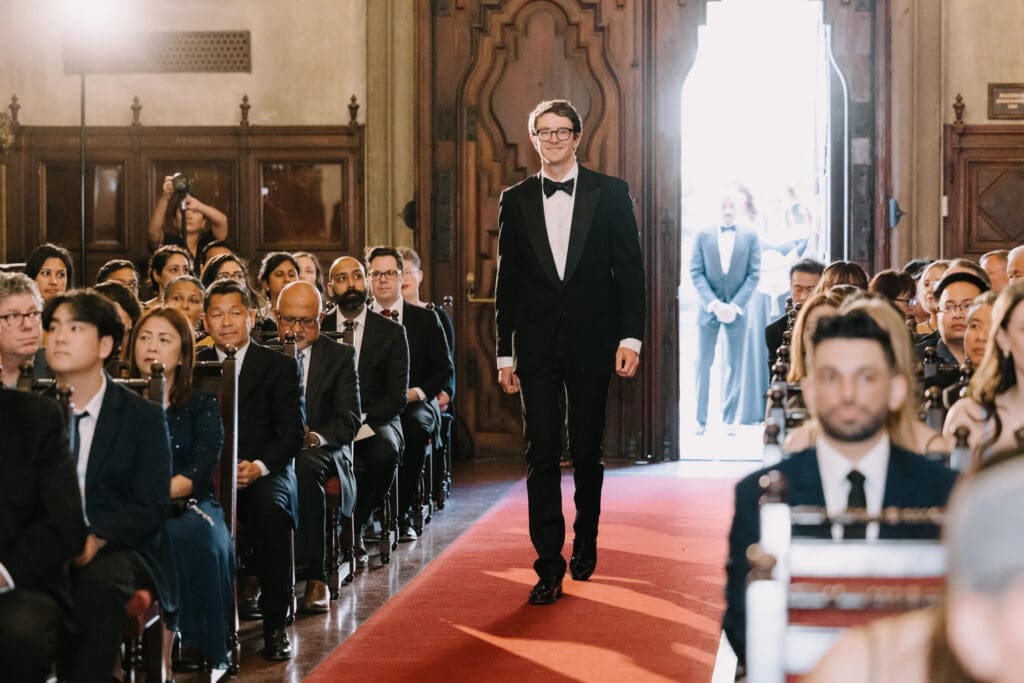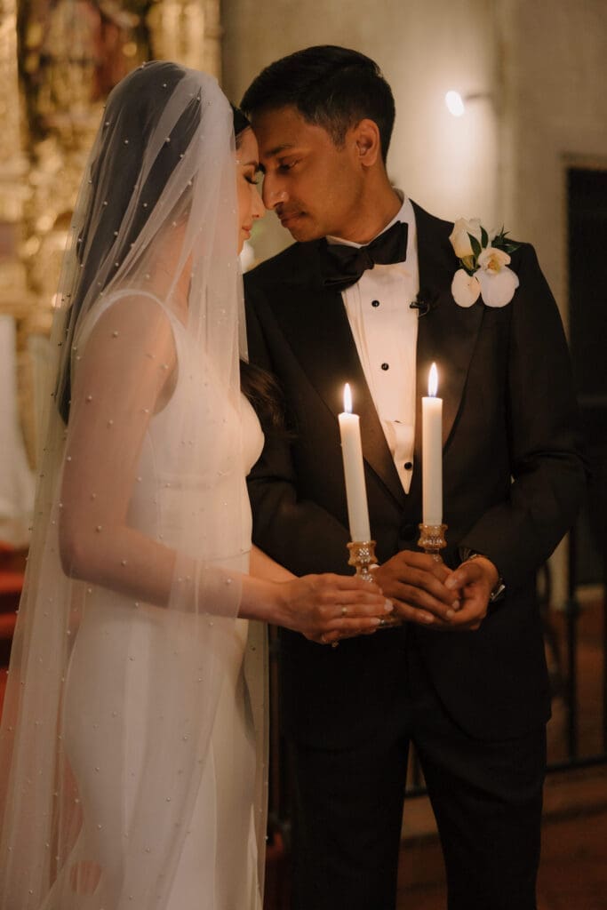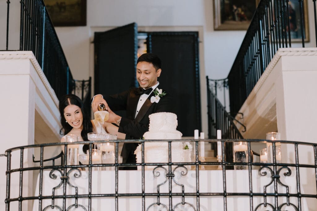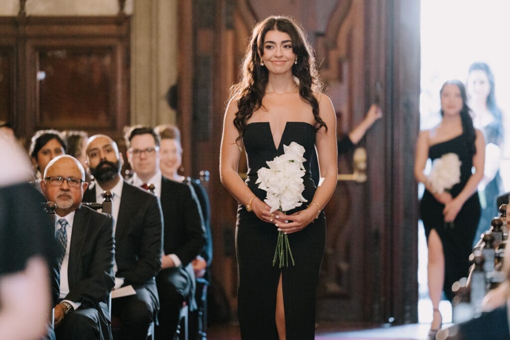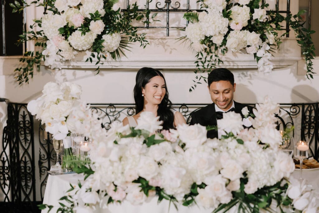 A “Historic” Ceremony & Reception The couple exchanged vows in the St. Francis of Assisi Chapel, framed by gold-leafed altars and stunning stained glass. Following the ceremony, guests transitioned to the Spanish Gallery. The gallery’s iconic arches and ambient lighting created an atmosphere of festivity that brought Yen and Vinay’s vision to life.