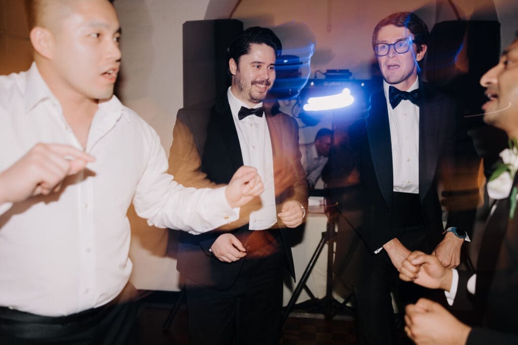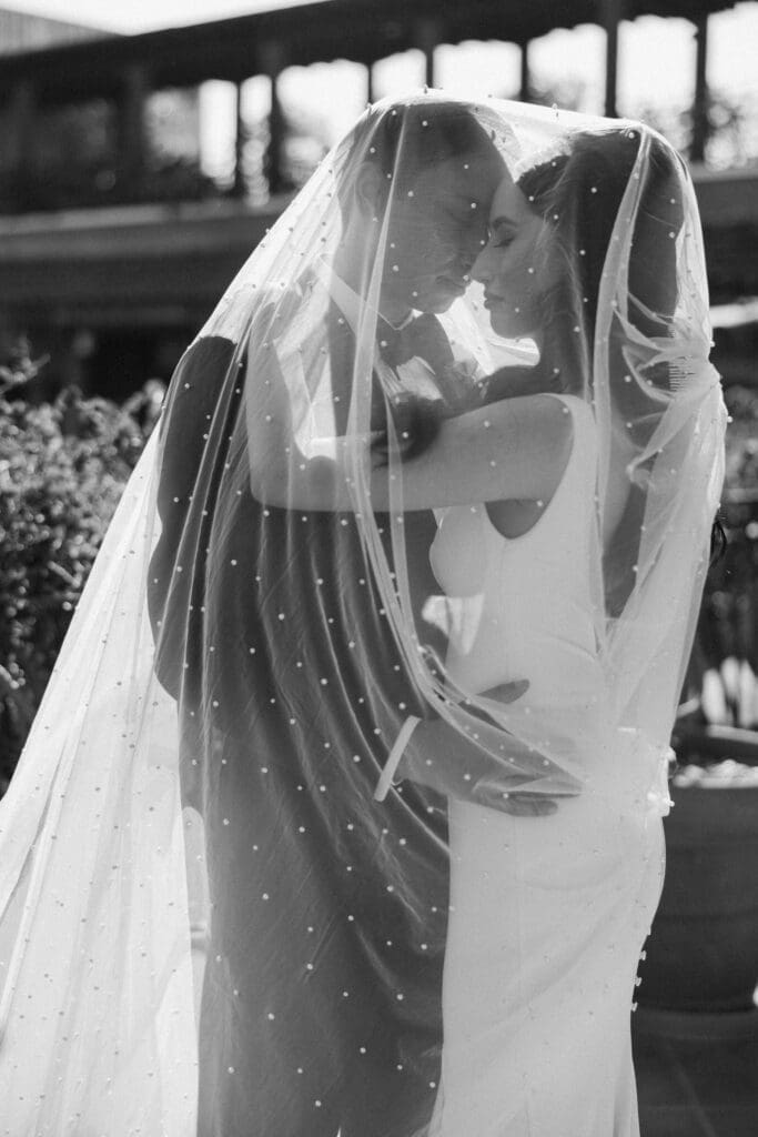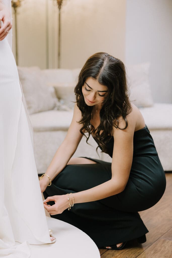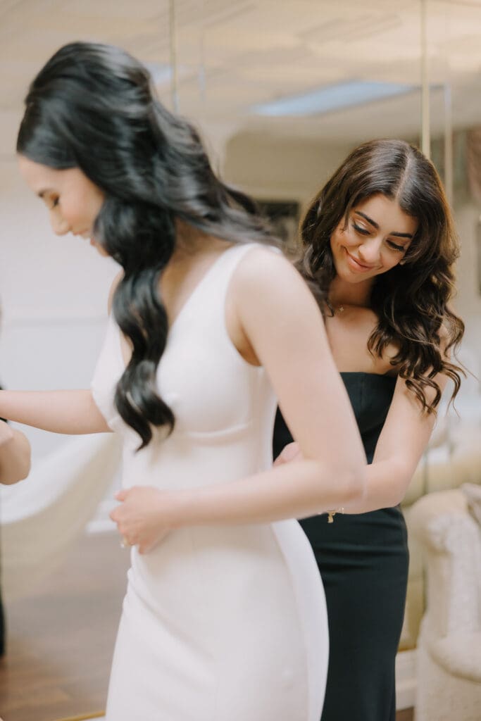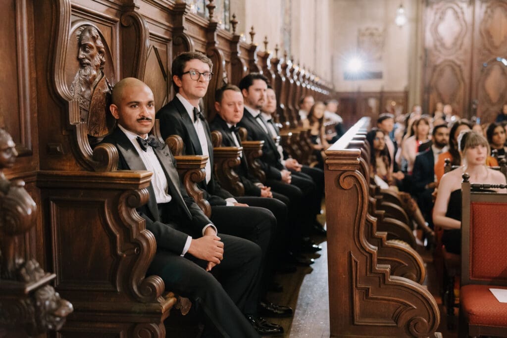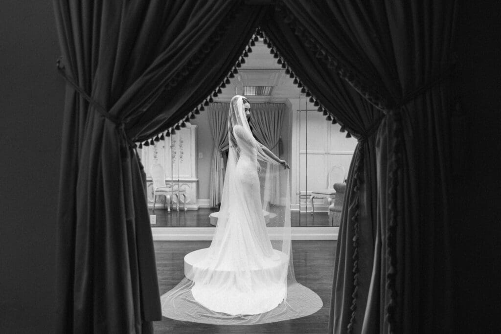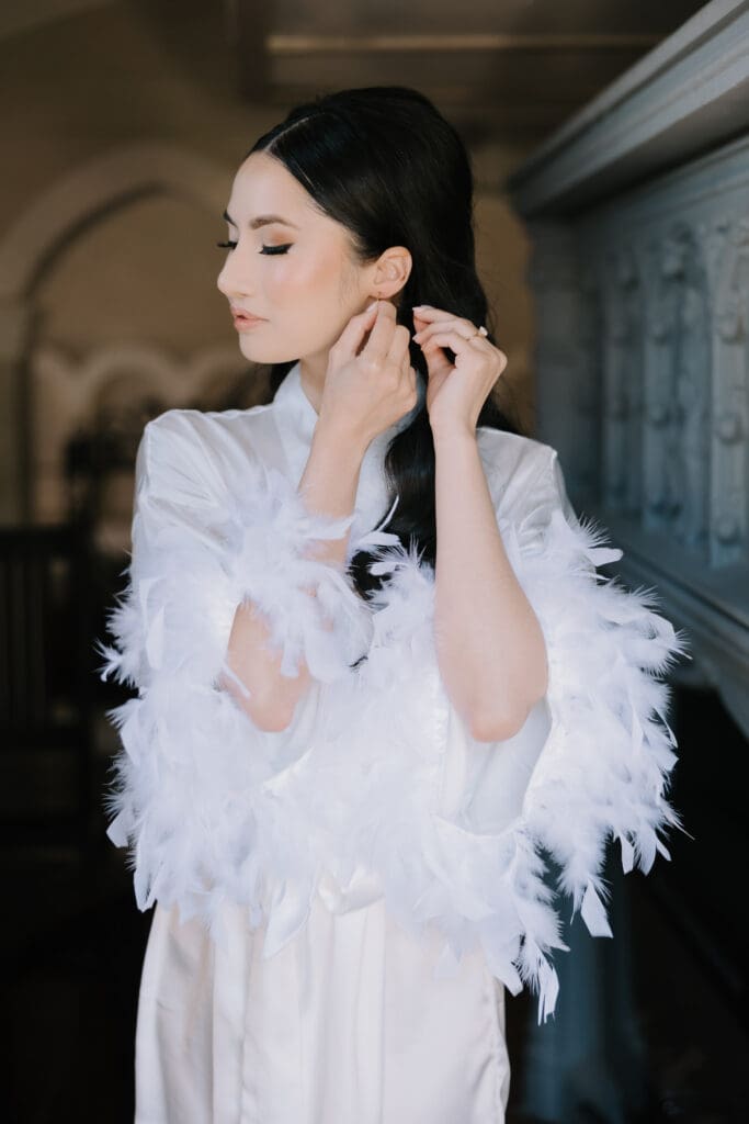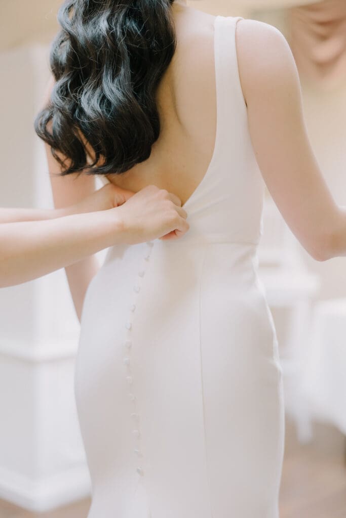 A Sophisticated Start The morning set a refined tone. Yen’s bridesmaids wore silky black gowns, perfectly complementing the groomsmen’s classic tuxedos. Against the backdrop of the Inn’s intricate stone carvings, Yen was the epitome of bridal beauty.