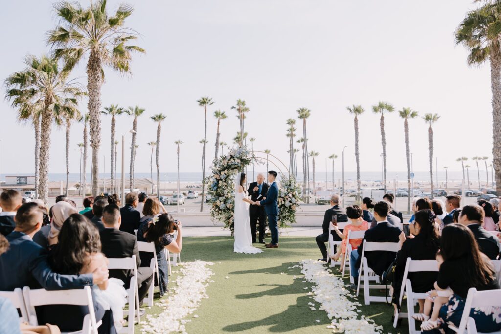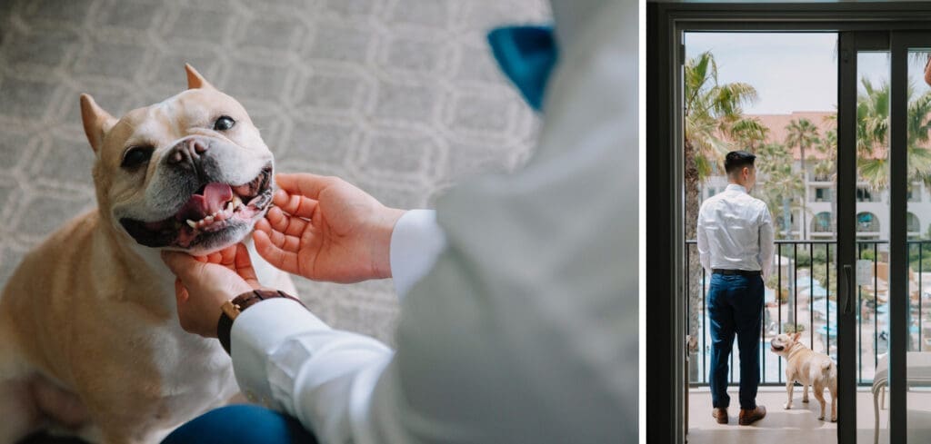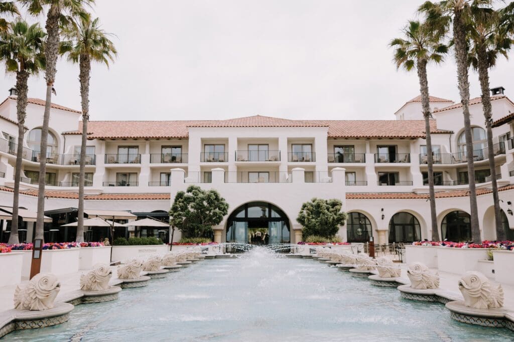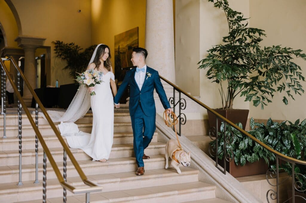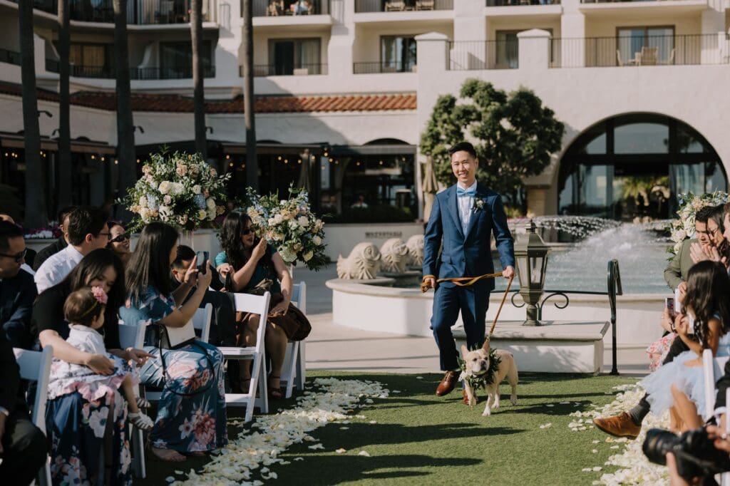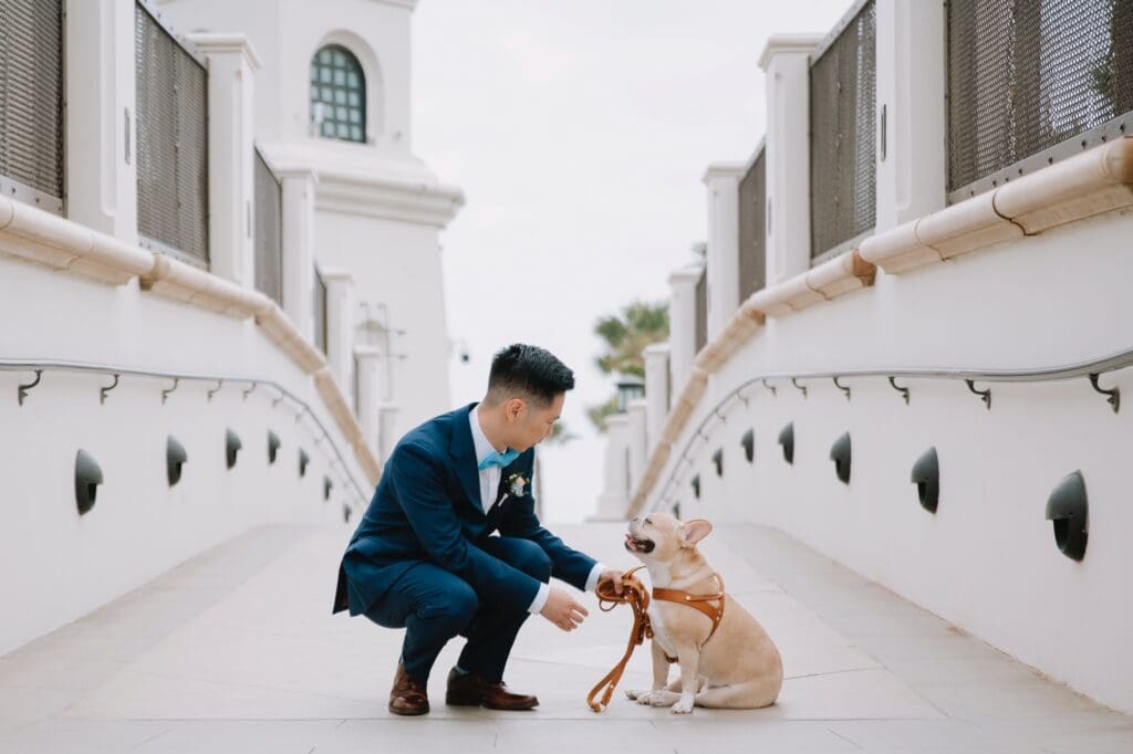 The Hyatt Huntington Beach is iconic for a reason. With its Spanish-inspired architecture, sprawling courtyards, and direct bridge access to the sand, it offers that “resort-style” luxury that feels worlds away from the city. For Angela and Andrew, the venue provided the beachy, tropical vibe they craved without the logistical hurdles of international pet travel.