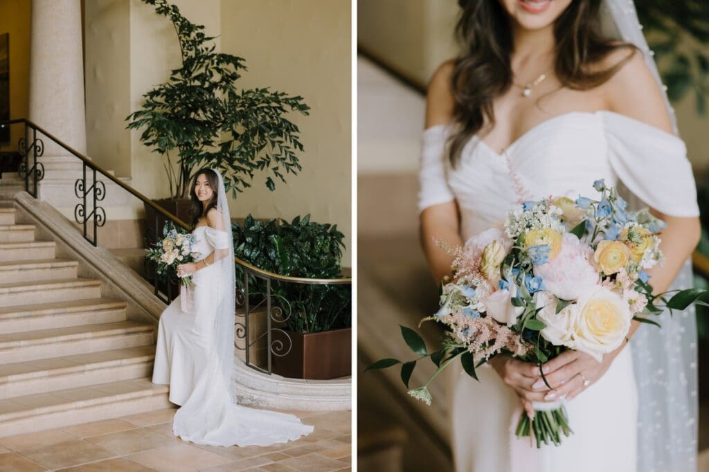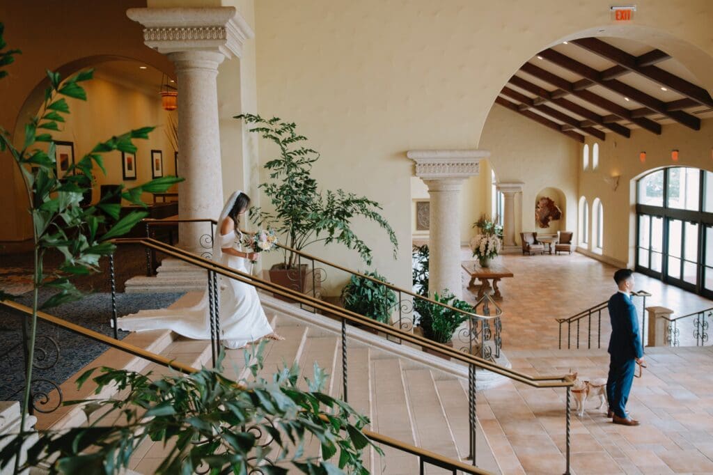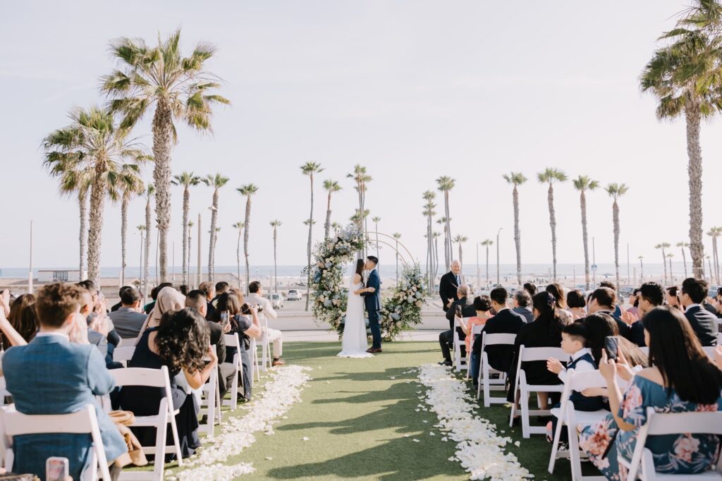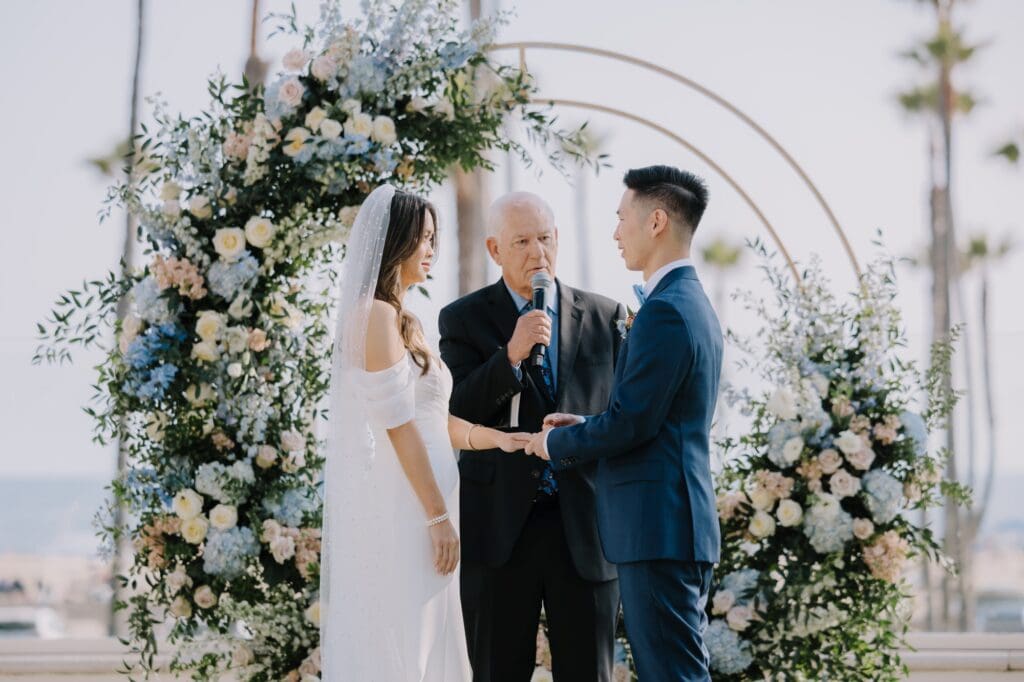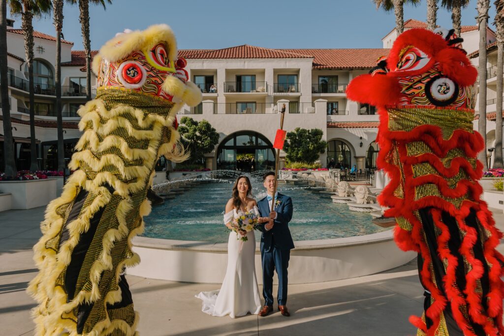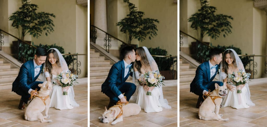 The Hyatt Huntington Beach is iconic for a reason. With its Spanish-inspired architecture, sprawling courtyards, and direct bridge access to the sand, it offers that “resort-style” luxury that feels worlds away from the city. For Angela and Andrew, the venue provided the beachy, tropical vibe they craved without the logistical hurdles of international pet travel.