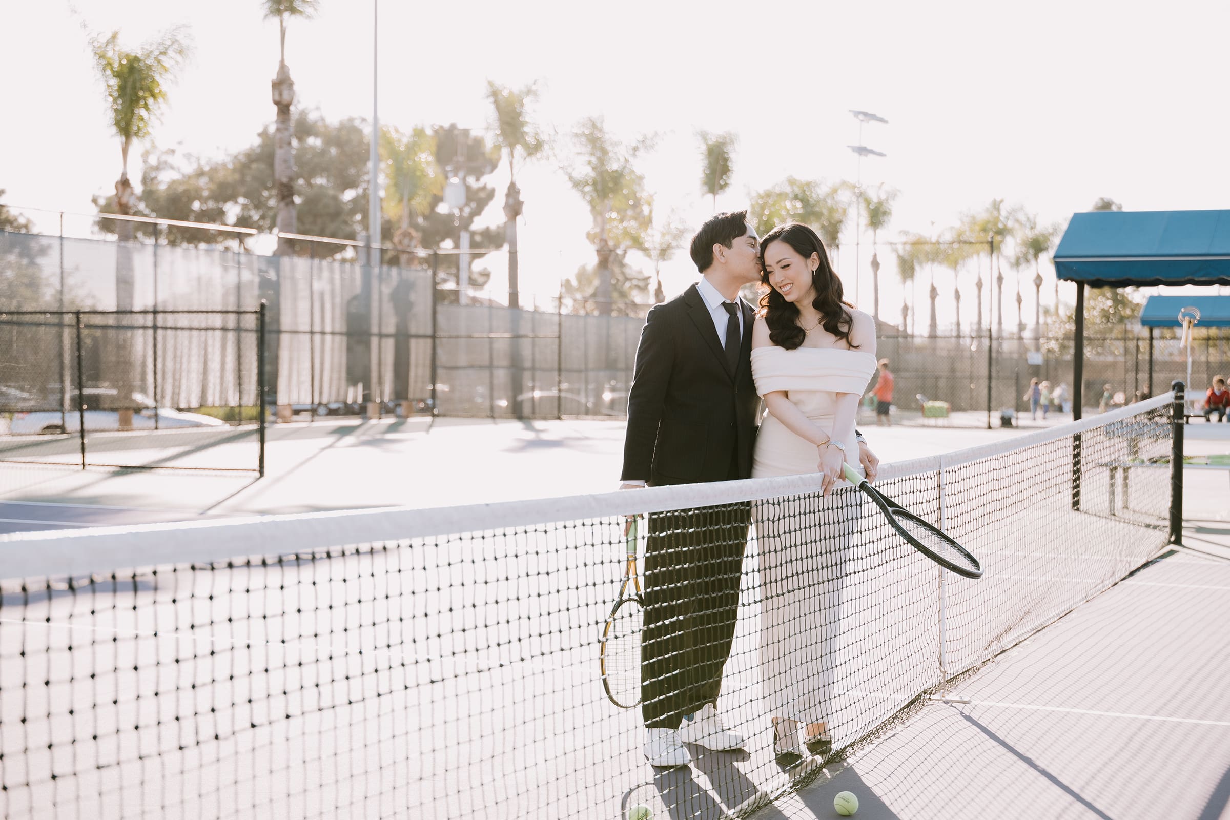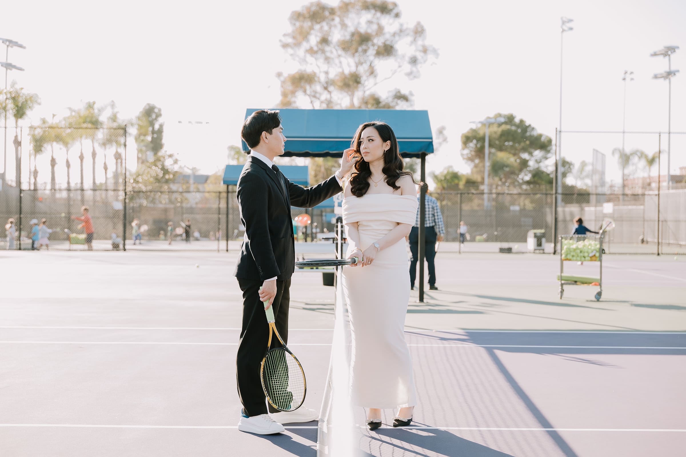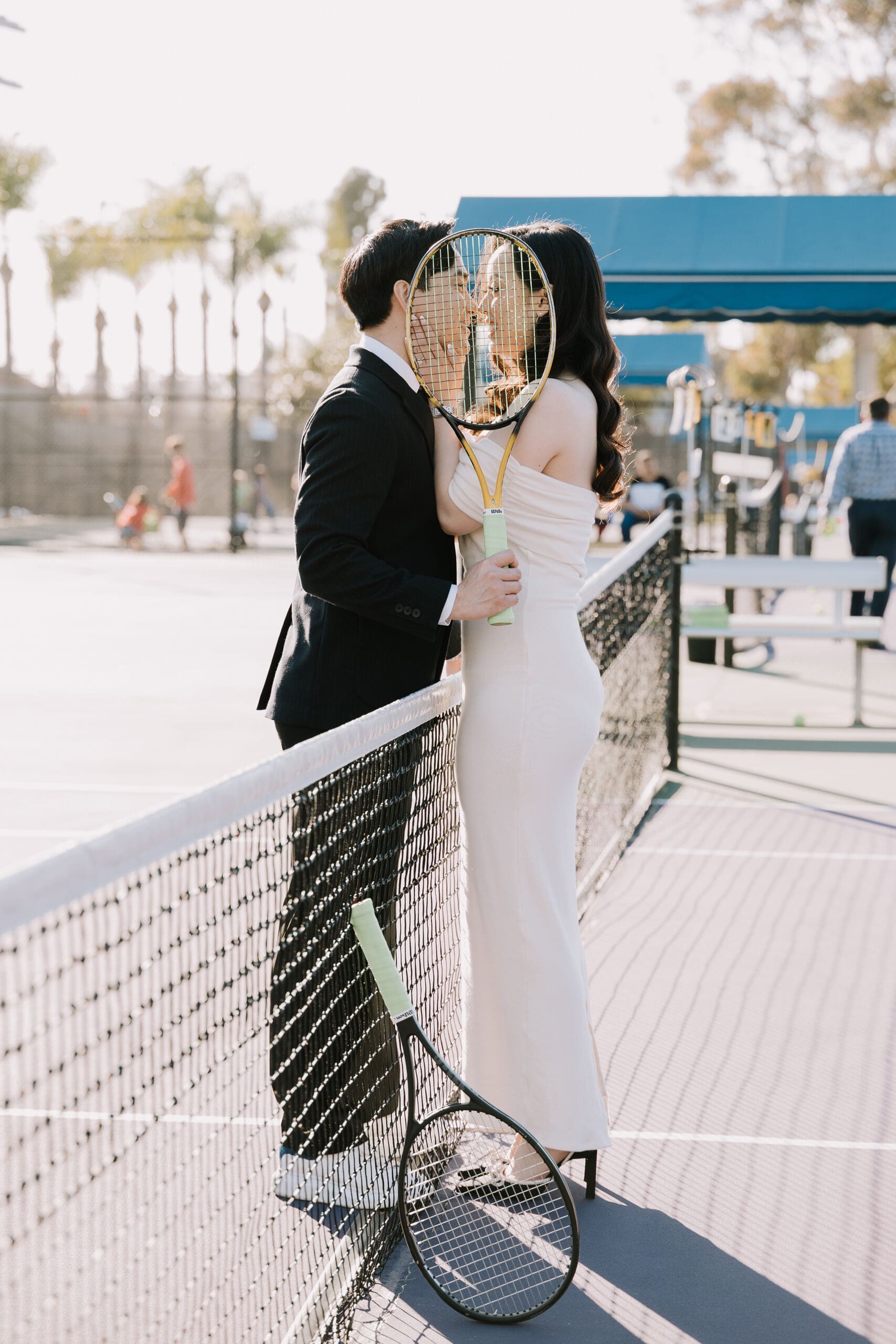 Viet and Jackie’s Long Beach Tennis Court Home Style Engagement beautifully captures the heart of their love story in an elegant, intimate way.