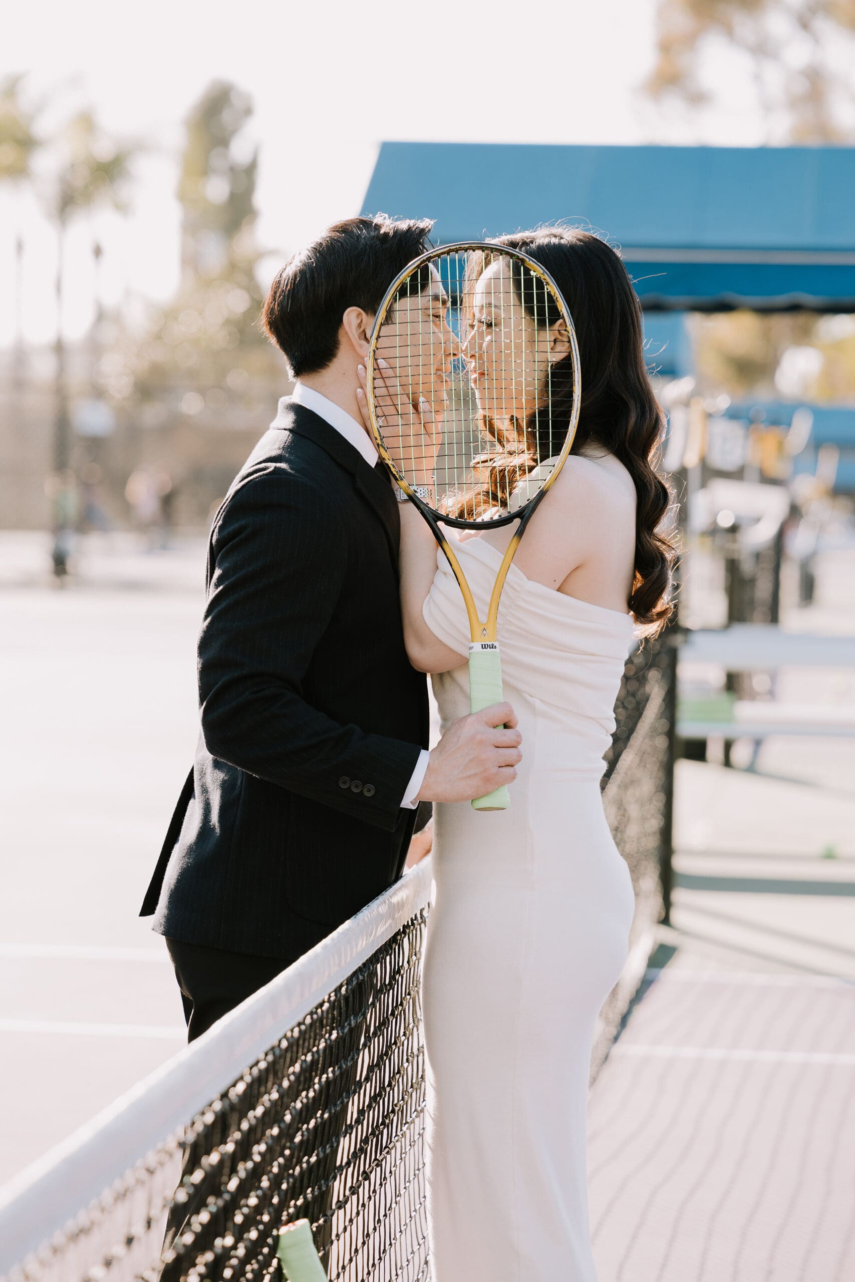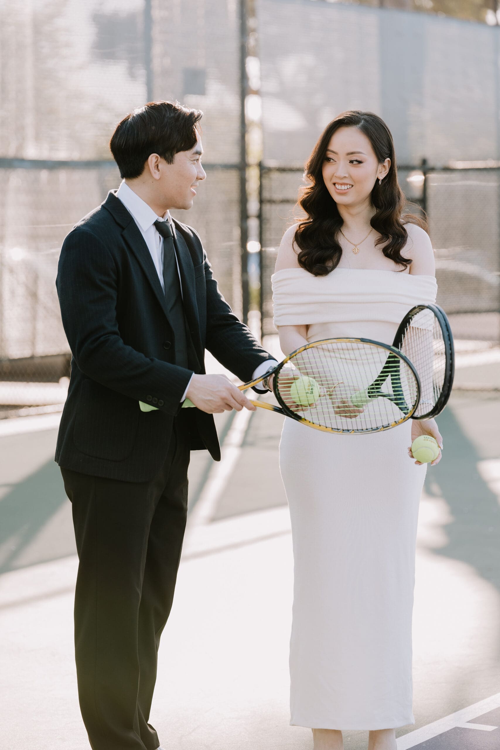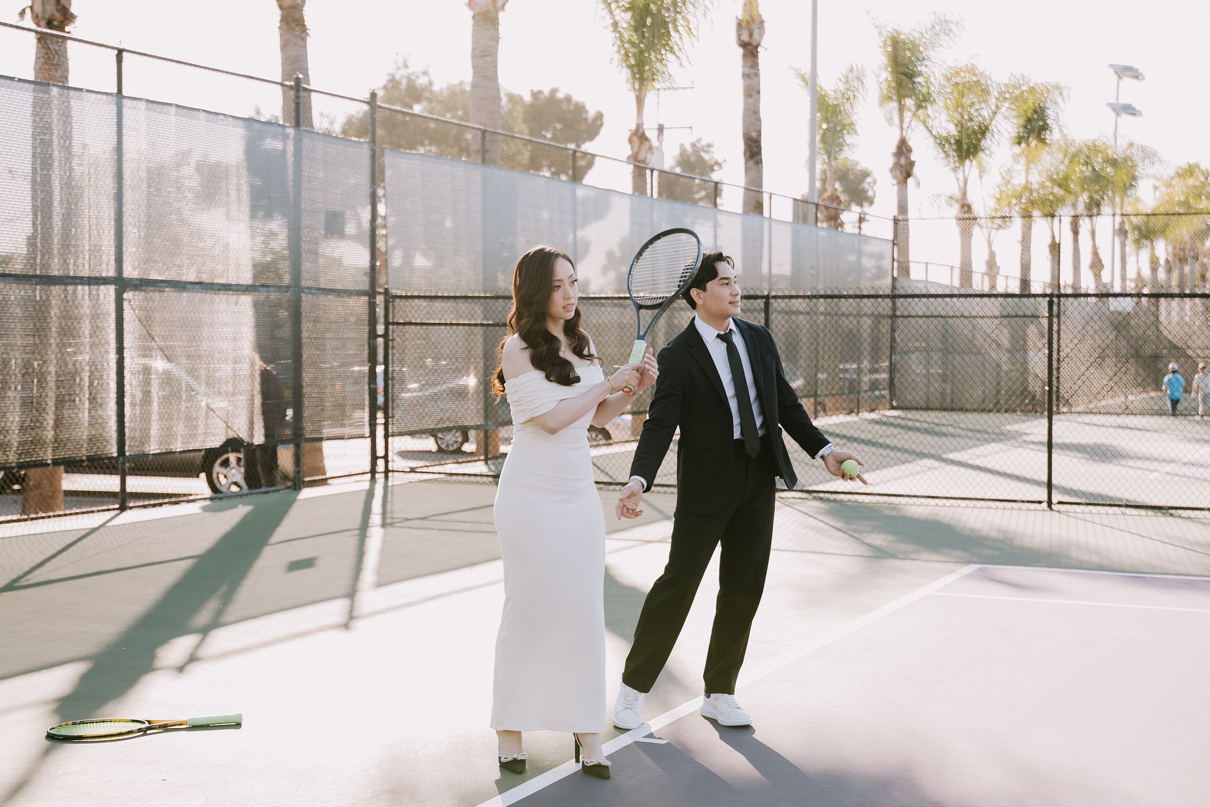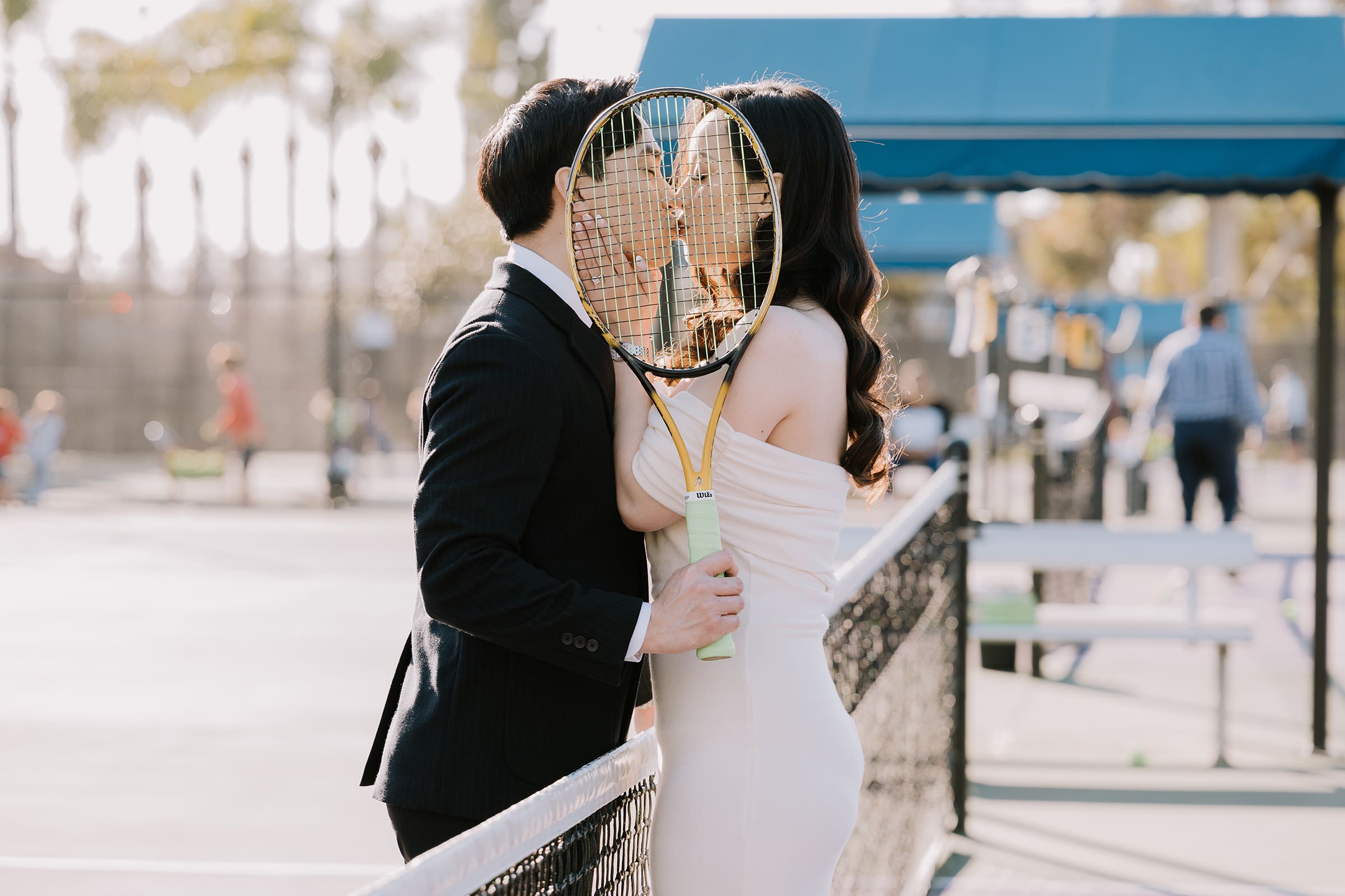 Viet and Jackie’s Long Beach Tennis Court Home Style Engagement beautifully captures the heart of their love story in an elegant, intimate way.