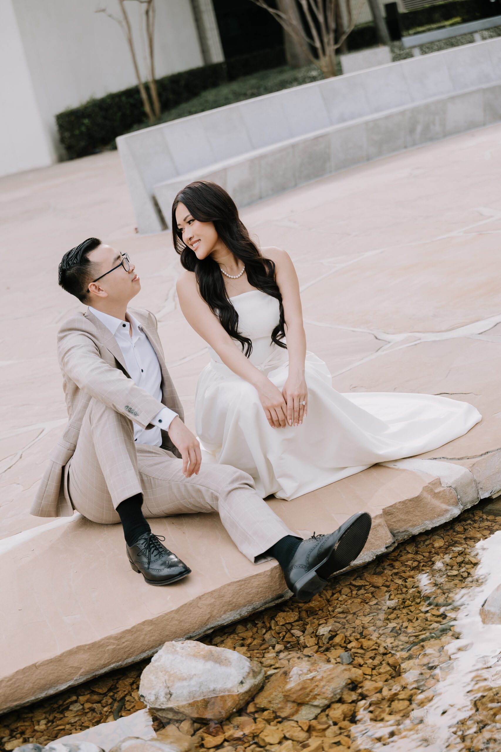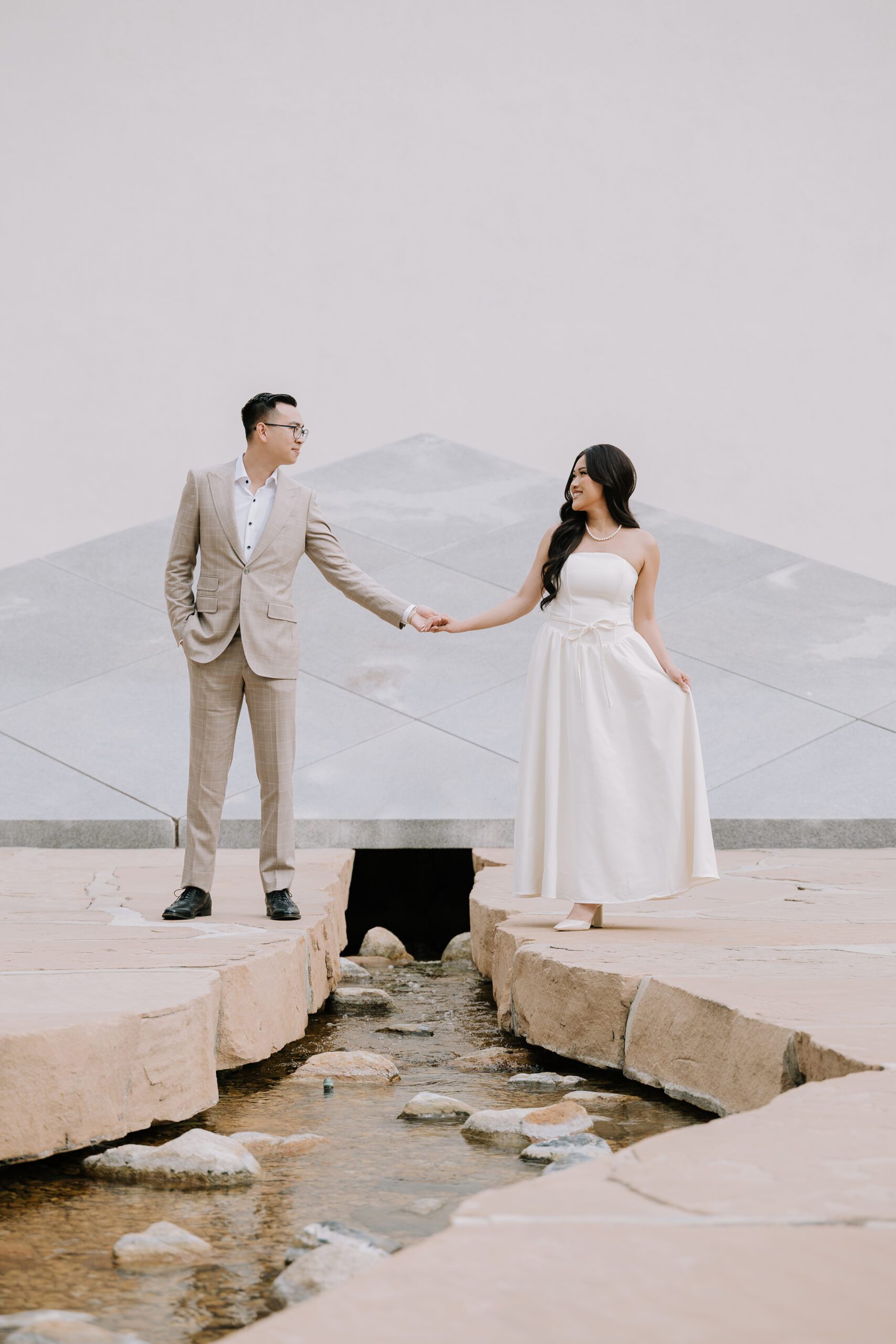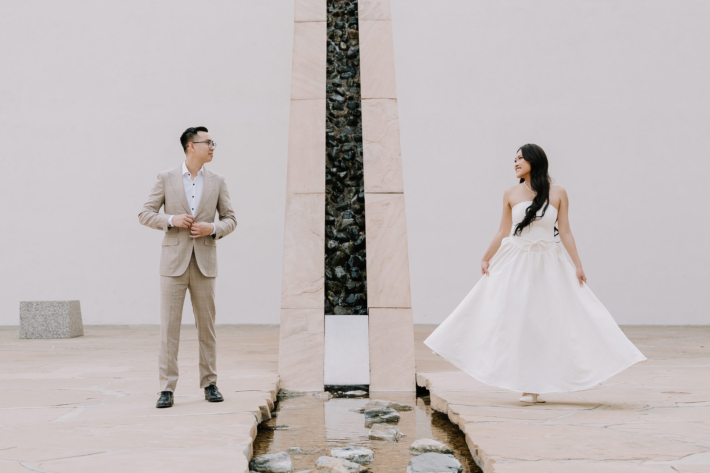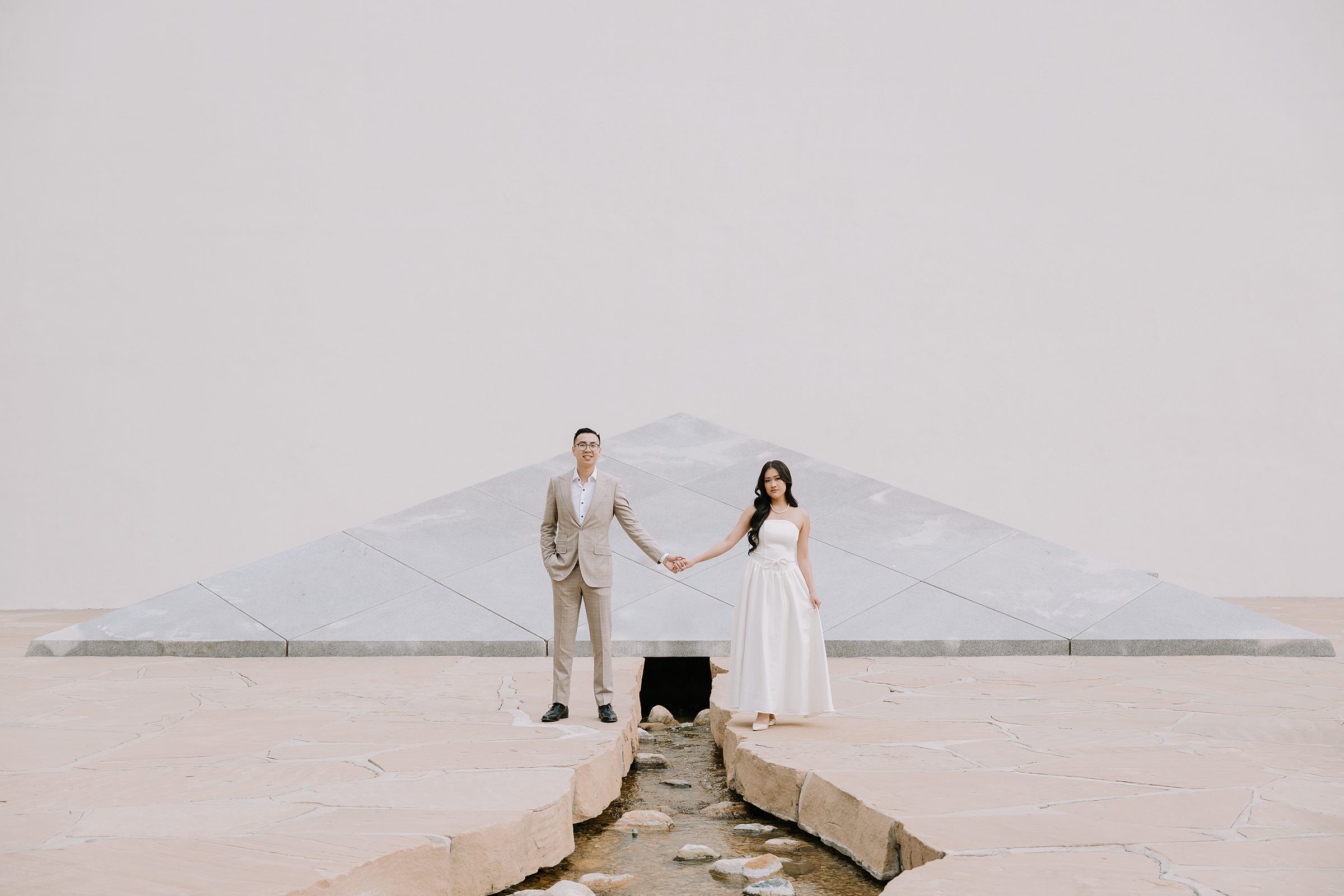 The sculptural lines and minimalist design of Noguchi Garden perfectly matched their modern vision. We captured sleek, high-fashion frames with dramatic angles and clean shadows. The contemporary setting created striking editorial portraits that felt polished and intentional.