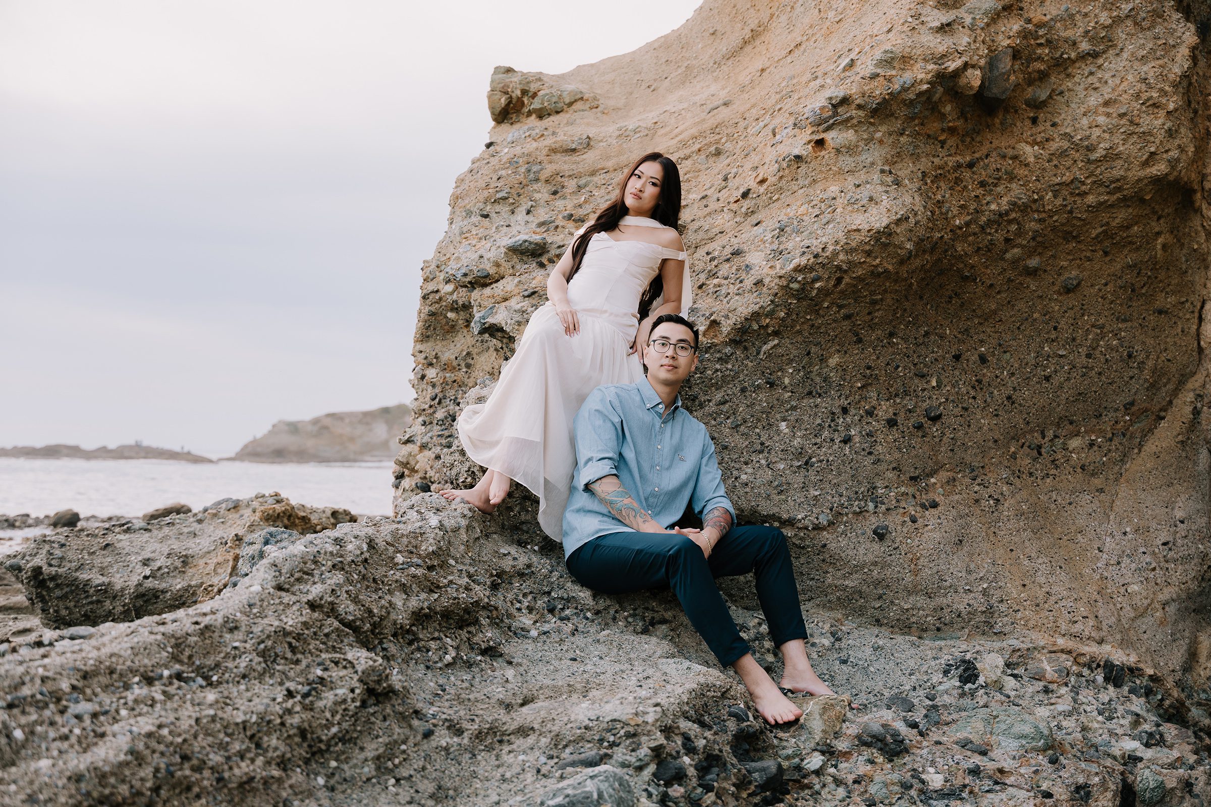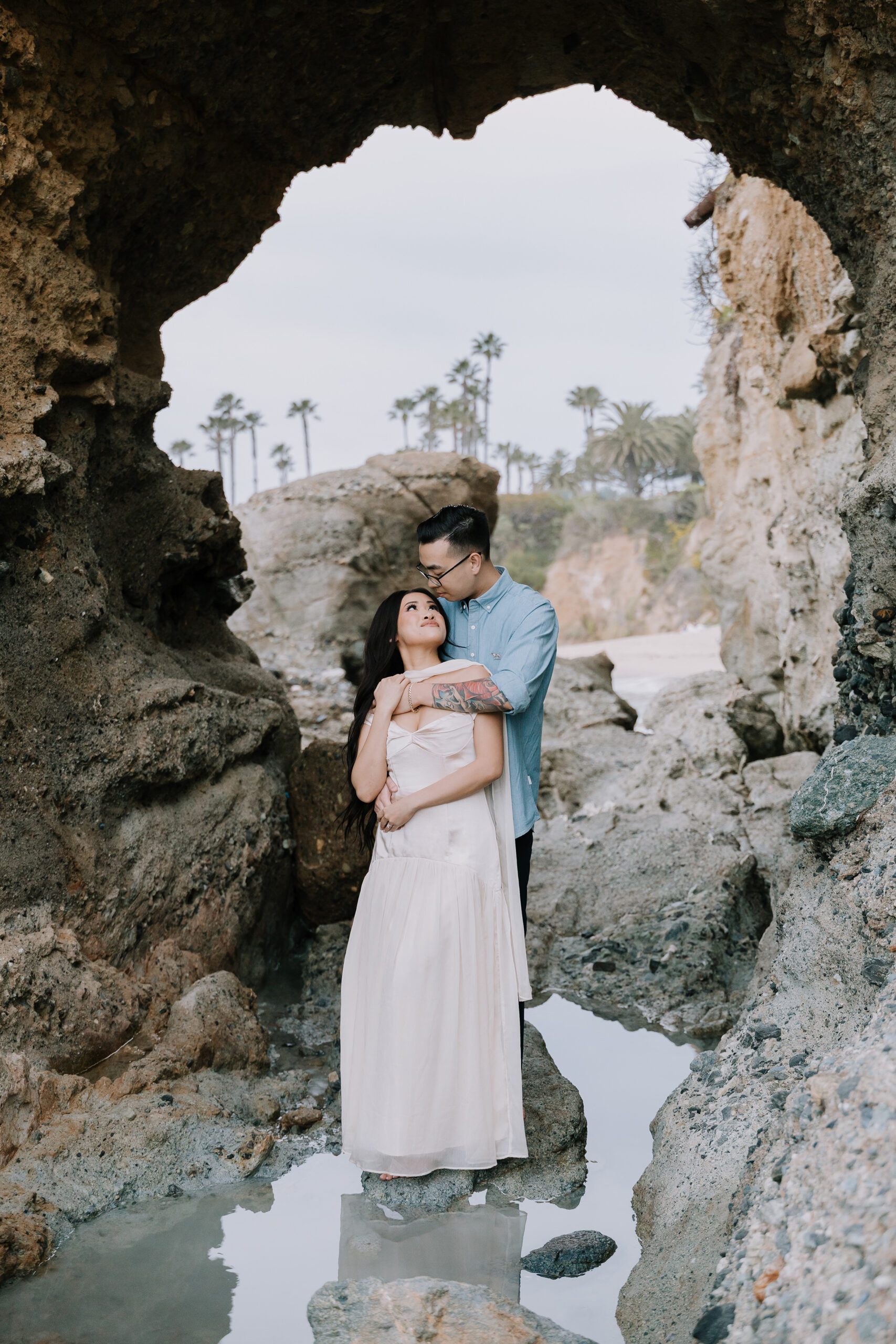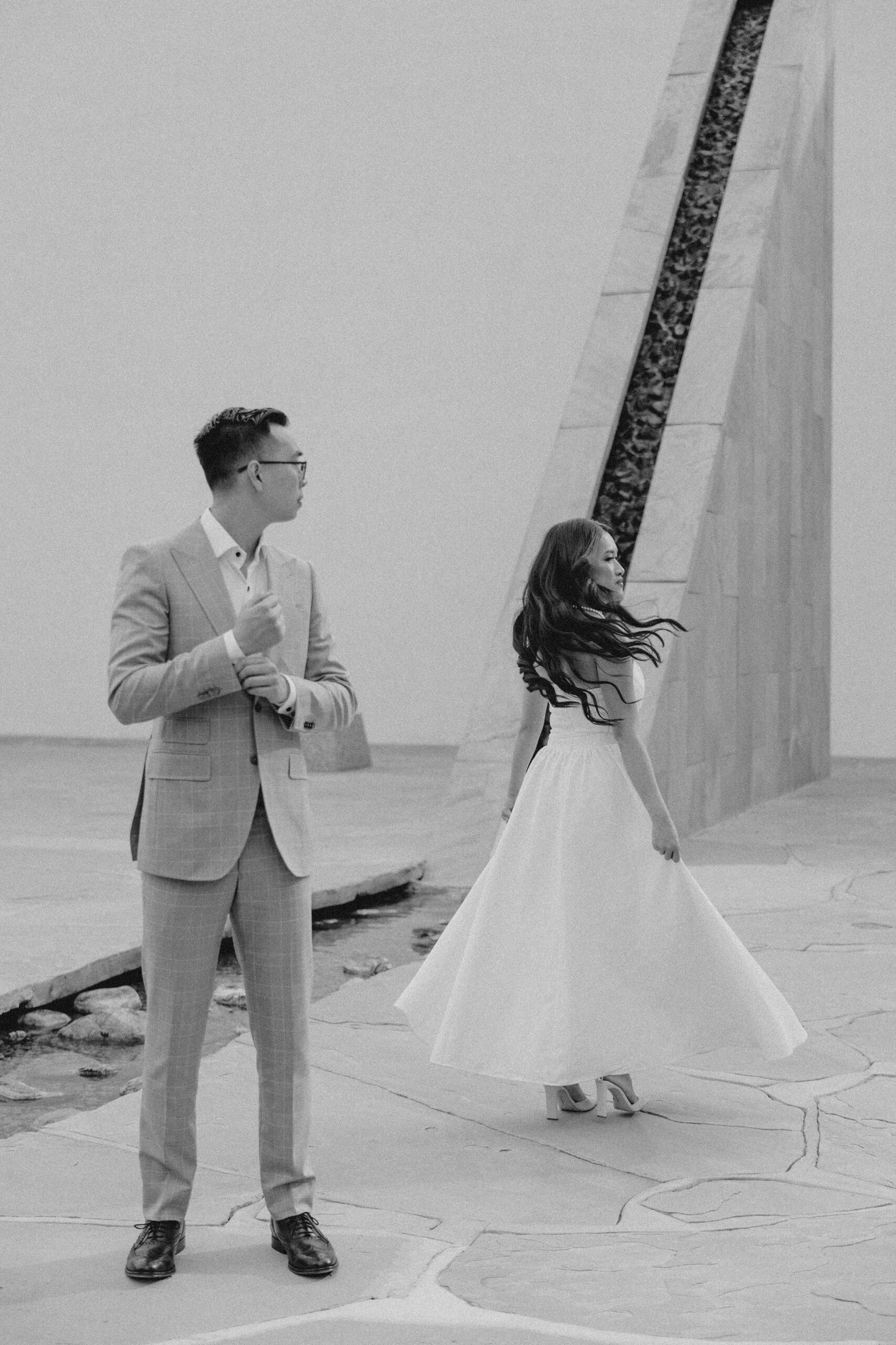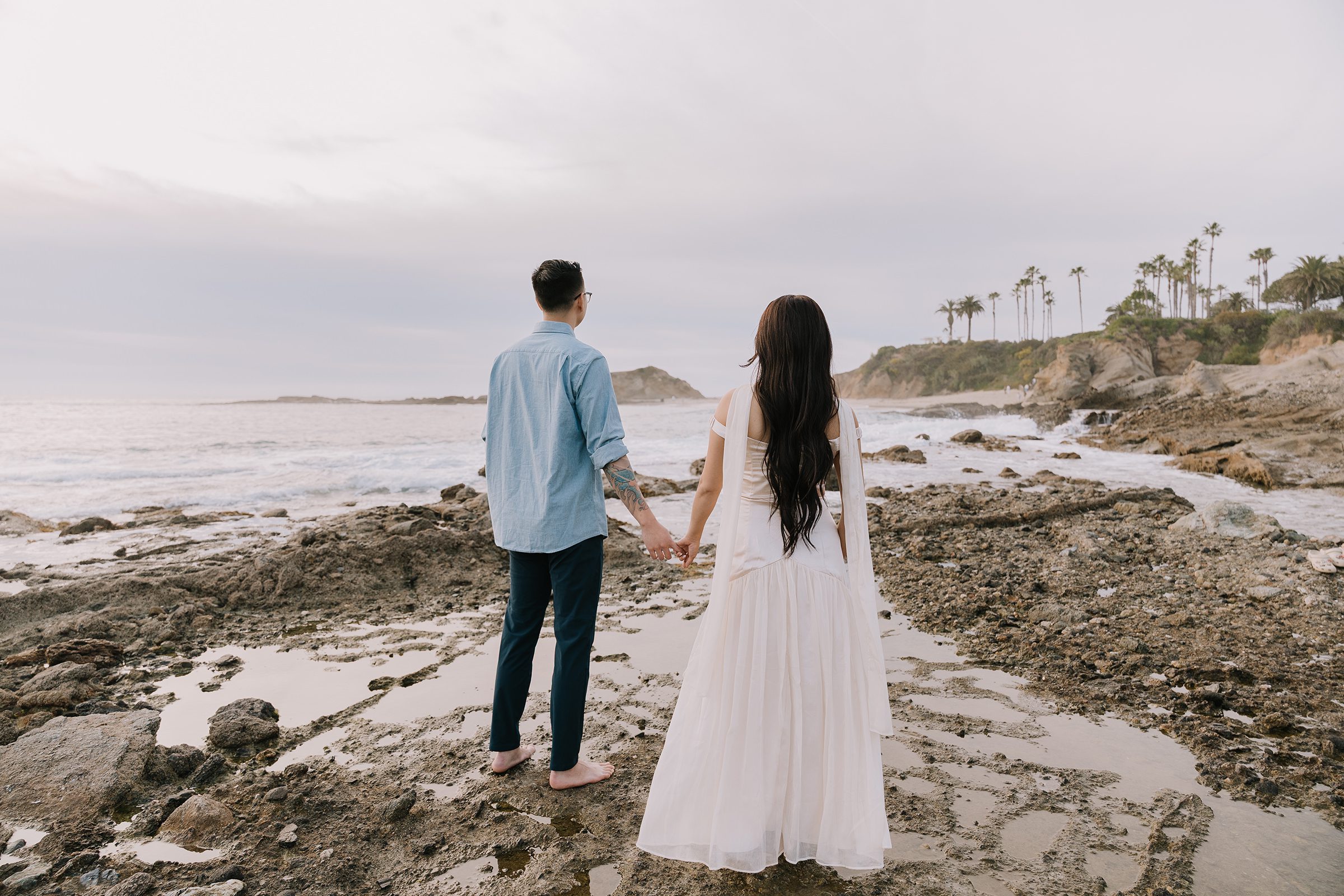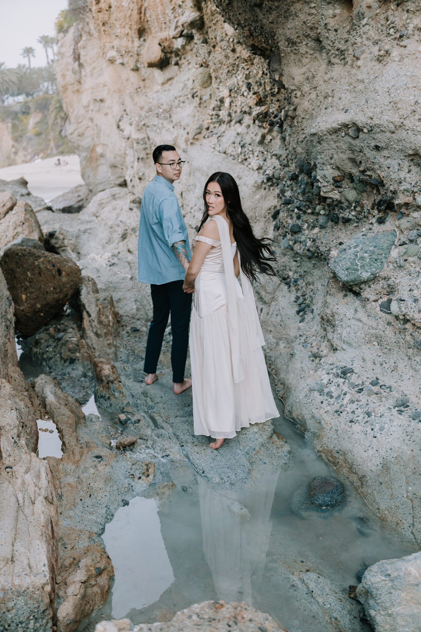 Brandon and Dang brought two beautiful visions to their Orange County engagement photos: classy, editorial, and modern at Noguchi Garden in Costa Mesa, followed by fun and romantic moments at Laguna Beach.