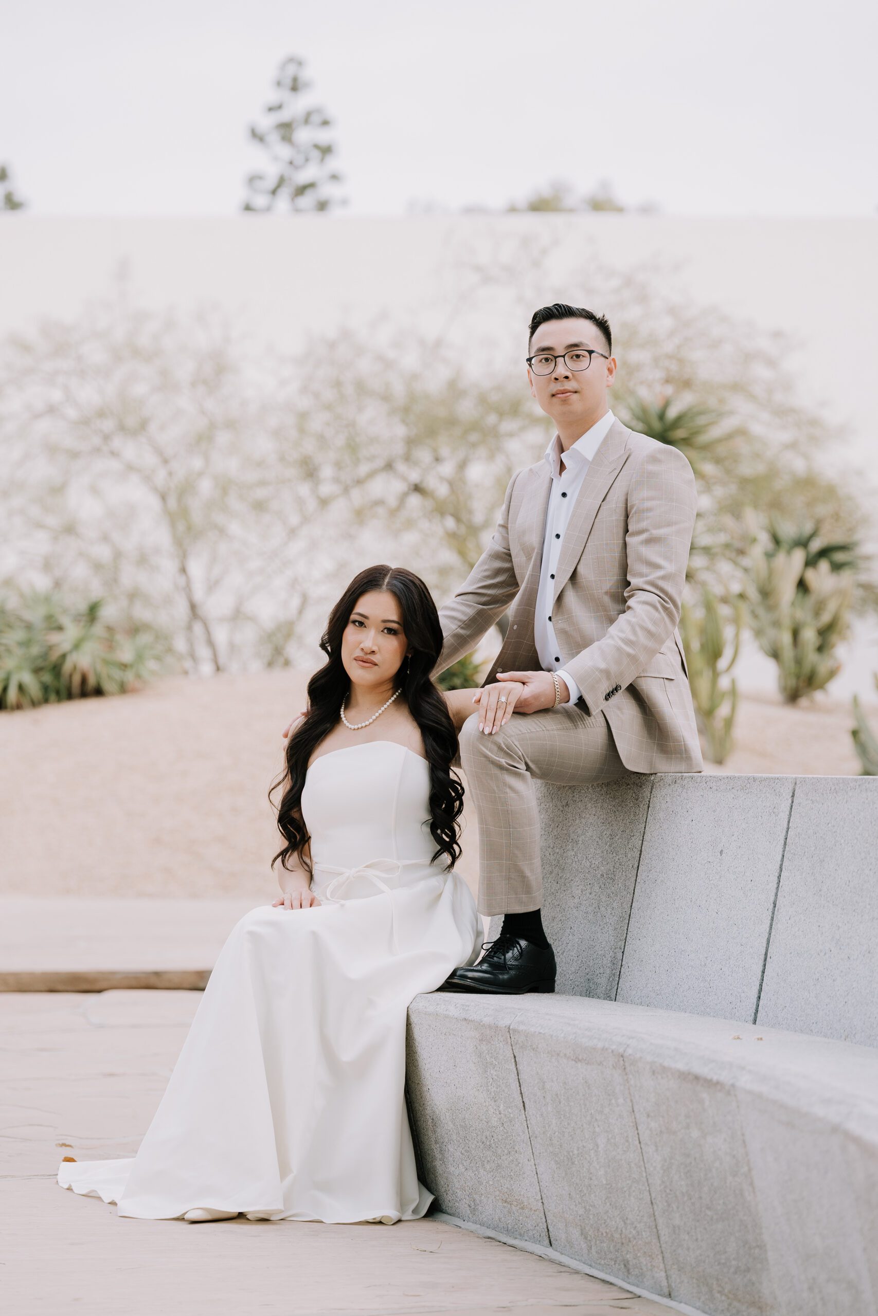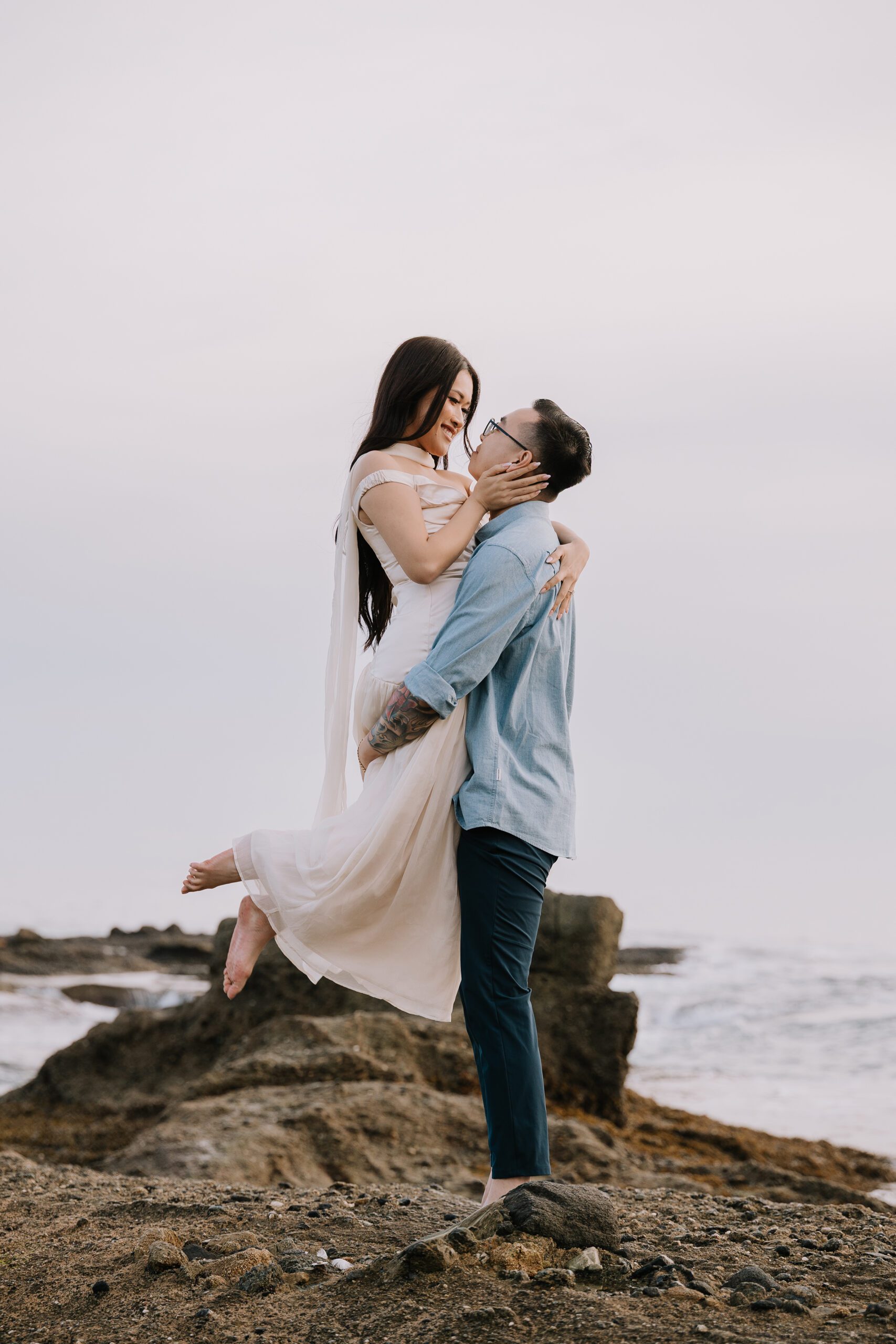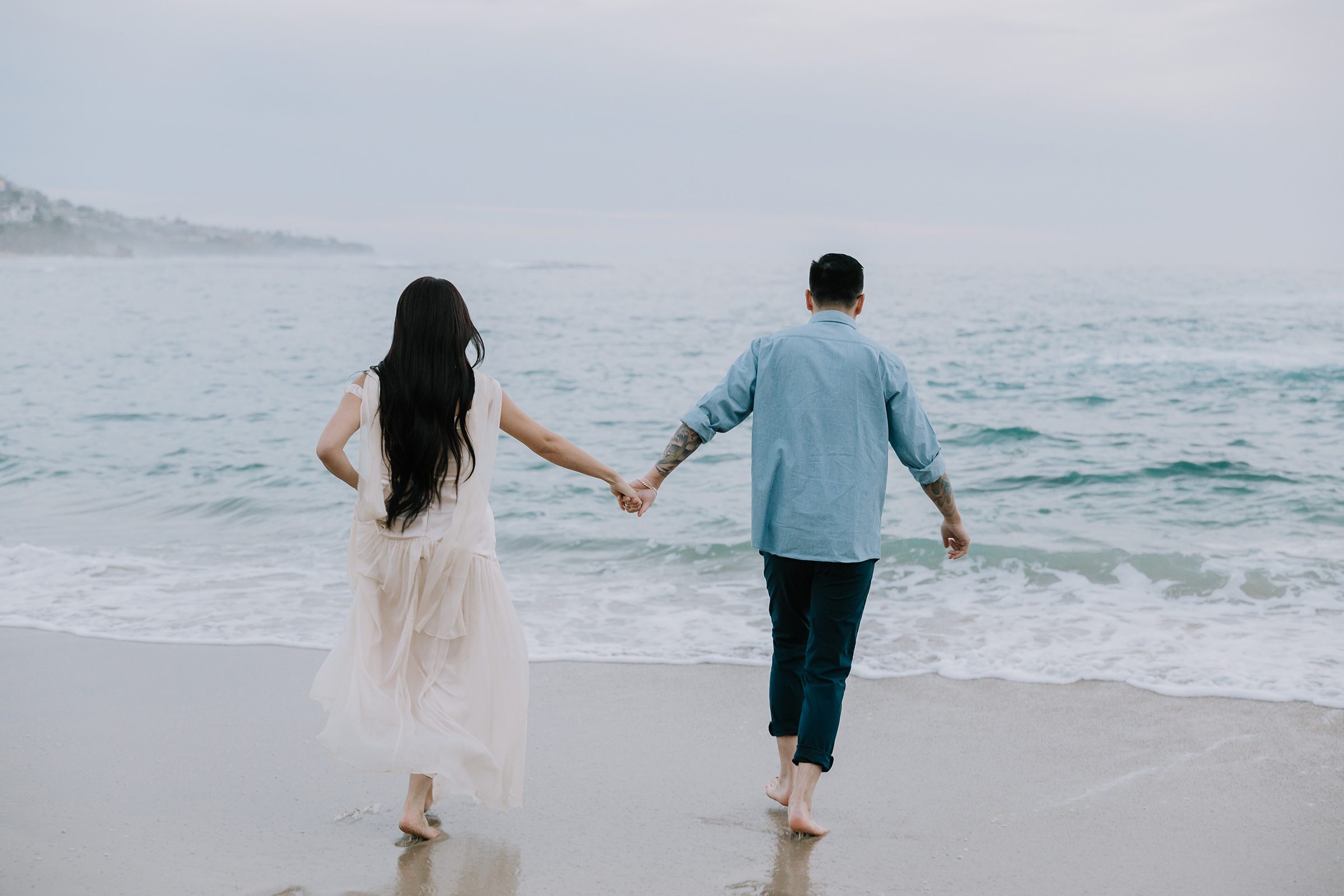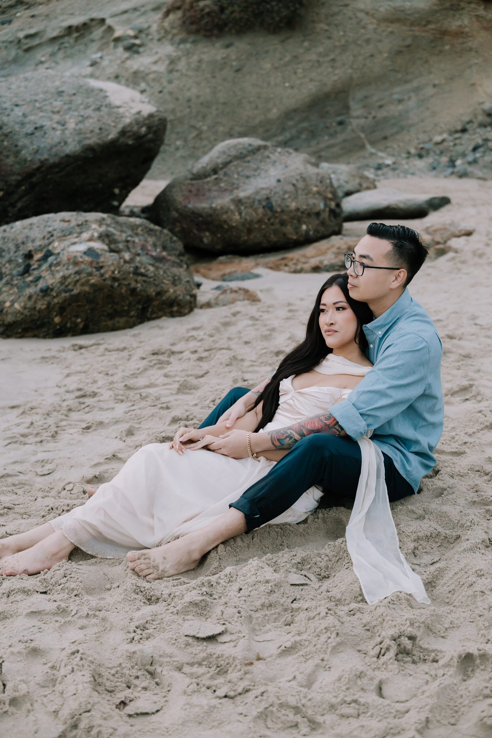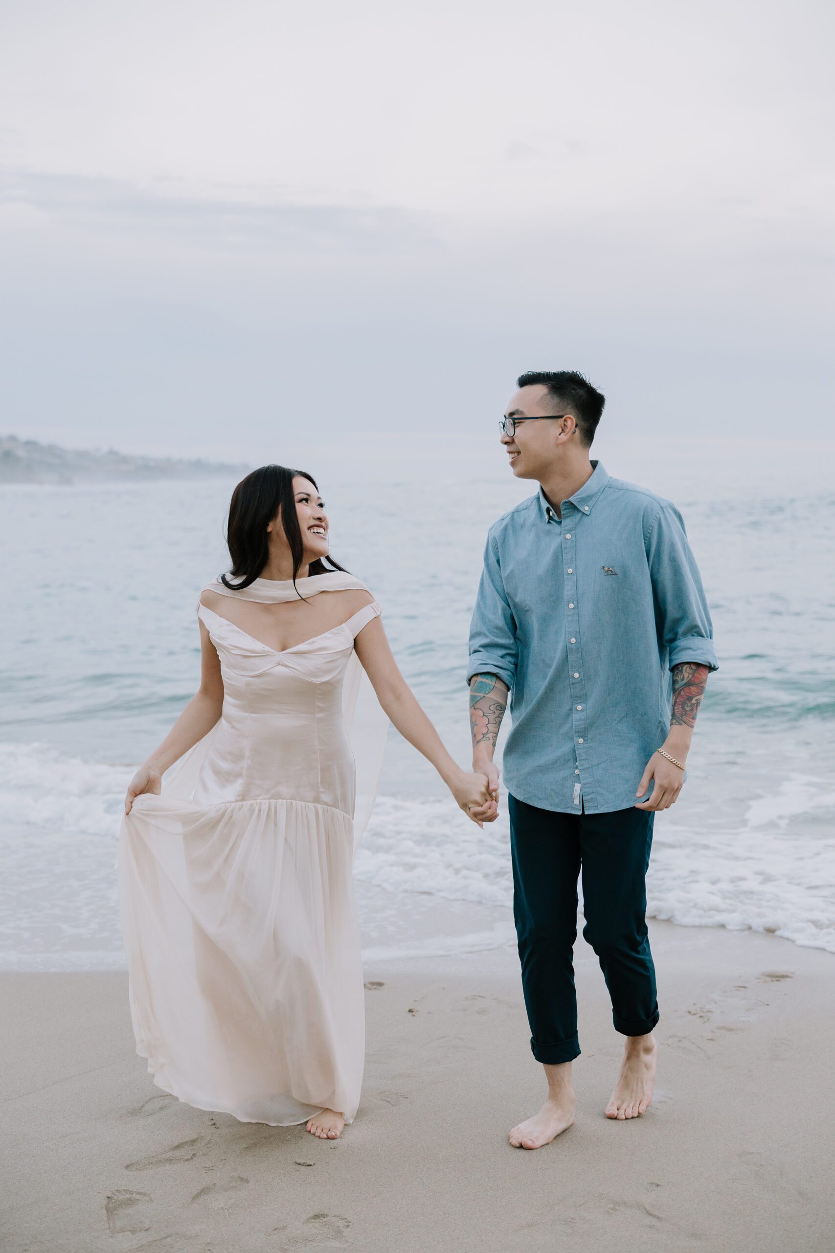 Brandon and Dang brought two beautiful visions to their Orange County engagement photos: classy, editorial, and modern at Noguchi Garden in Costa Mesa, followed by fun and romantic moments at Laguna Beach.