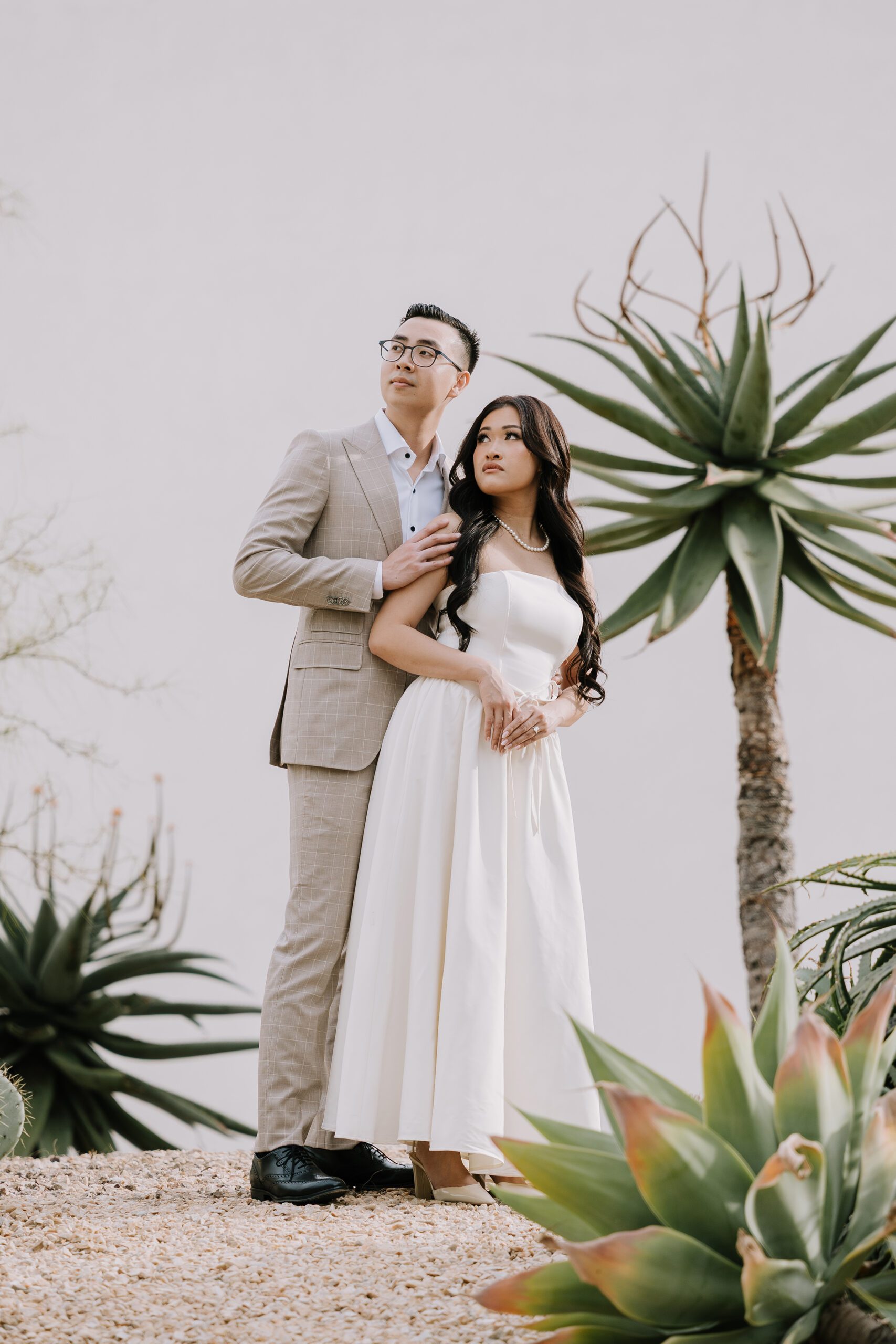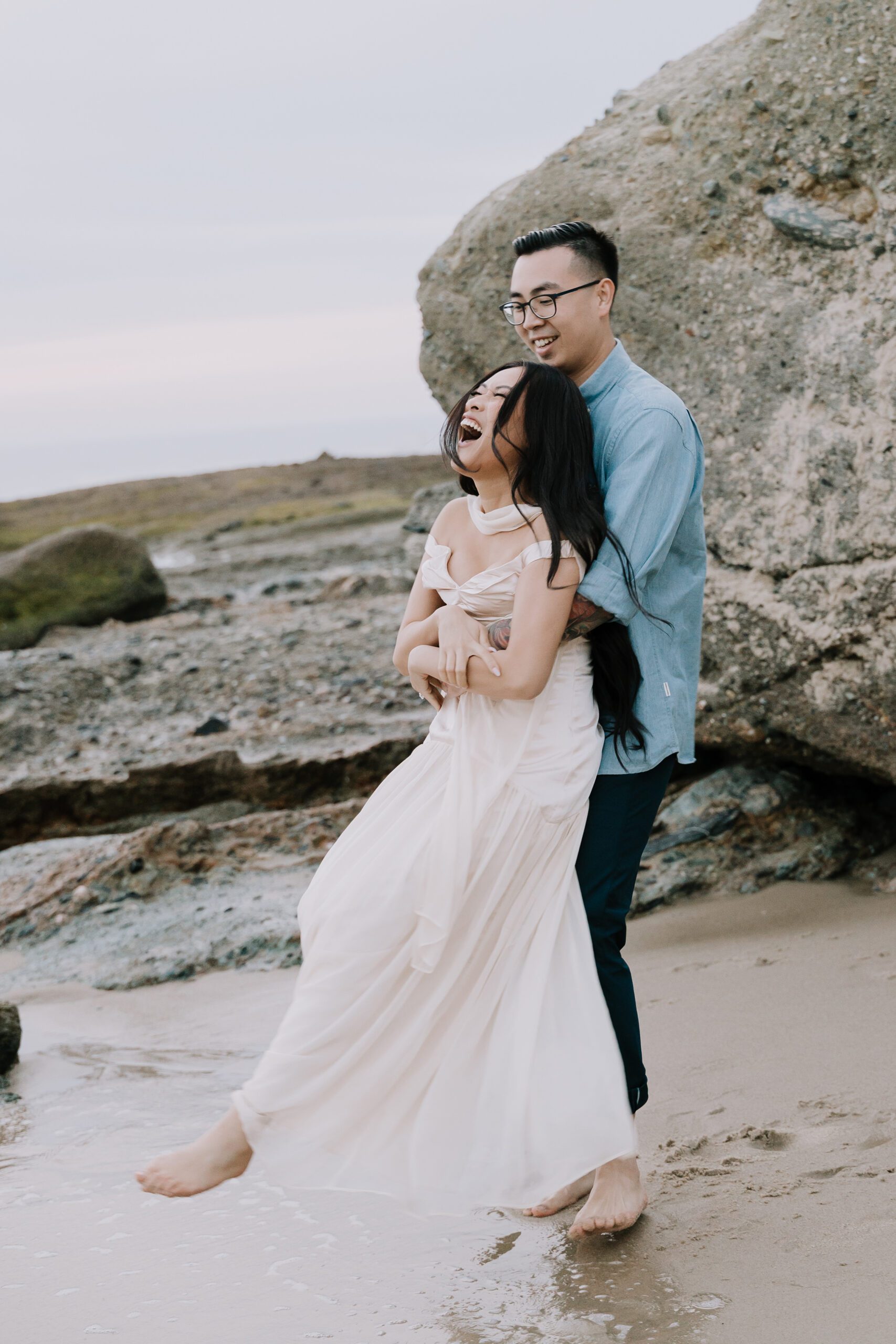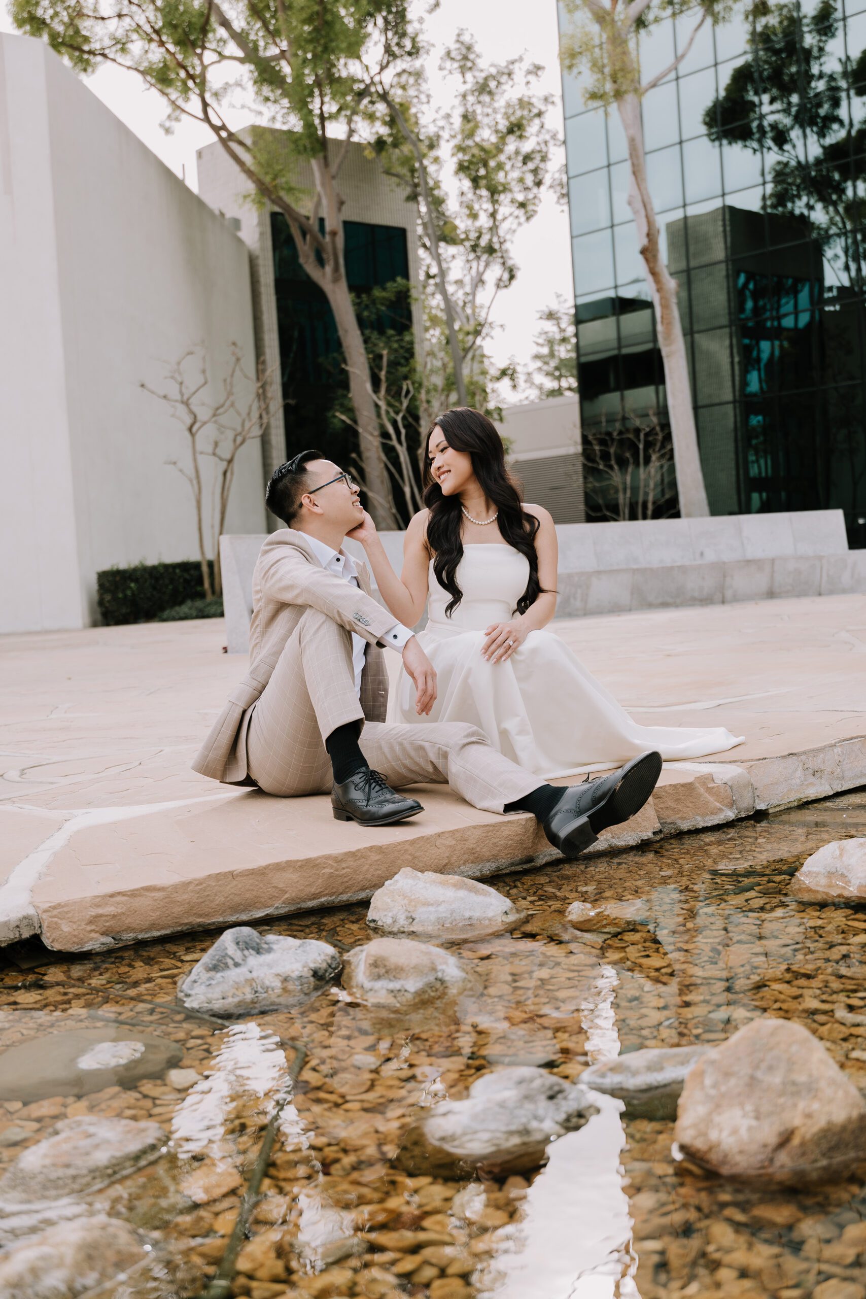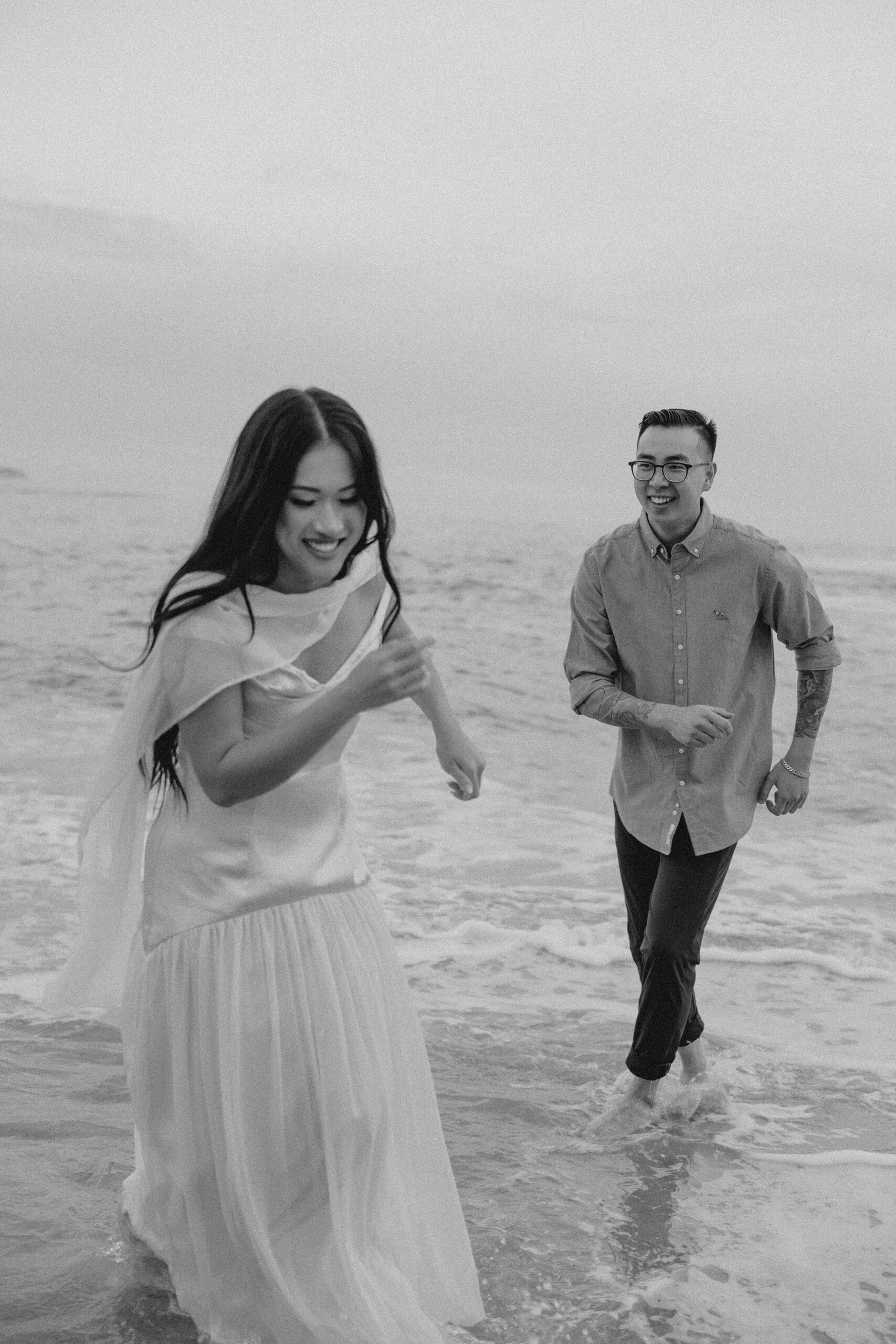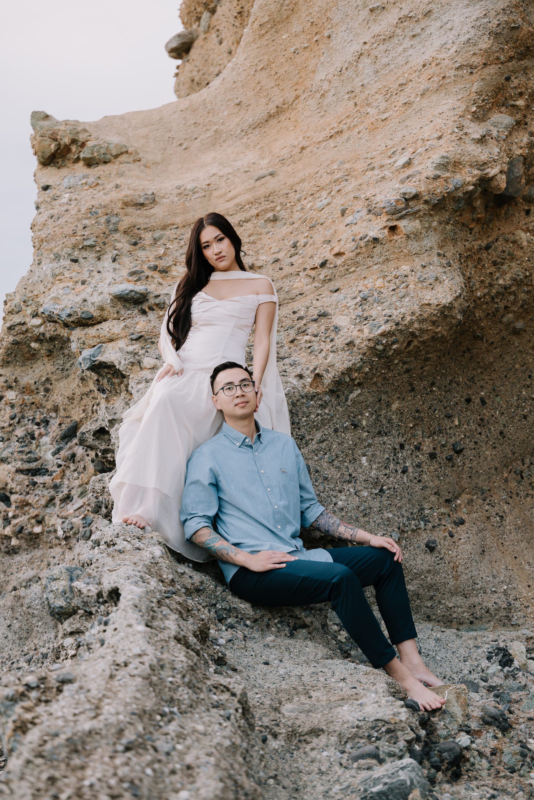 Brandon and Dang brought two beautiful visions to their Orange County engagement photos: classy, editorial, and modern at Noguchi Garden in Costa Mesa, followed by fun and romantic moments at Laguna Beach.