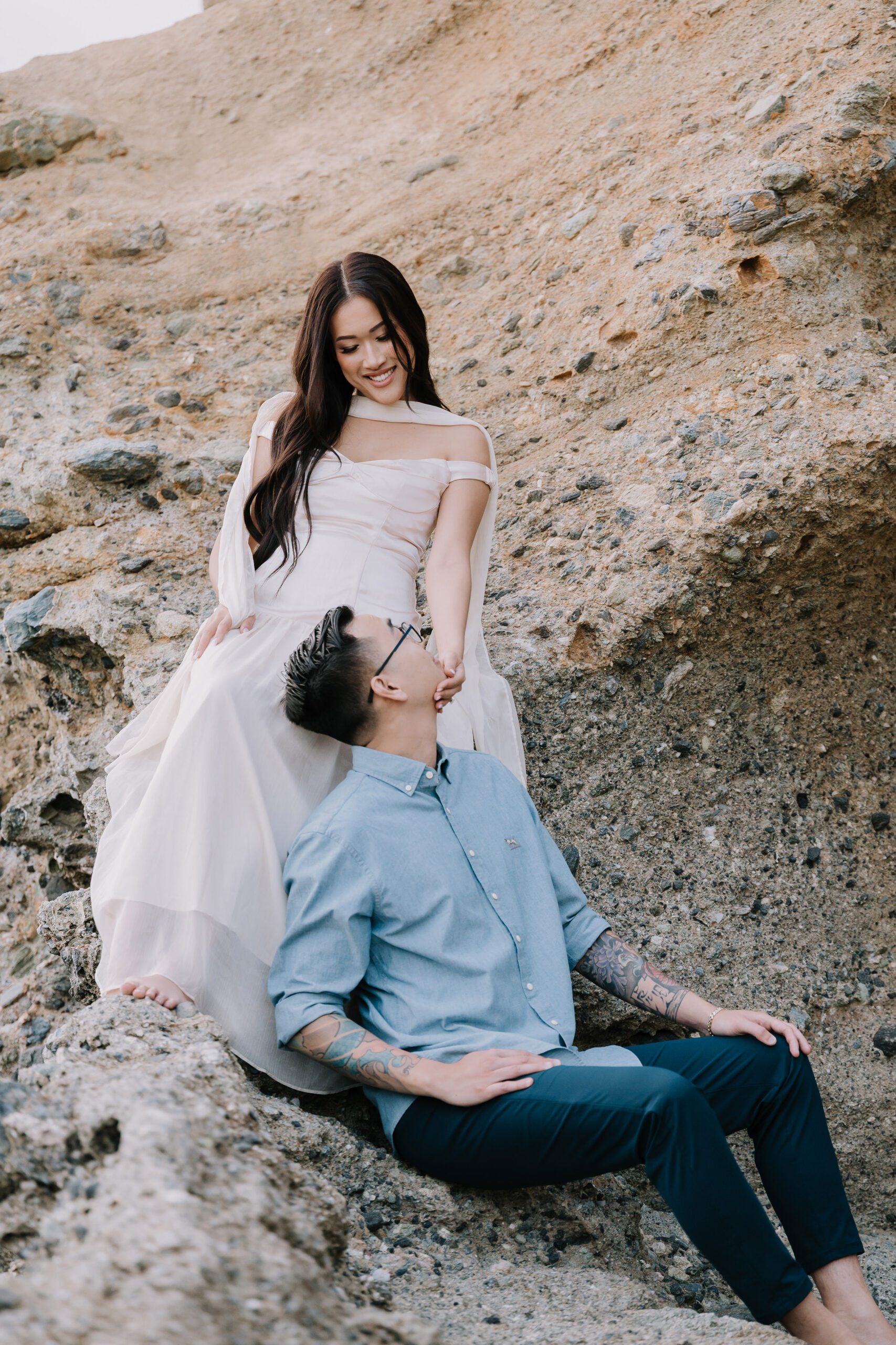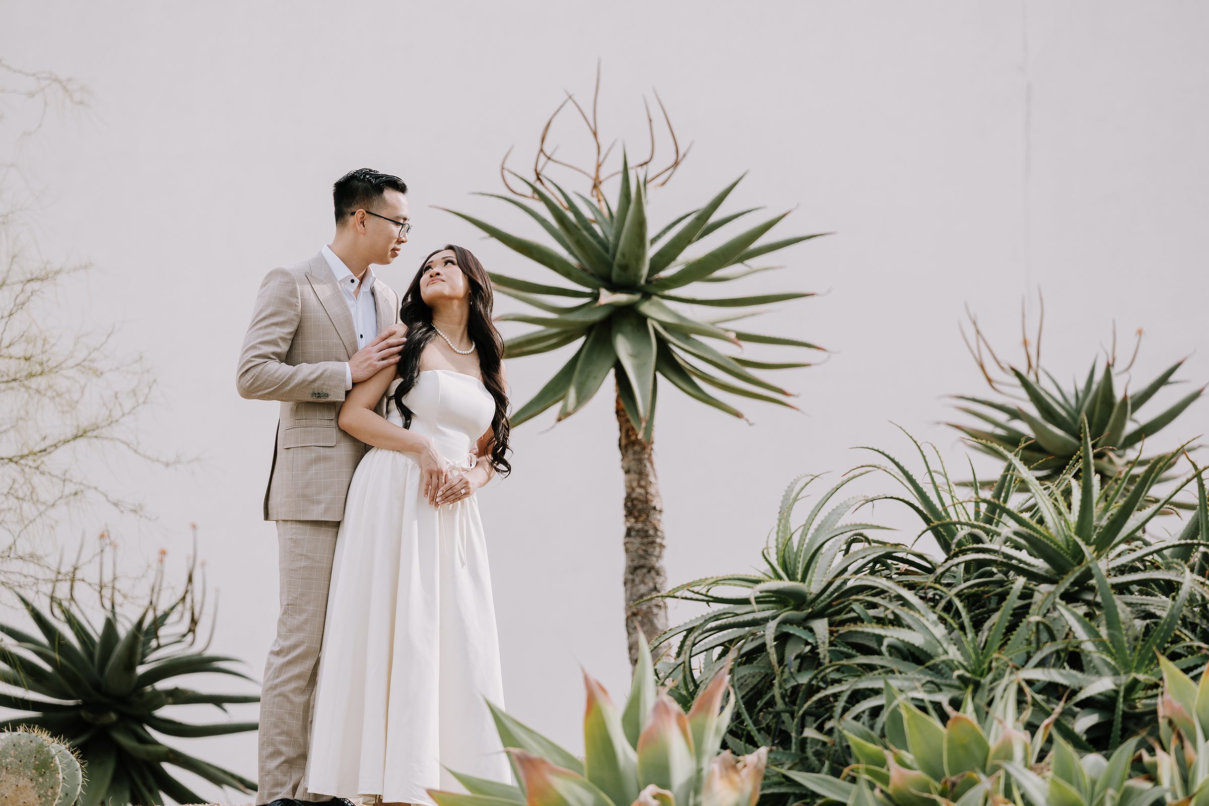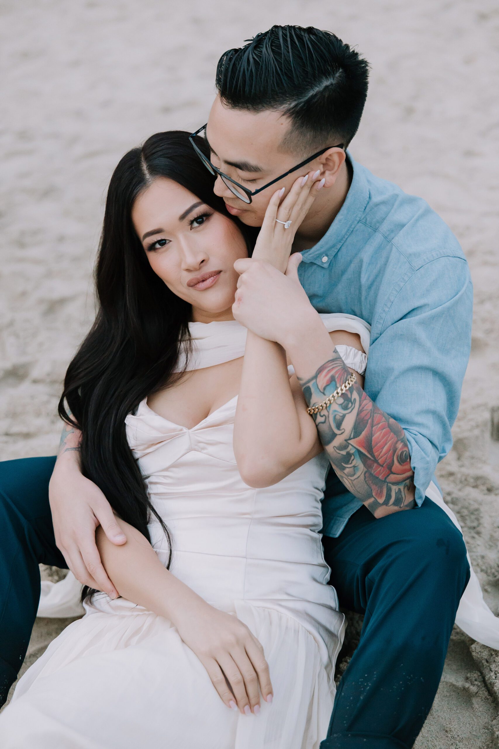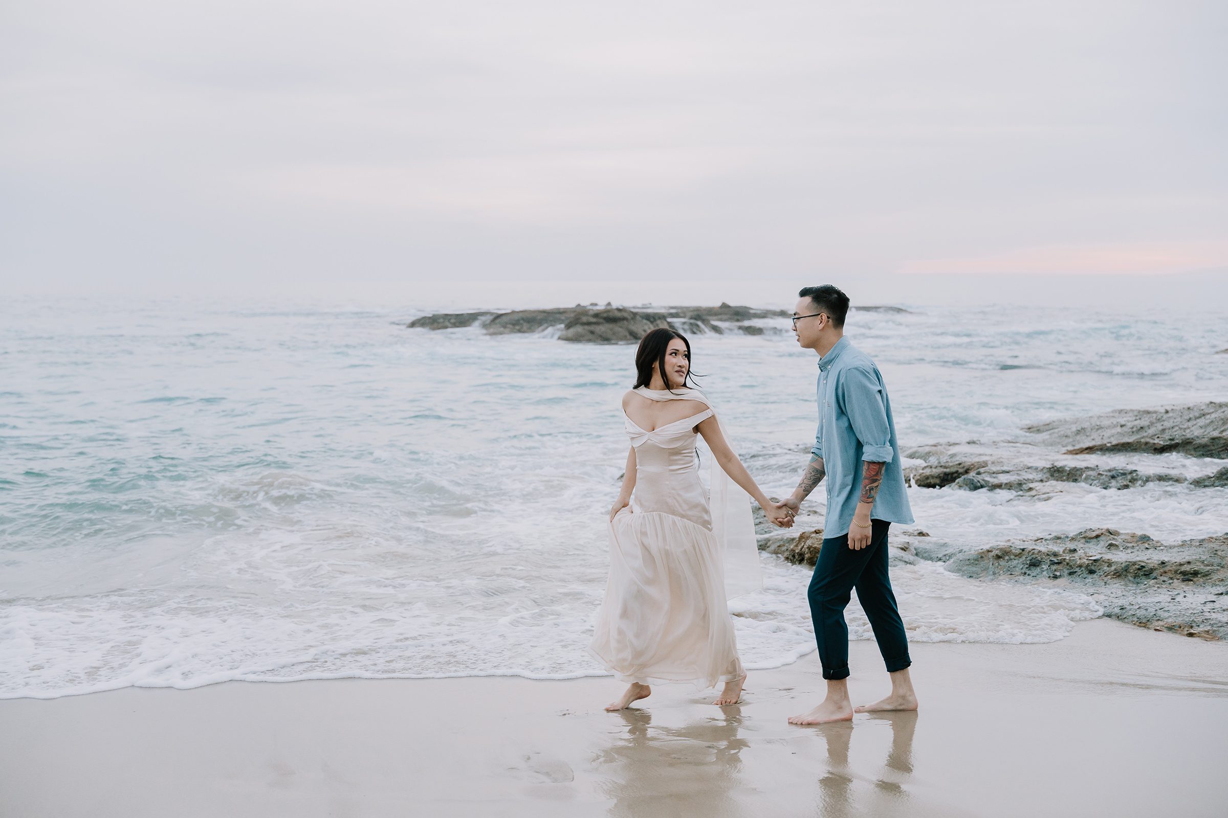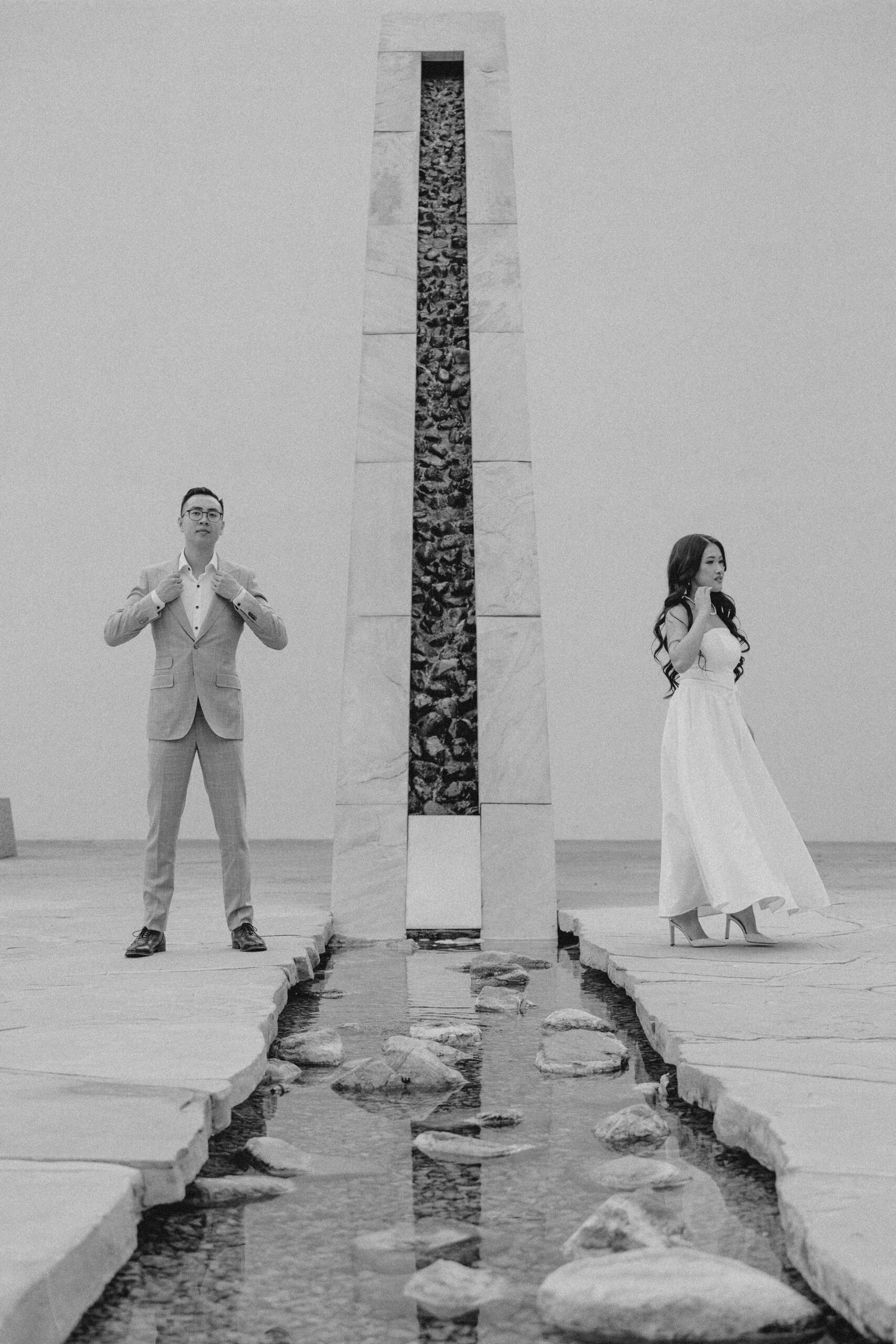 Brandon and Dang brought two beautiful visions to their Orange County engagement photos: classy, editorial, and modern at Noguchi Garden in Costa Mesa, followed by fun and romantic moments at Laguna Beach.