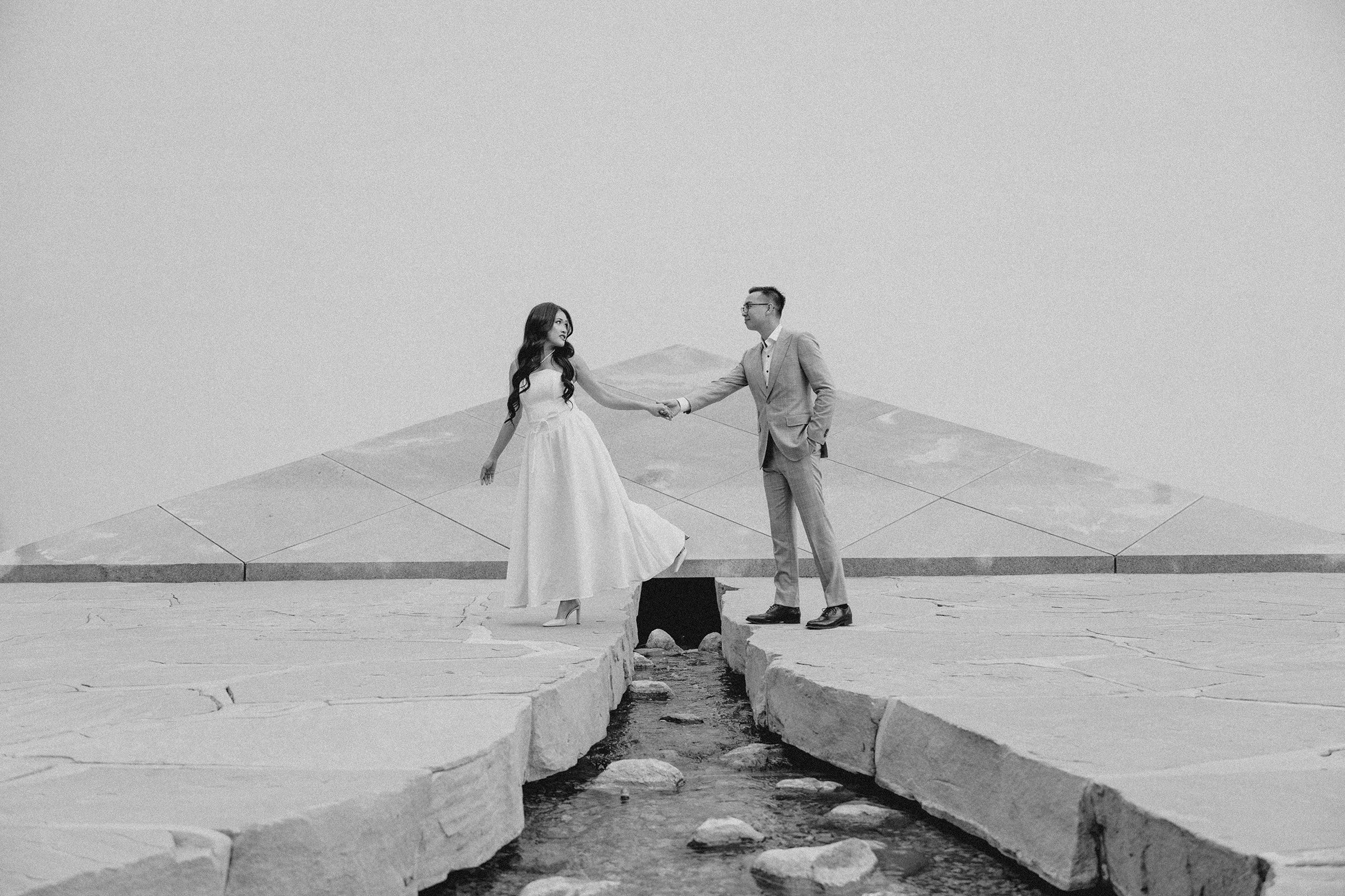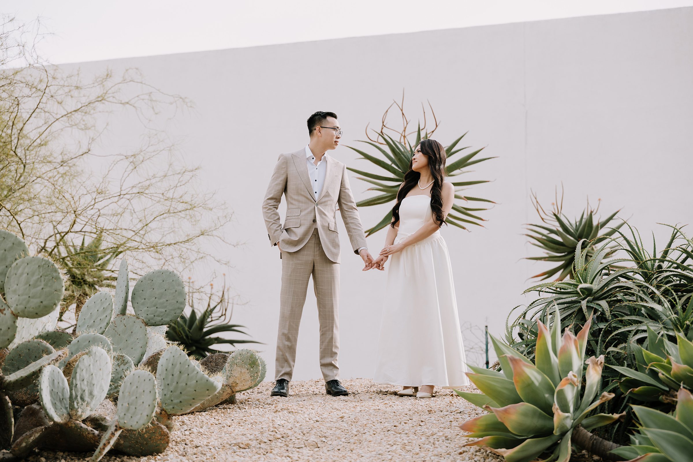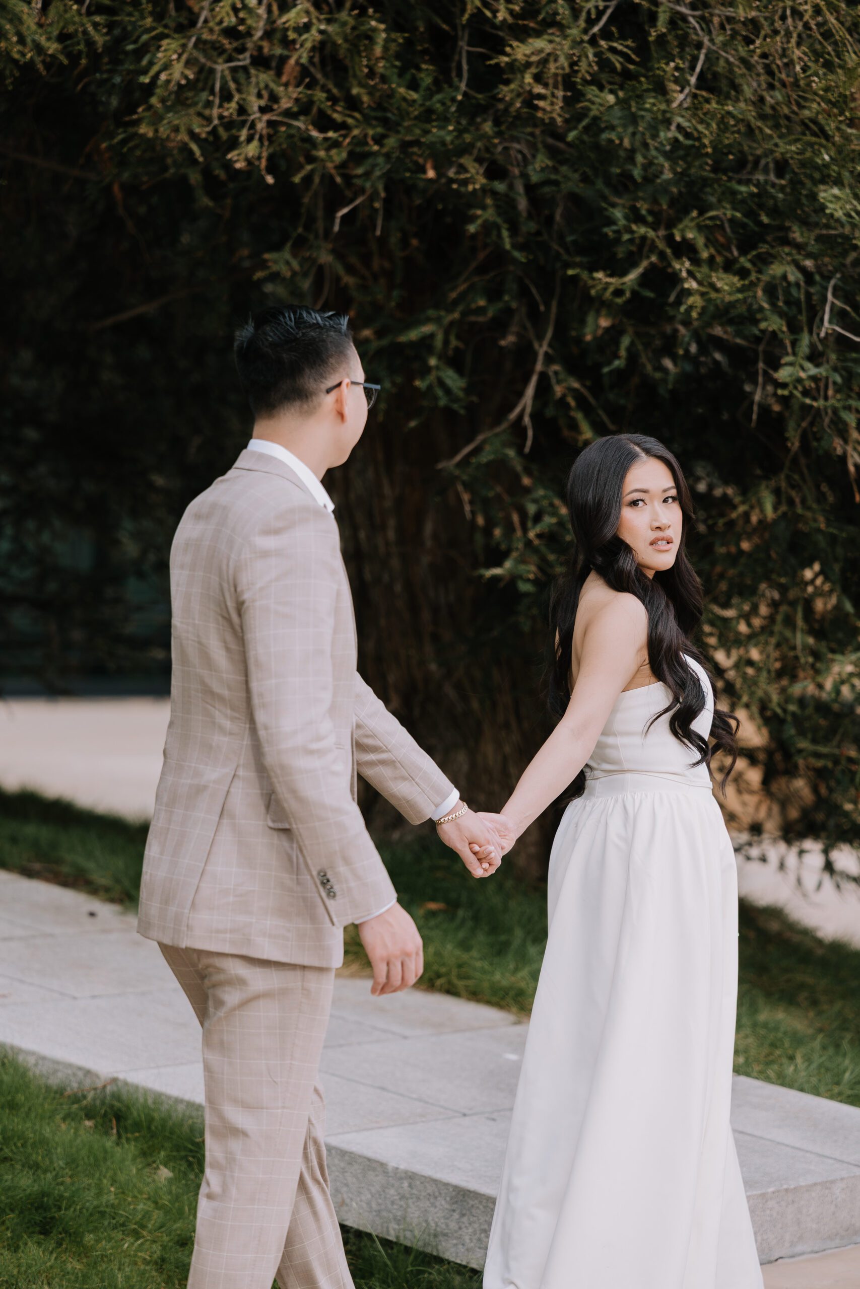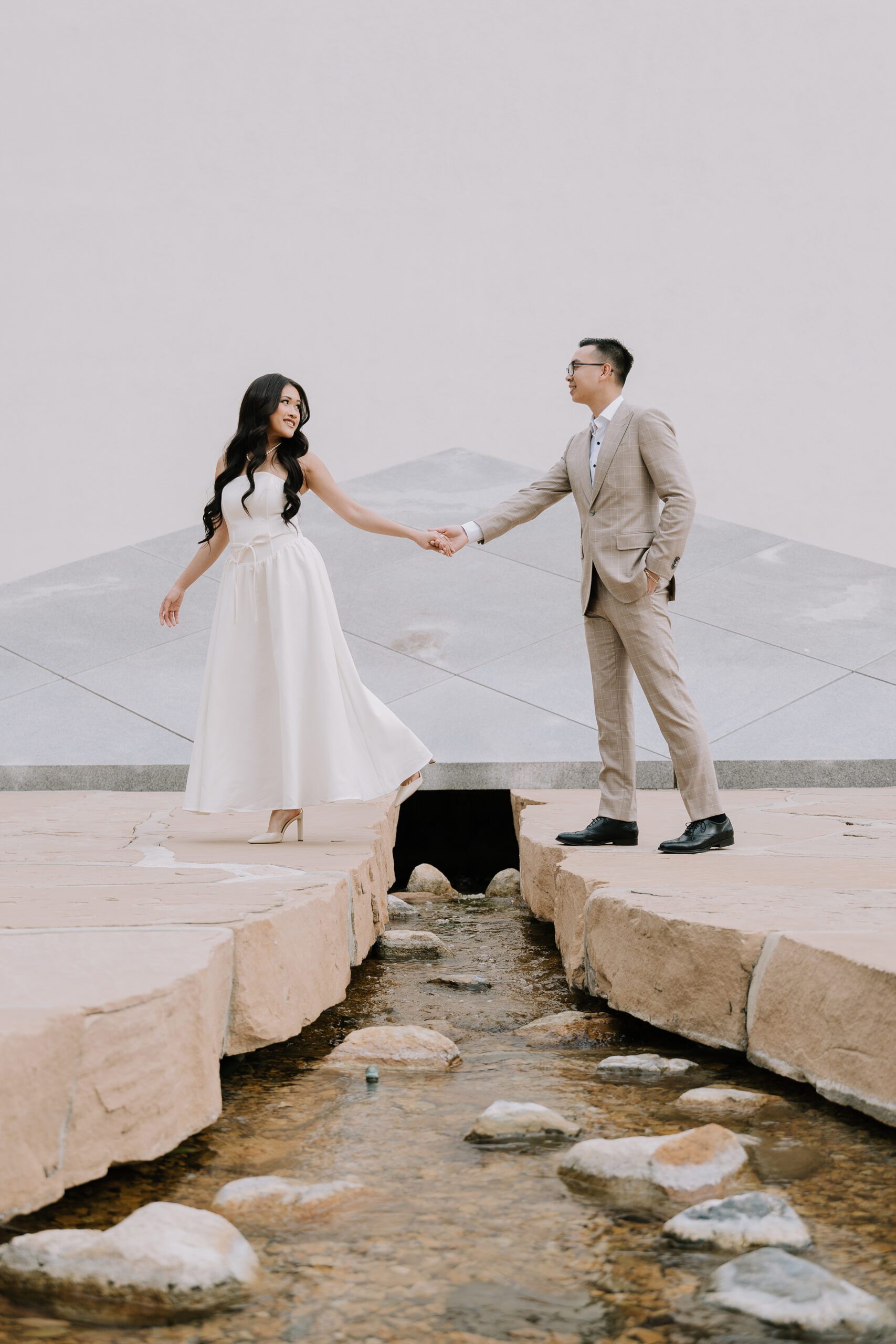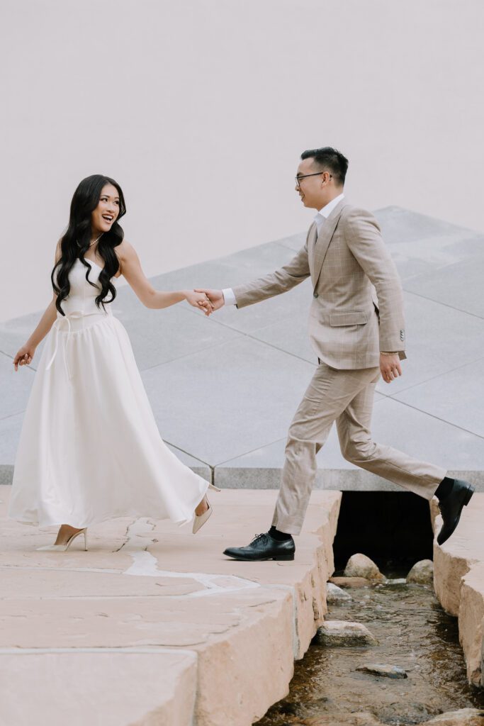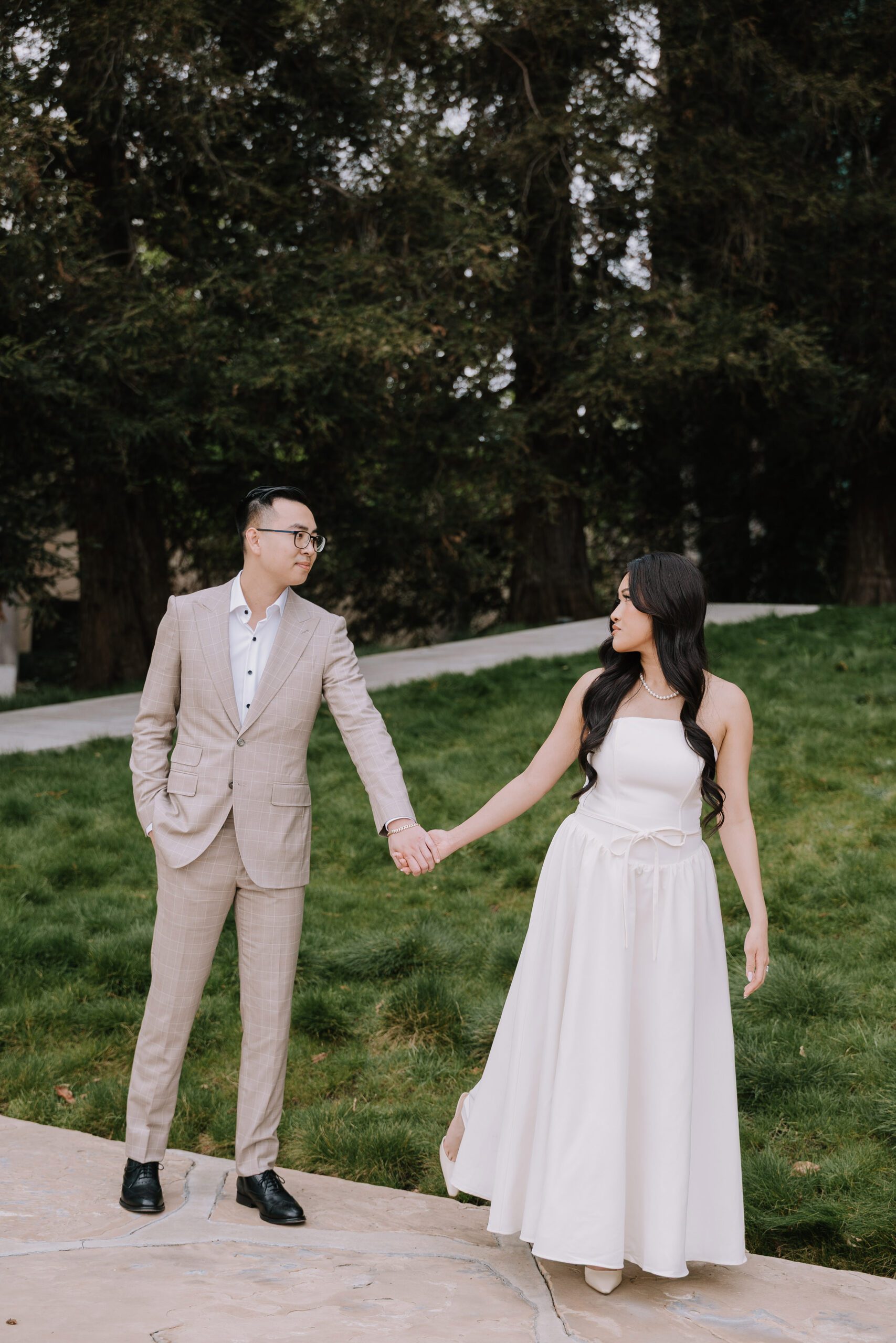 Brandon and Dang brought two beautiful visions to their Orange County engagement photos: classy, editorial, and modern at Noguchi Garden in Costa Mesa, followed by fun and romantic moments at Laguna Beach.