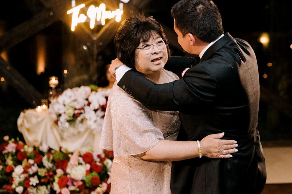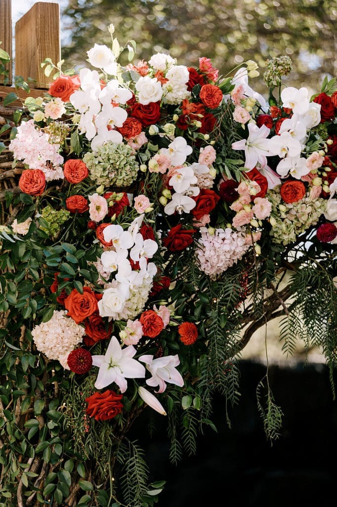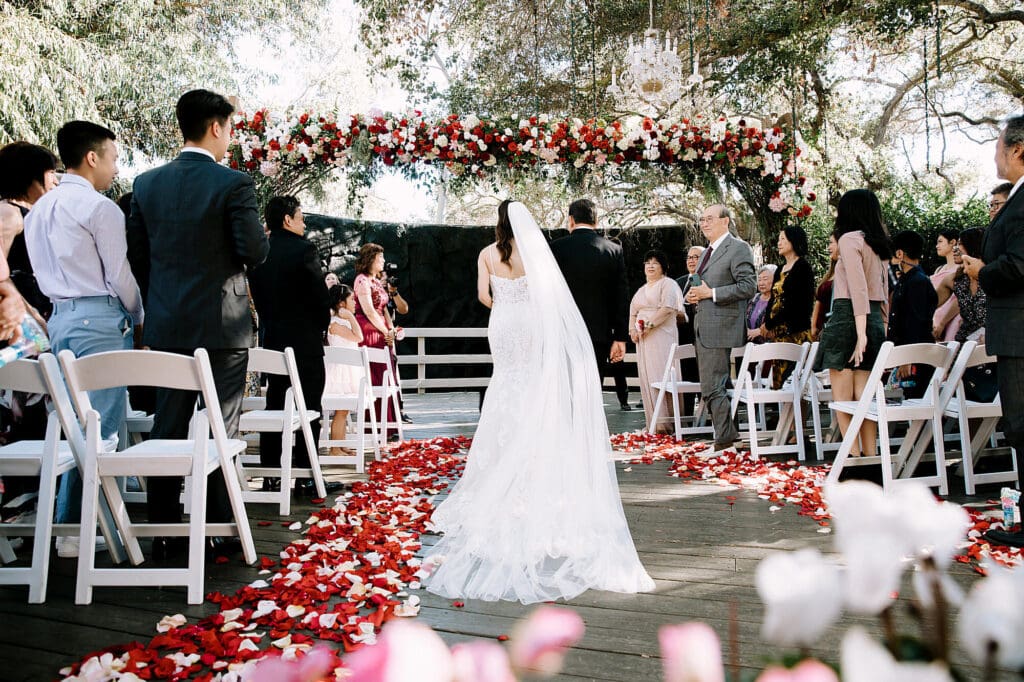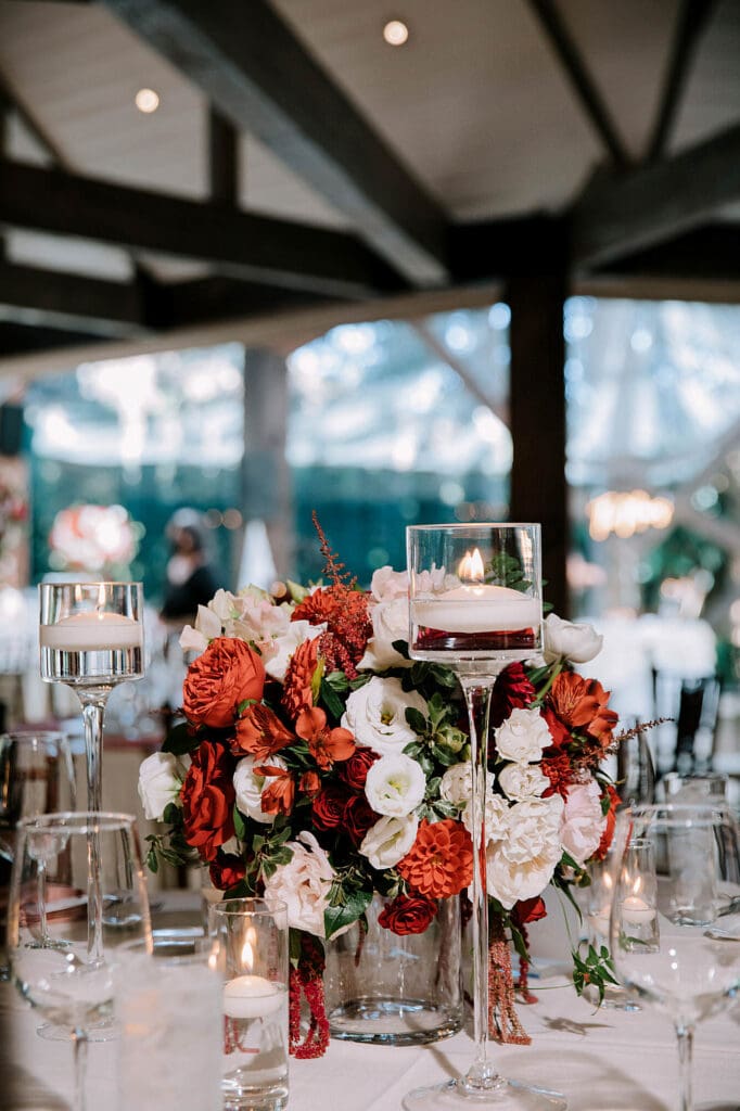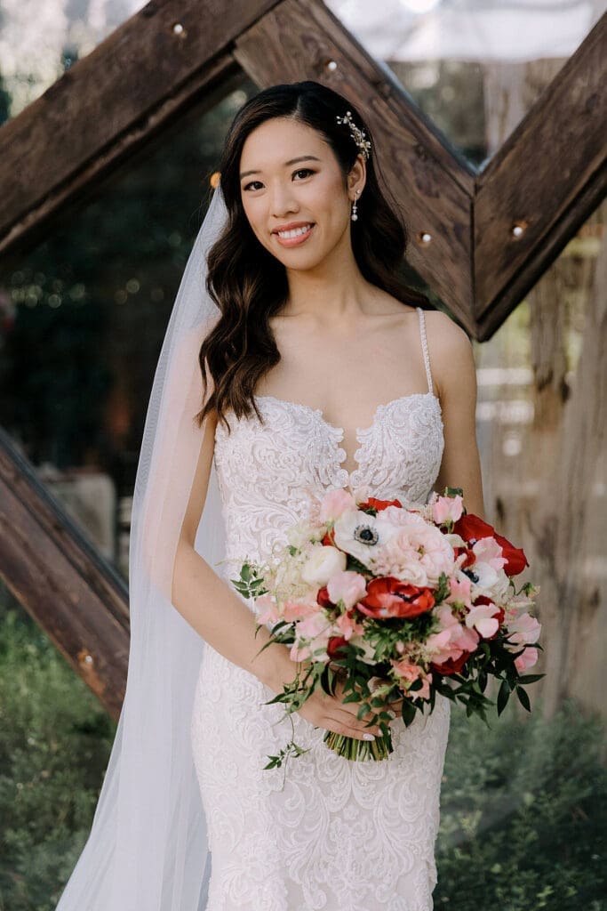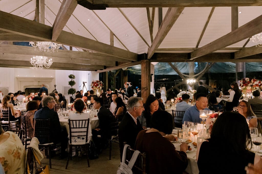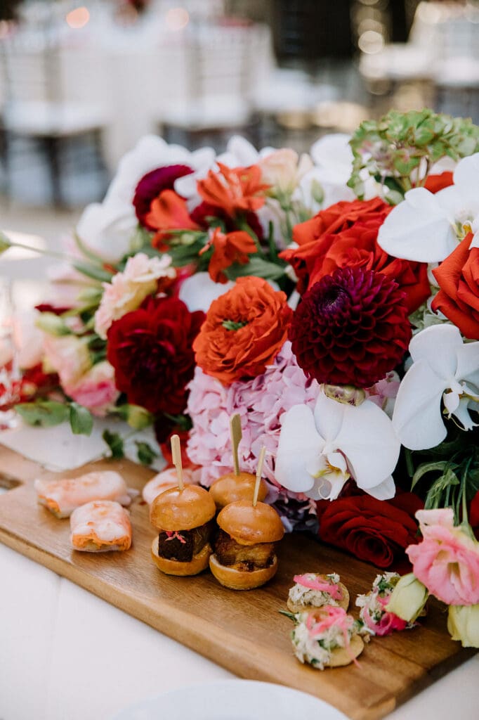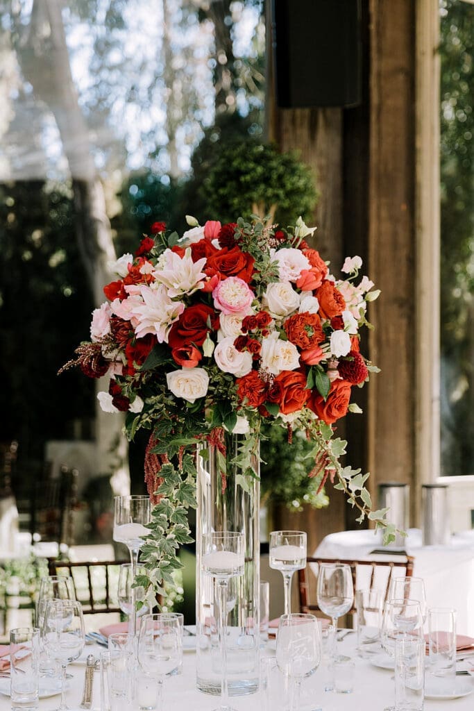 The grand reception featured a sophisticated design that perfectly balanced rustic and modern elements. Specifically, the couple decorated the space with lush red and white florals, which they paired with luxurious hints of gold hardware. Consequently, the Oak Room transformed into a vibrant and romantic sanctuary. Furthermore, a custom neon sign proudly displayed their new union as “The Mows,” adding a trendy, personalized touch to the classic Malibu setting.