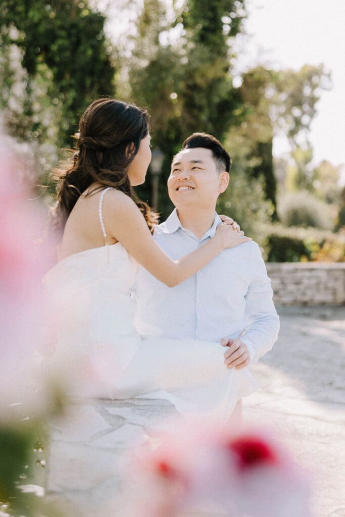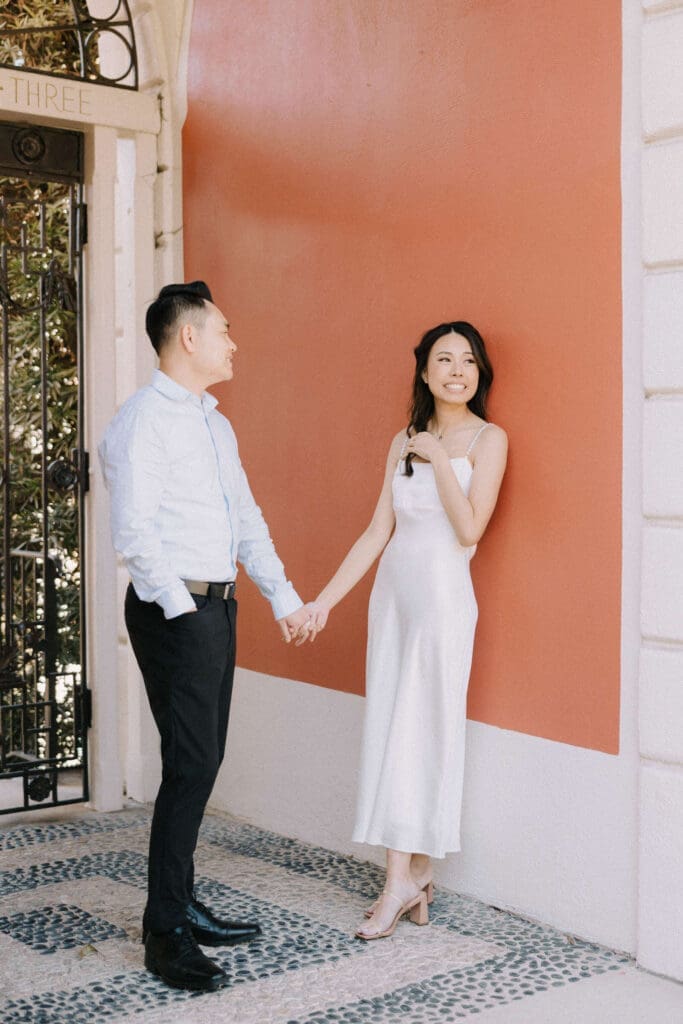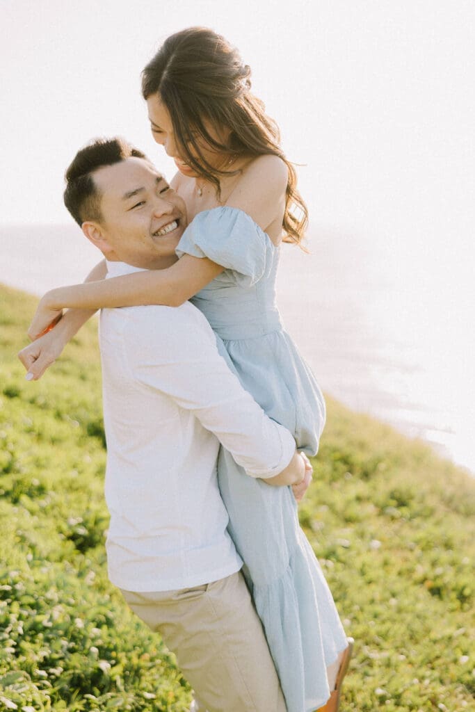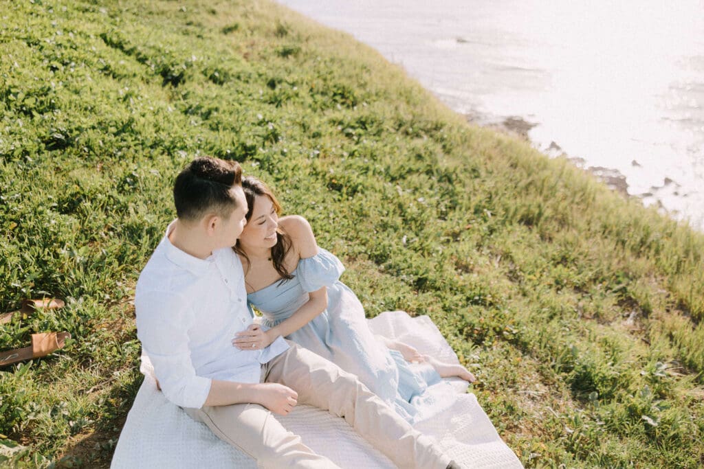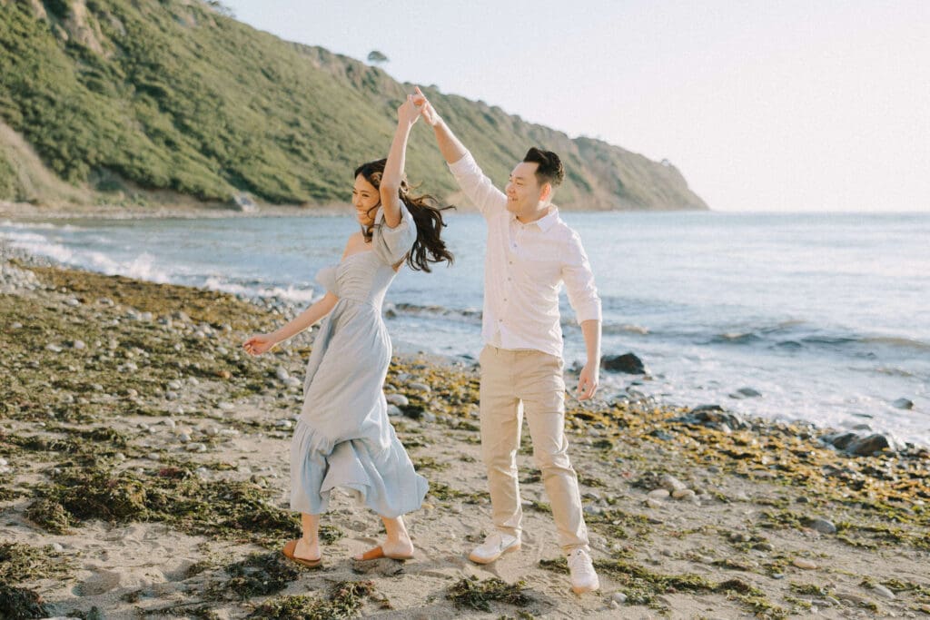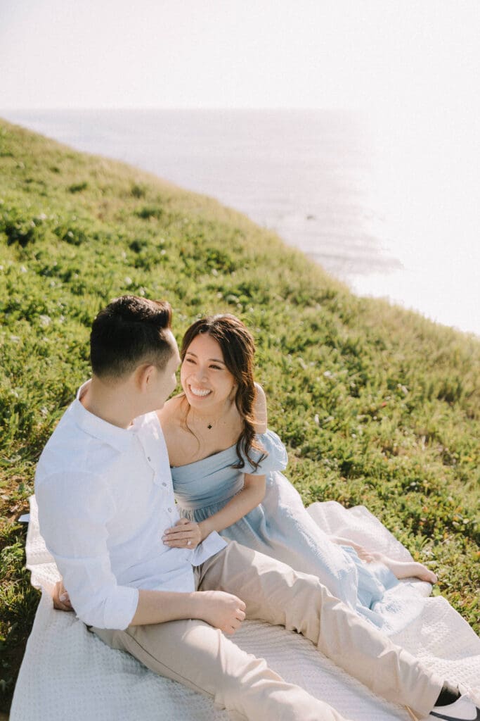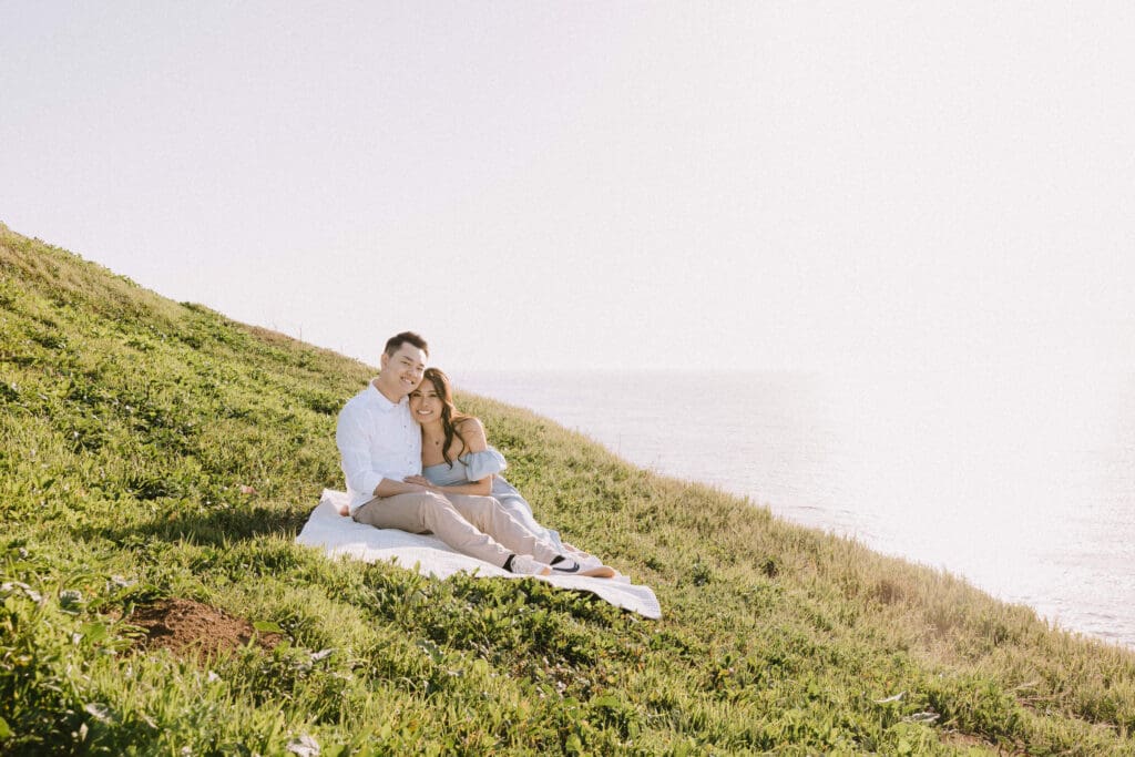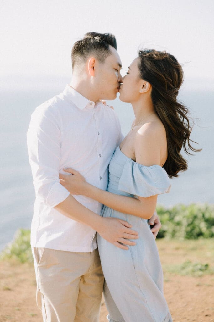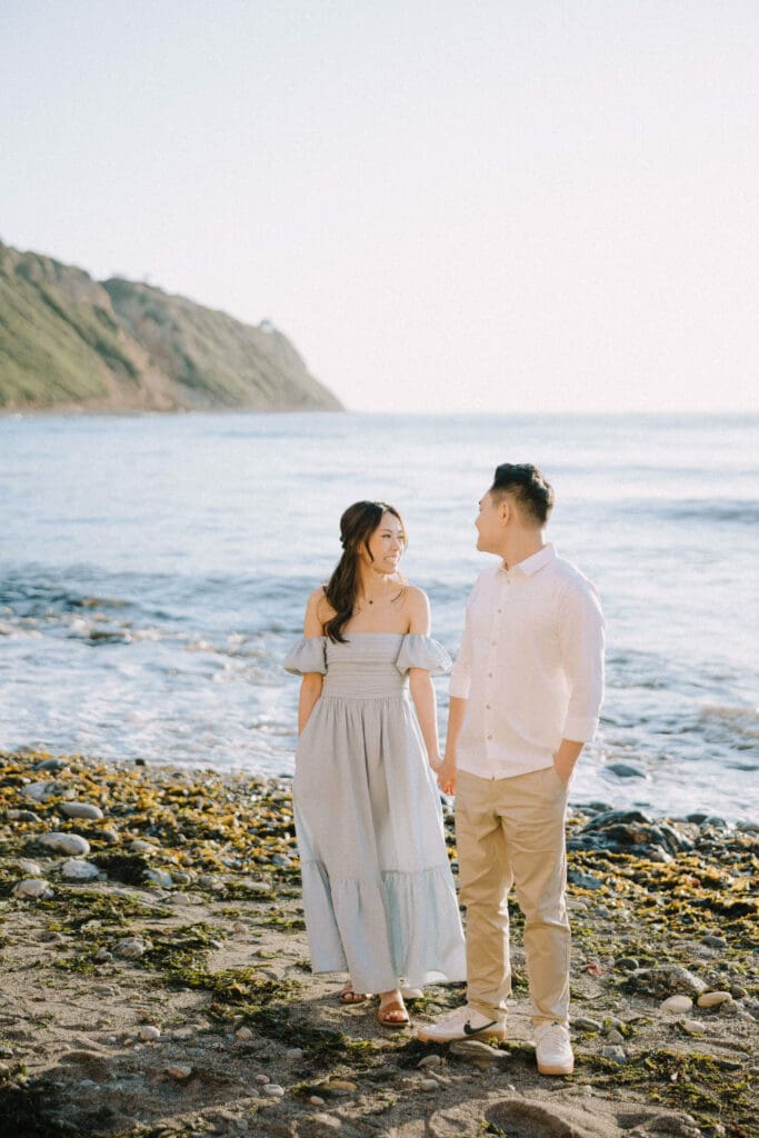 After finishing their drinks, we headed to the iconic cliffs of Palos Verdes. The couple wanted a “nature-y” vibe to contrast their urban start. The rolling hills and ocean views provided a stunning, scenic backdrop.