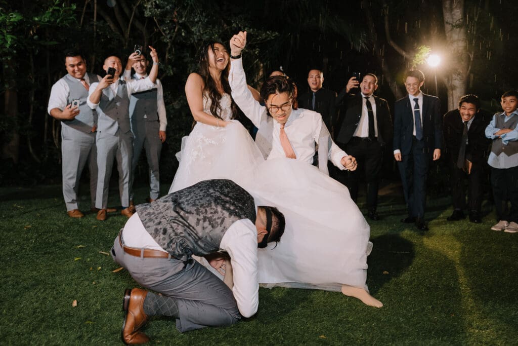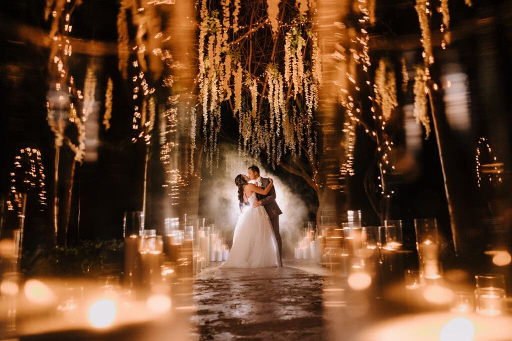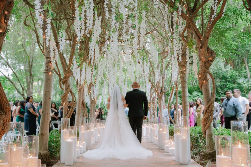 After seven years of adventure, Kevin chose a setting as magical as their connection for a life-changing question. In October 2021, at the Rise Lantern Festival in Las Vegas, he asked Caitlinn for forever under a sky illuminated by thousands of glowing lanterns. This moment set the stage for their next big performance: a breathtaking garden wedding.