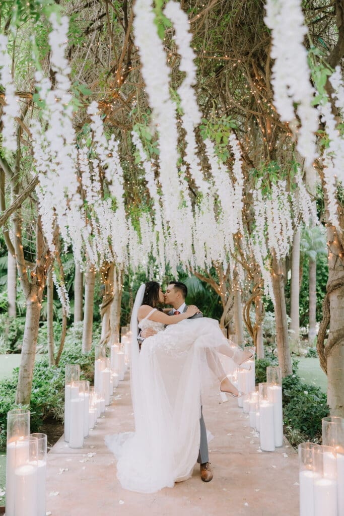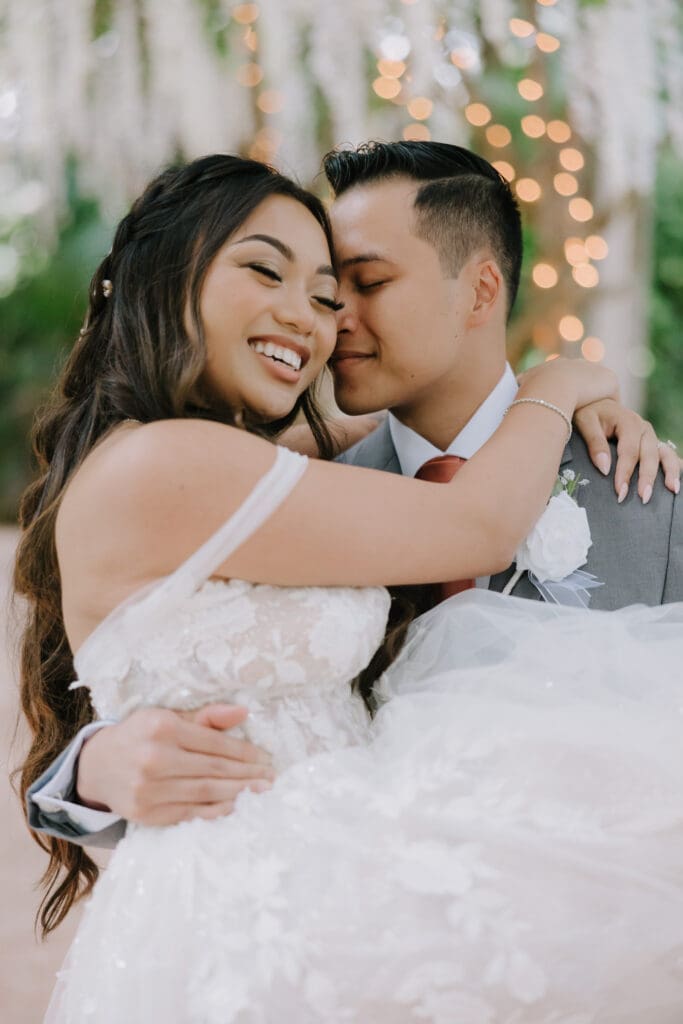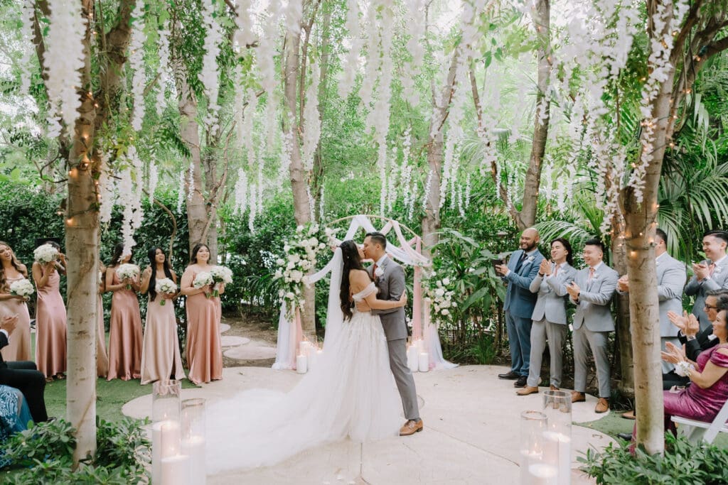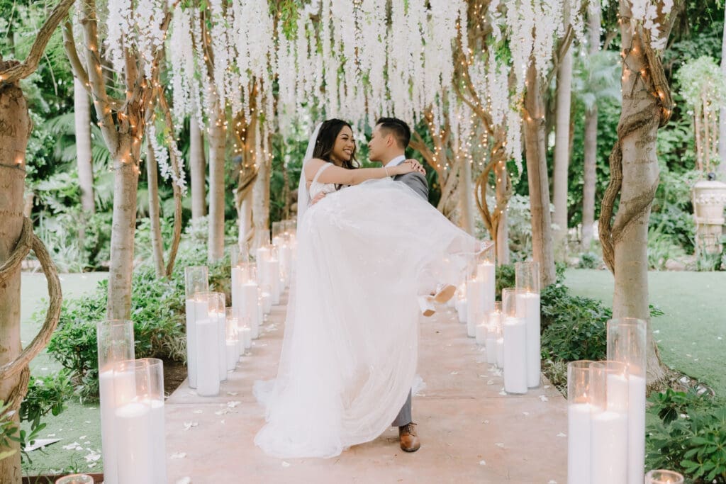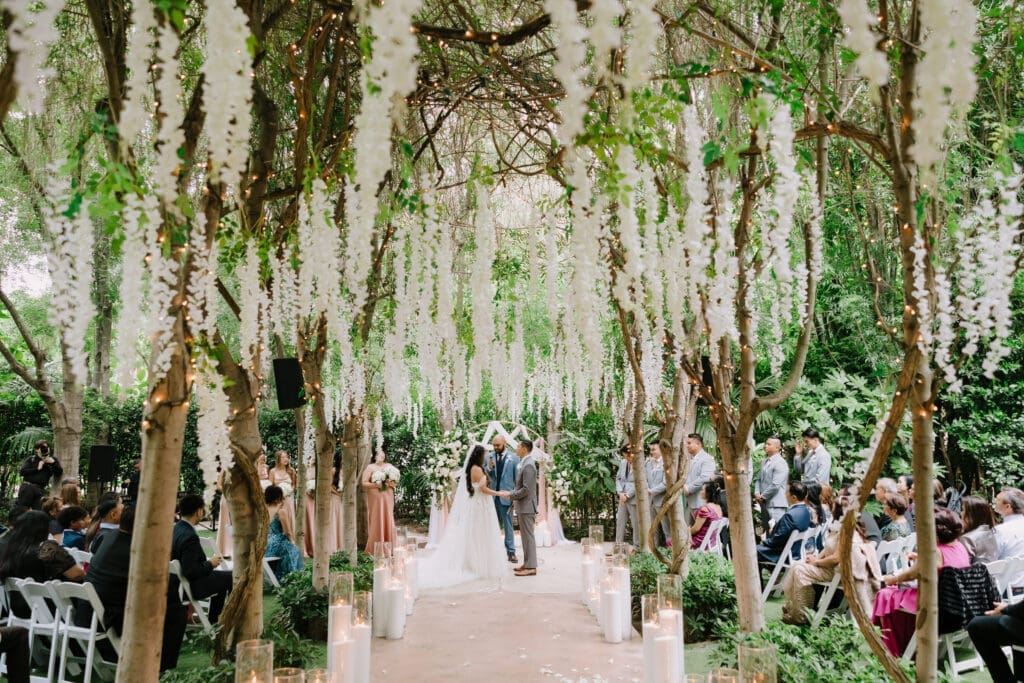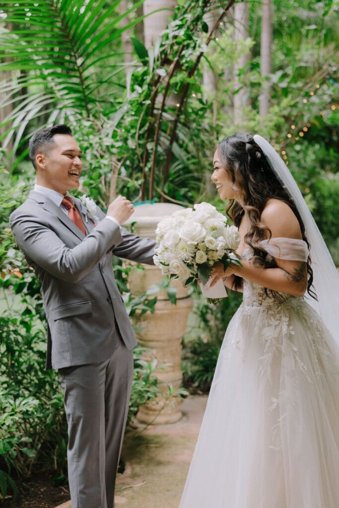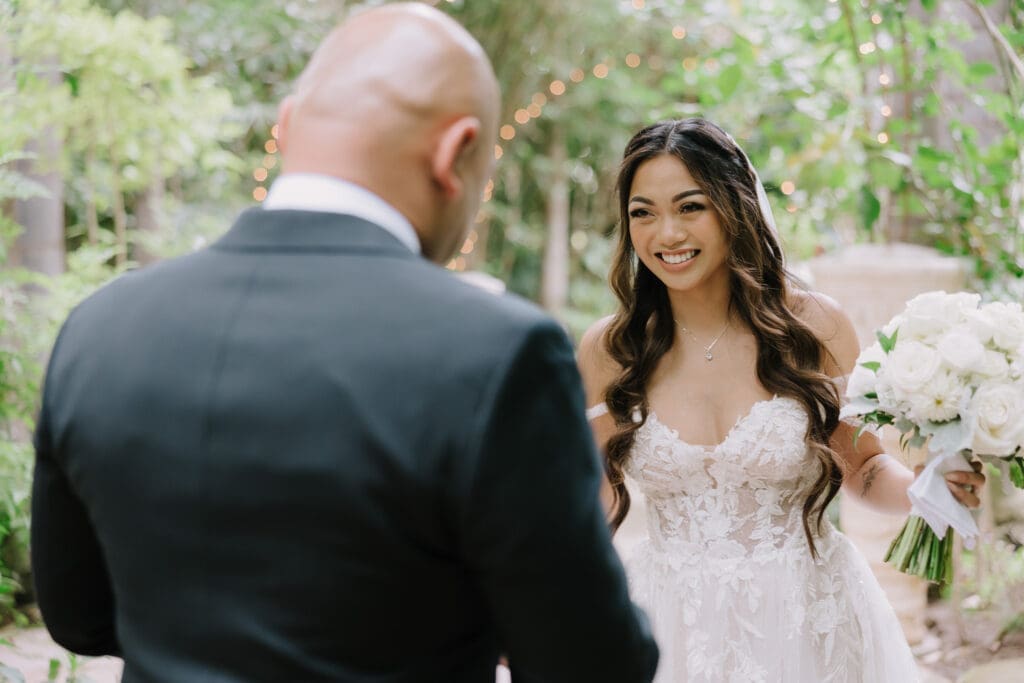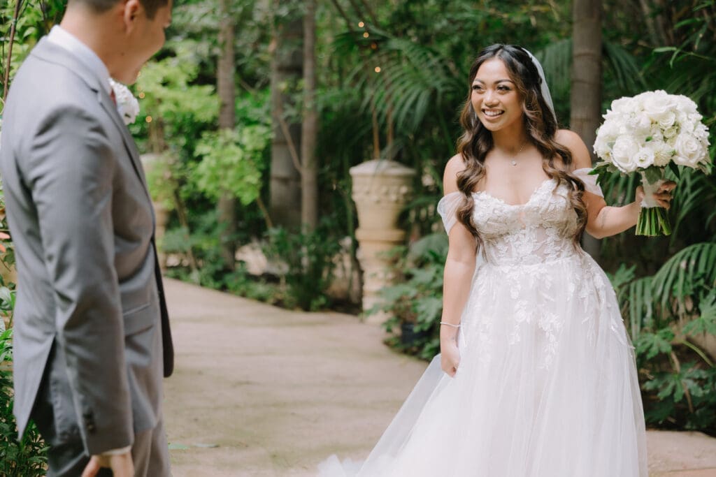 The couple chose the lush, tropical grounds of Hartley Botanica in Somis for their celebration. Because the venue is famous for its “secret garden” atmosphere, it provided a serene backdrop for their heartfelt vows. Furthermore, the natural beauty of the estate complemented their radiant smiles, creating a day that felt like a living fairytale.