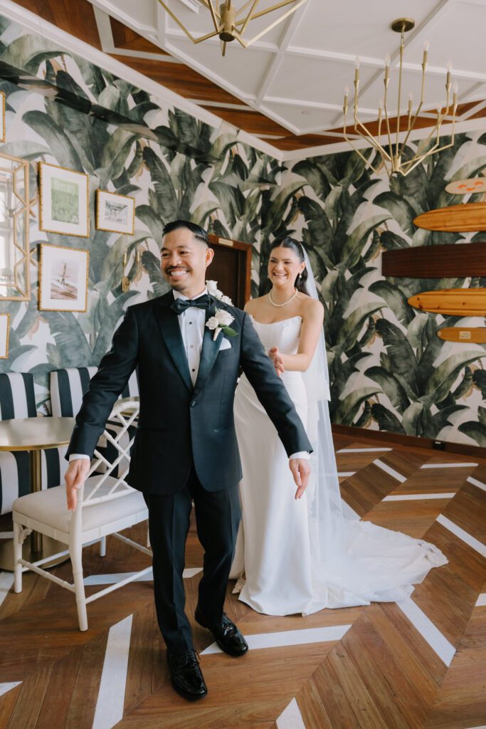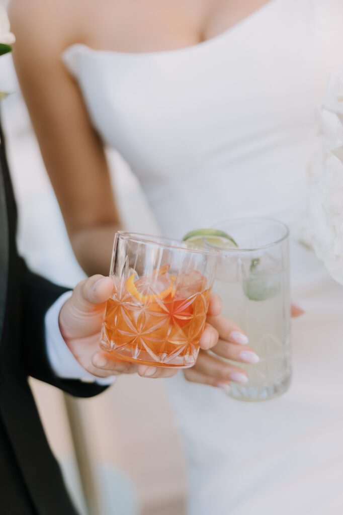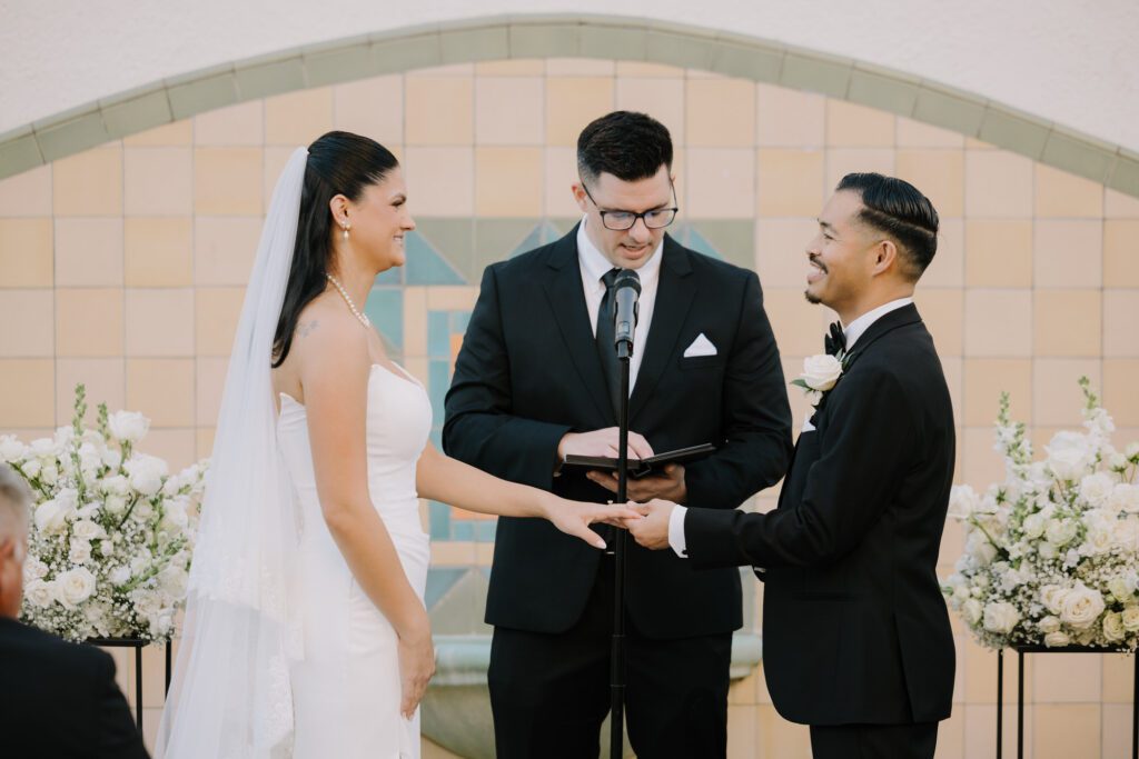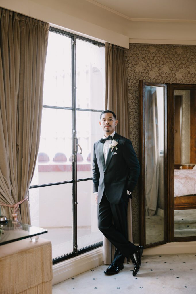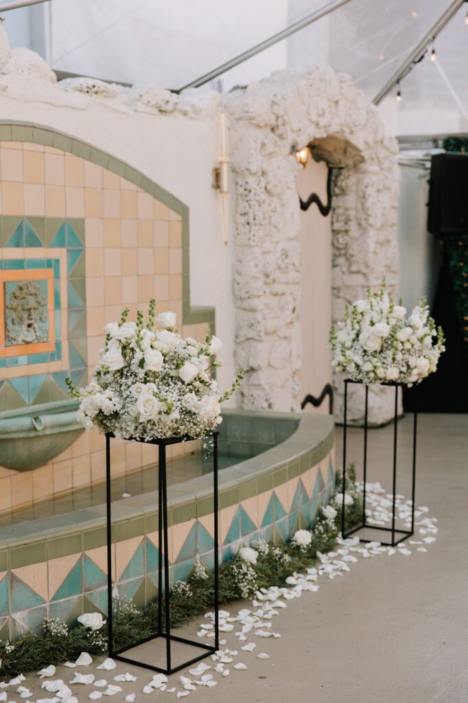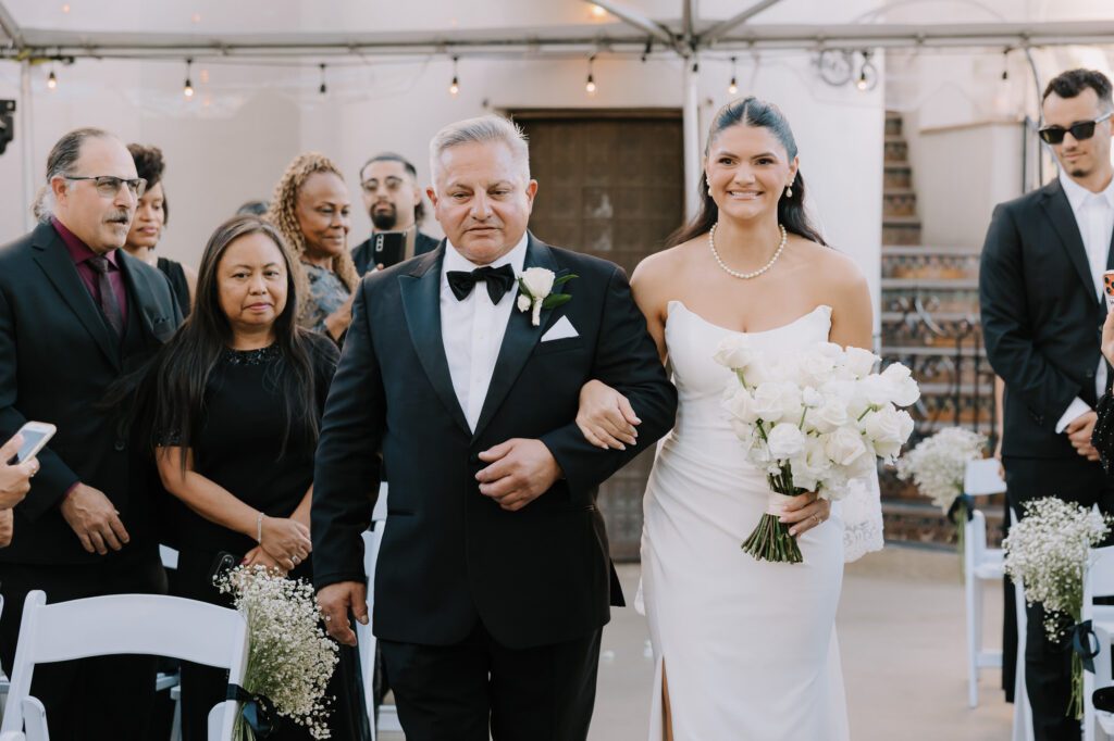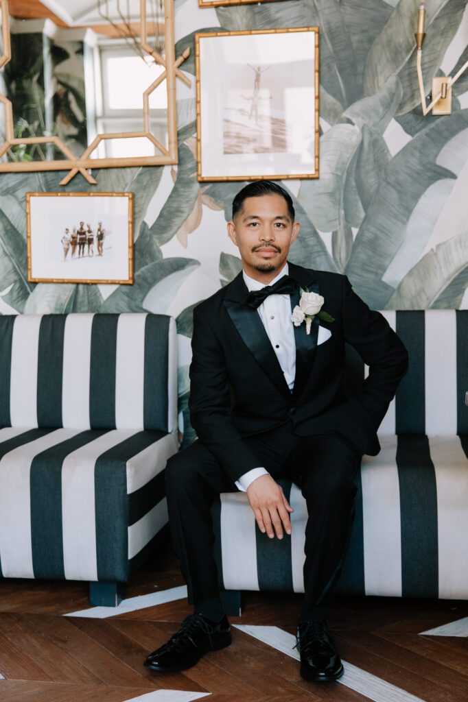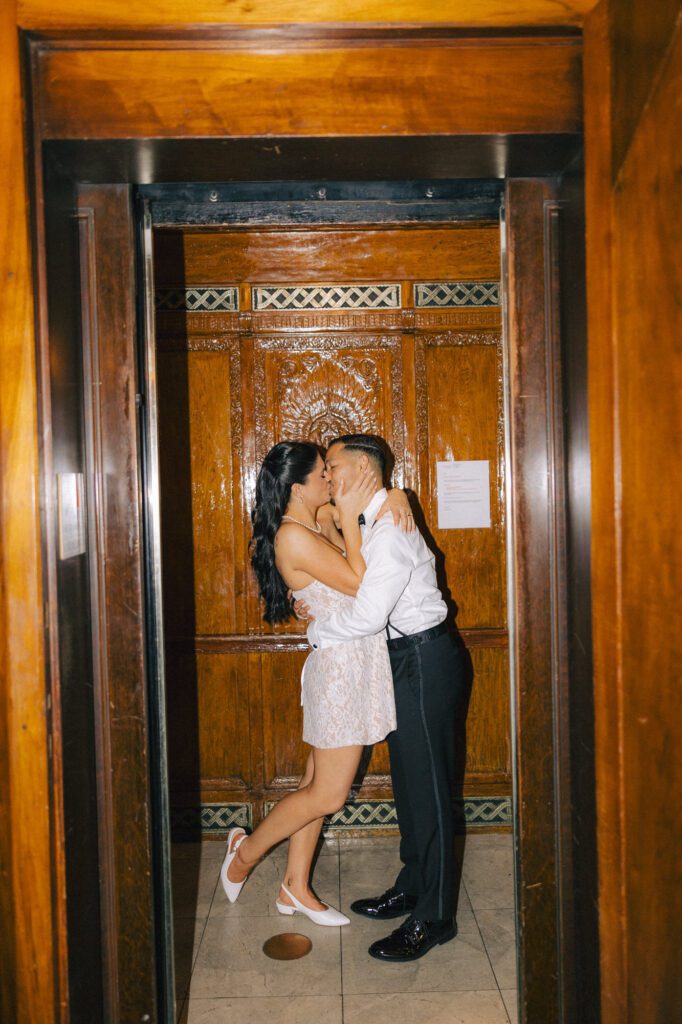 Built in 1928, the Oviatt is a masterclass in historic, vintage aesthetics. Its Art Deco architecture and intricate marble work offer a timeless backdrop that feels both cinematic and intimate. The couple fell in love with the logistical ease of the space—having the ceremony, cocktail hour, and reception all in one sky-high location, with the convenience of nearby hotels just a short stroll away.