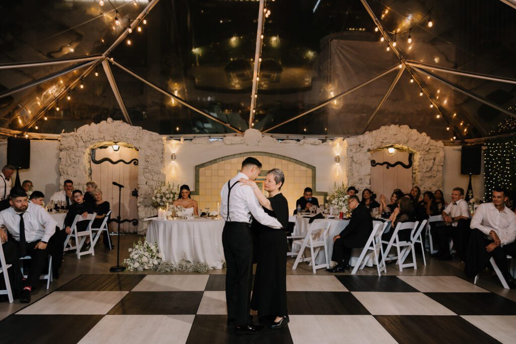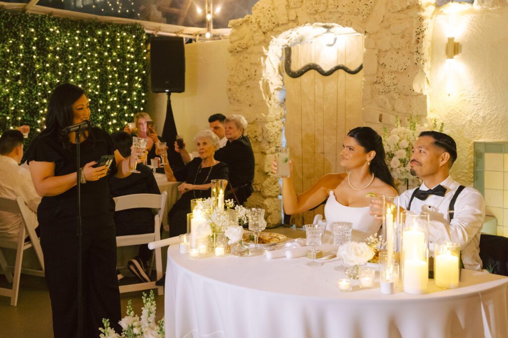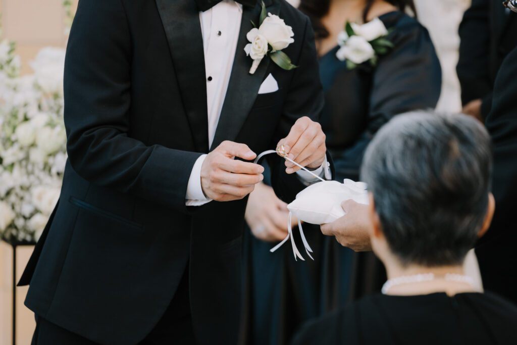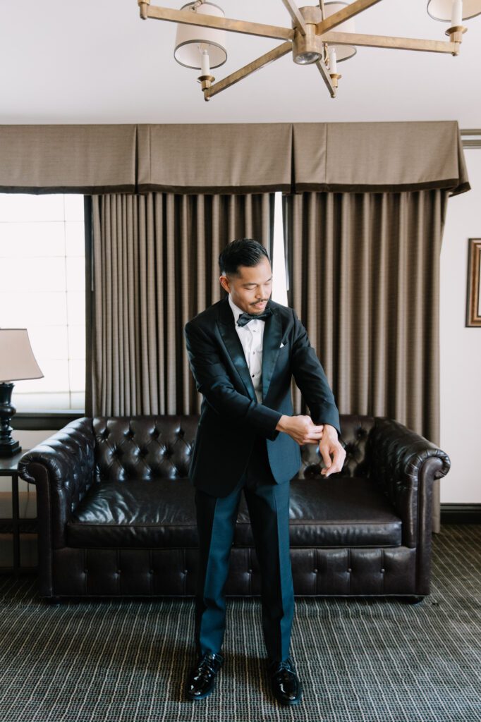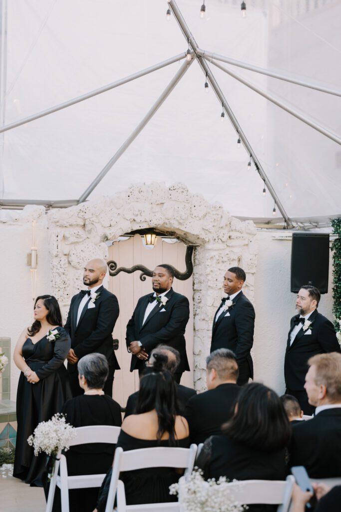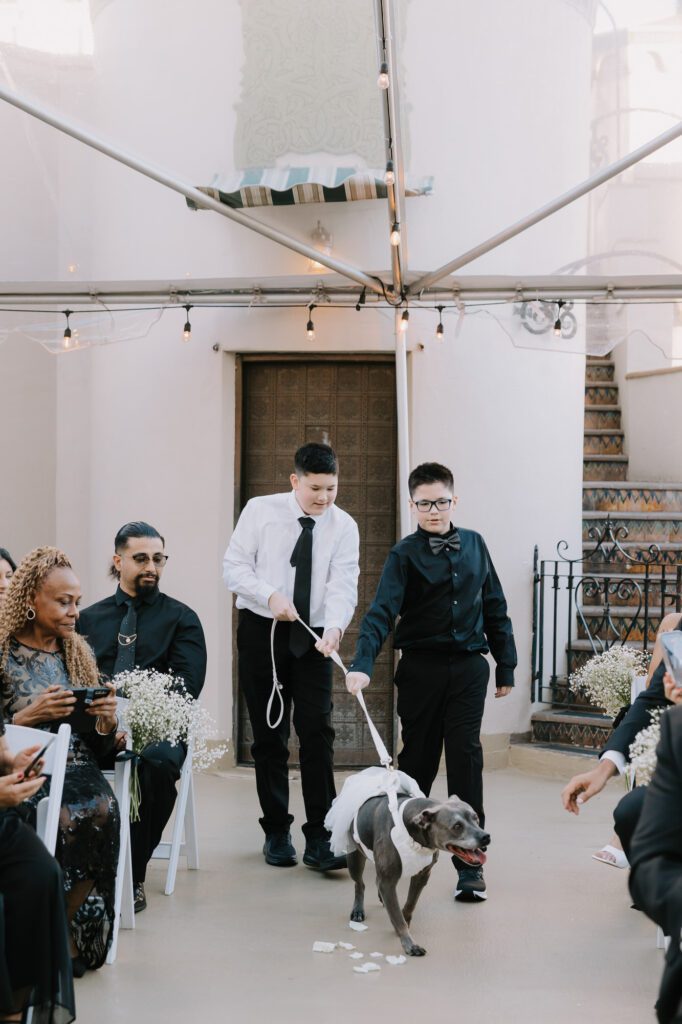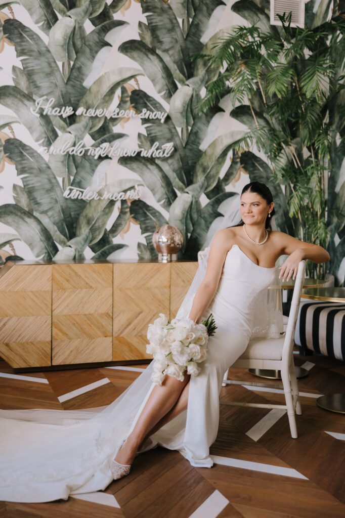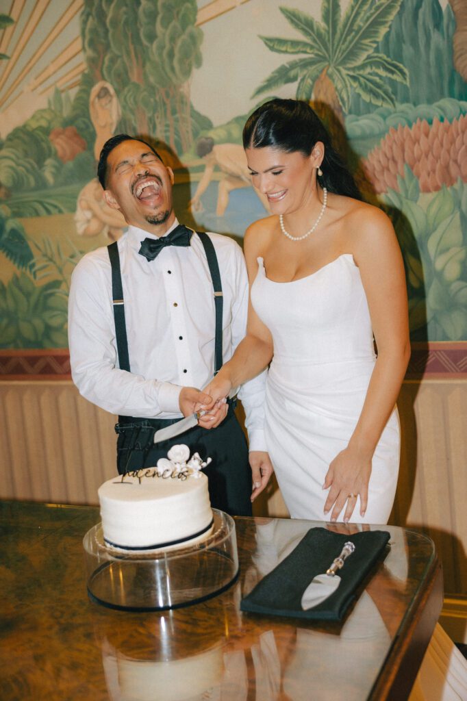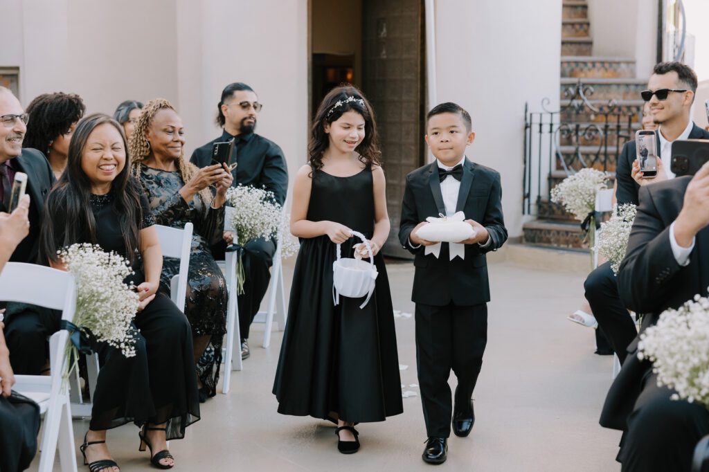 Built in 1928, the Oviatt is a masterclass in historic, vintage aesthetics. Its Art Deco architecture and intricate marble work offer a timeless backdrop that feels both cinematic and intimate. The couple fell in love with the logistical ease of the space—having the ceremony, cocktail hour, and reception all in one sky-high location, with the convenience of nearby hotels just a short stroll away.