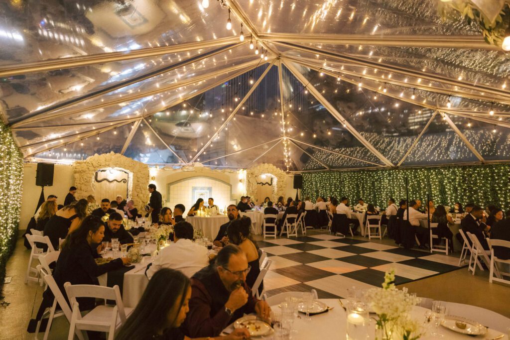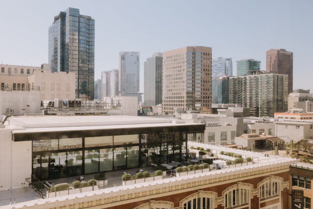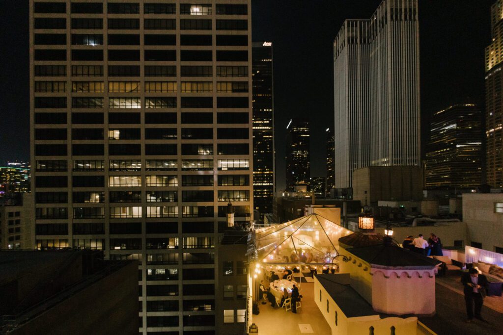 Perched atop the James Oviatt Building, this venue is a DTLA treasure. It features an expansive outdoor rooftop deck with panoramic views of the Los Angeles skyline, balanced by an indoor space filled with authentic Lalique glass and rich woodwork. It is the ultimate destination for couples seeking a “Old Hollywood” feel without leaving the heart of the modern city.
