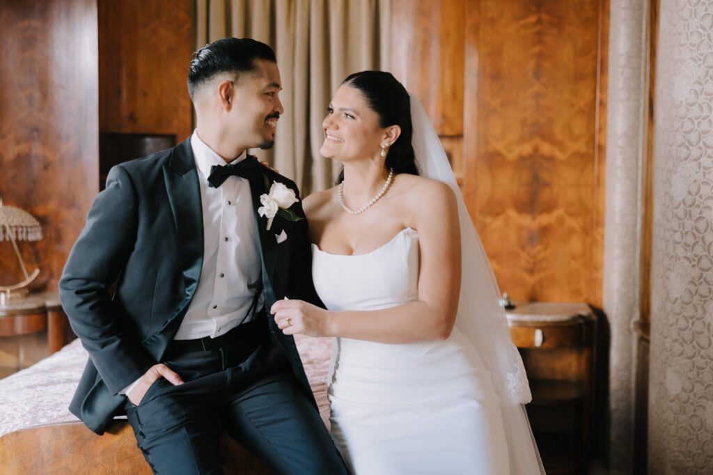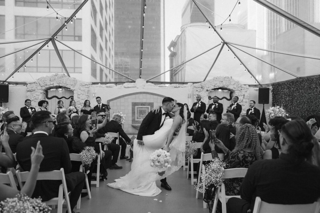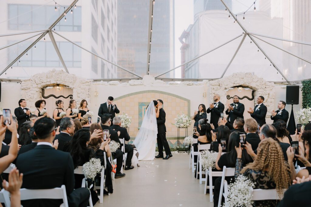 For Jessica and Anthony, the search for the perfect wedding venue started and ended at the Oviatt Penthouse in Downtown Los Angeles. After touring several other spots, nothing could quite match the immediate “vibe” they felt from the Oviatt staff and its storied halls.