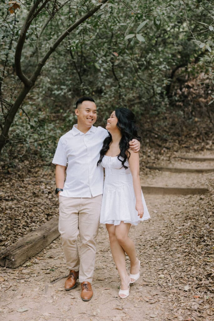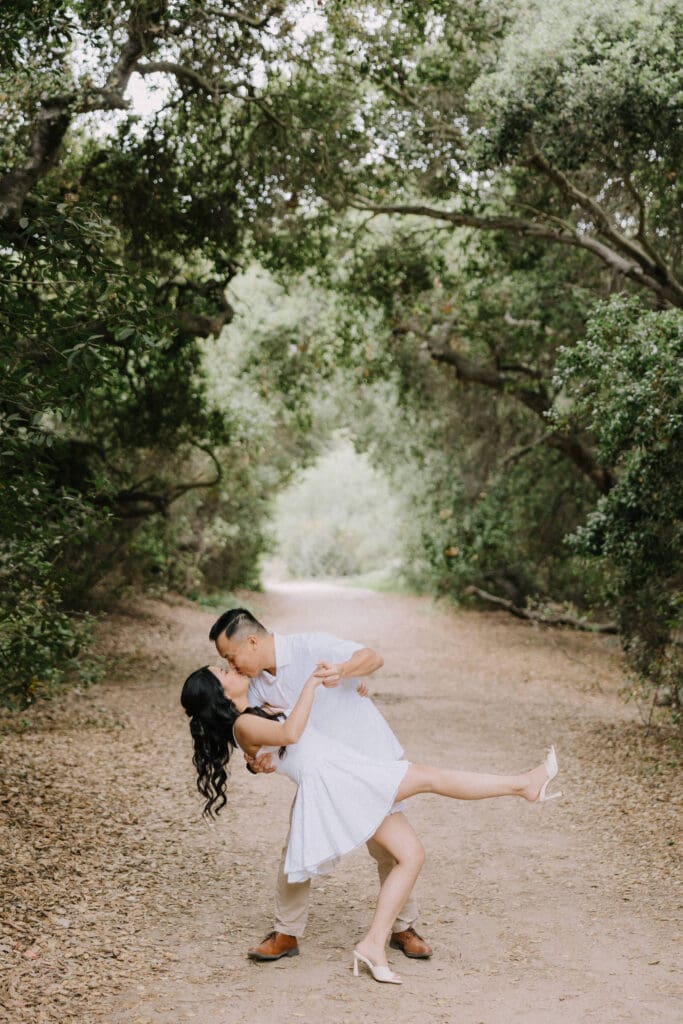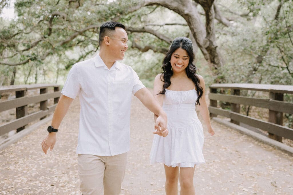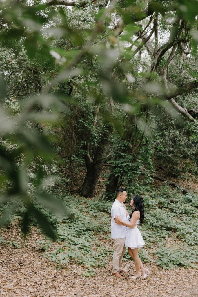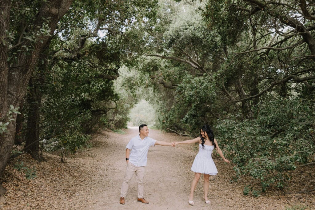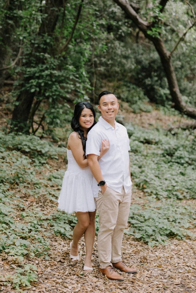 For couples who want the best of both California worlds, Maddy and Matt’s session is the ultimate blueprint. We spent the afternoon chasing a high-contrast aesthetic, moving from the shaded, earthy textures of Oak Canyon Nature Center to the sprawling coastal luxury of Treasure Island.