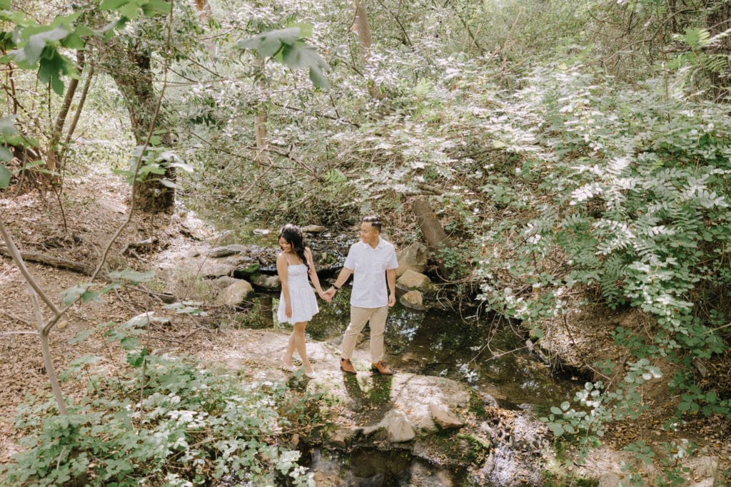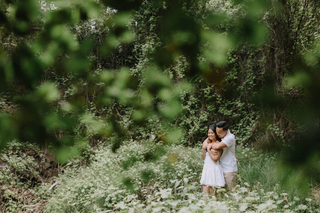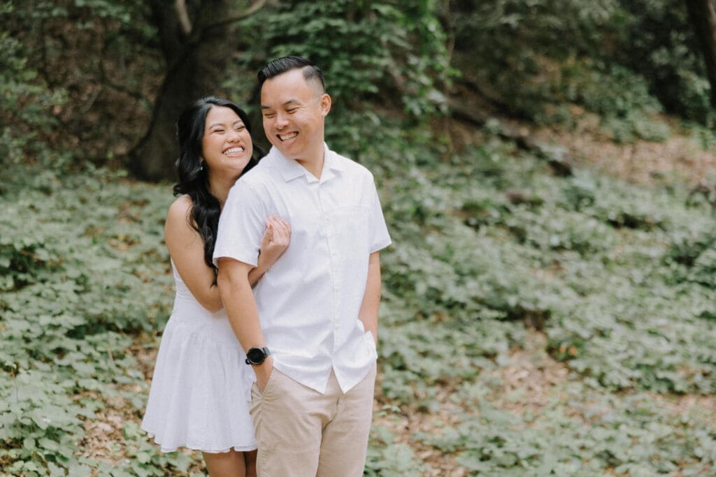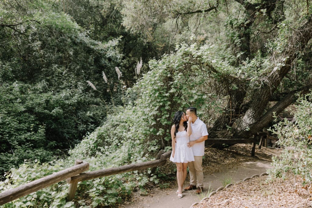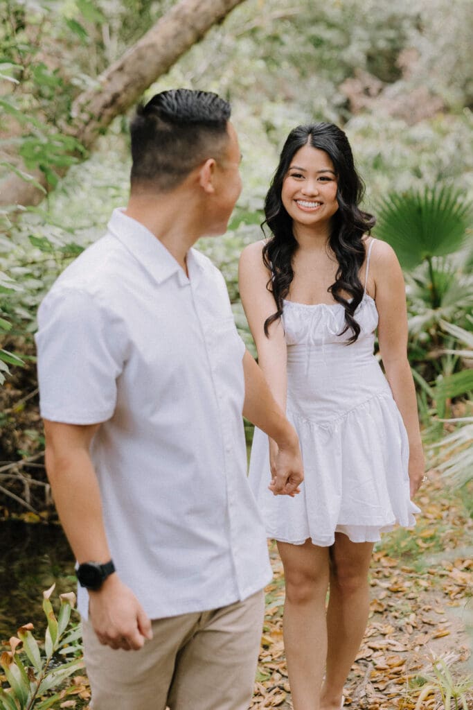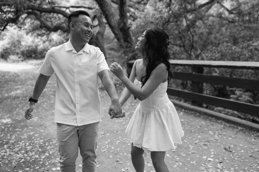 For couples who want the best of both California worlds, Maddy and Matt’s session is the ultimate blueprint. We spent the afternoon chasing a high-contrast aesthetic, moving from the shaded, earthy textures of Oak Canyon Nature Center to the sprawling coastal luxury of Treasure Island.