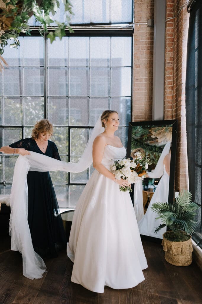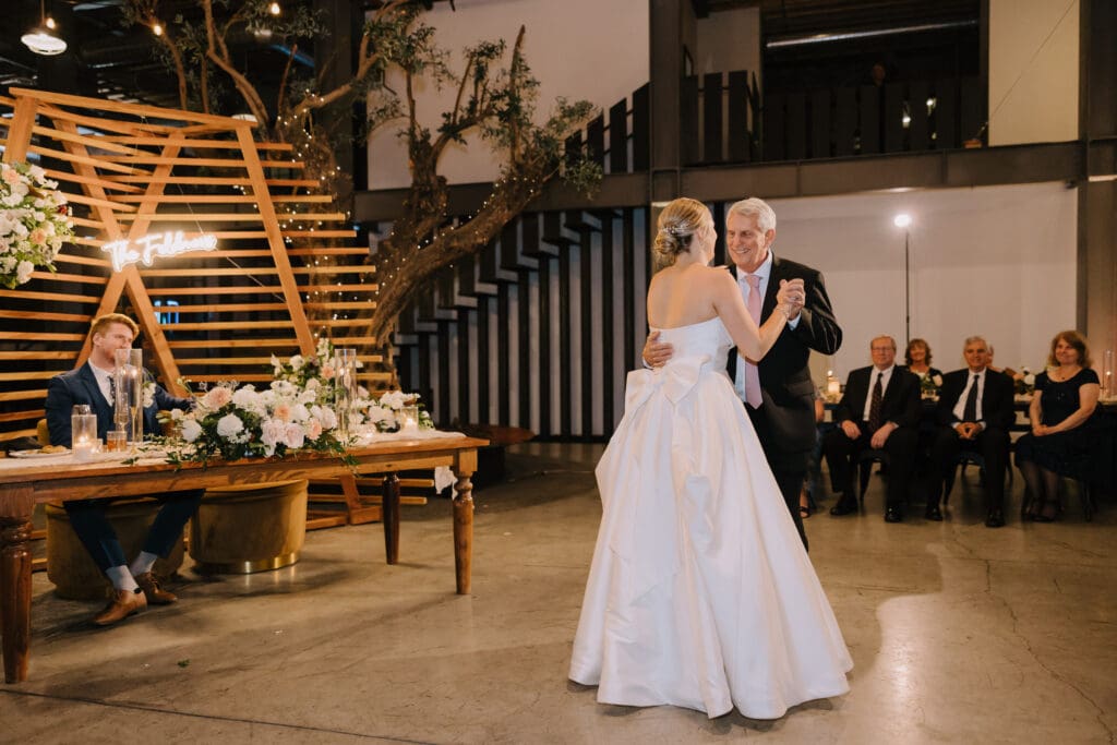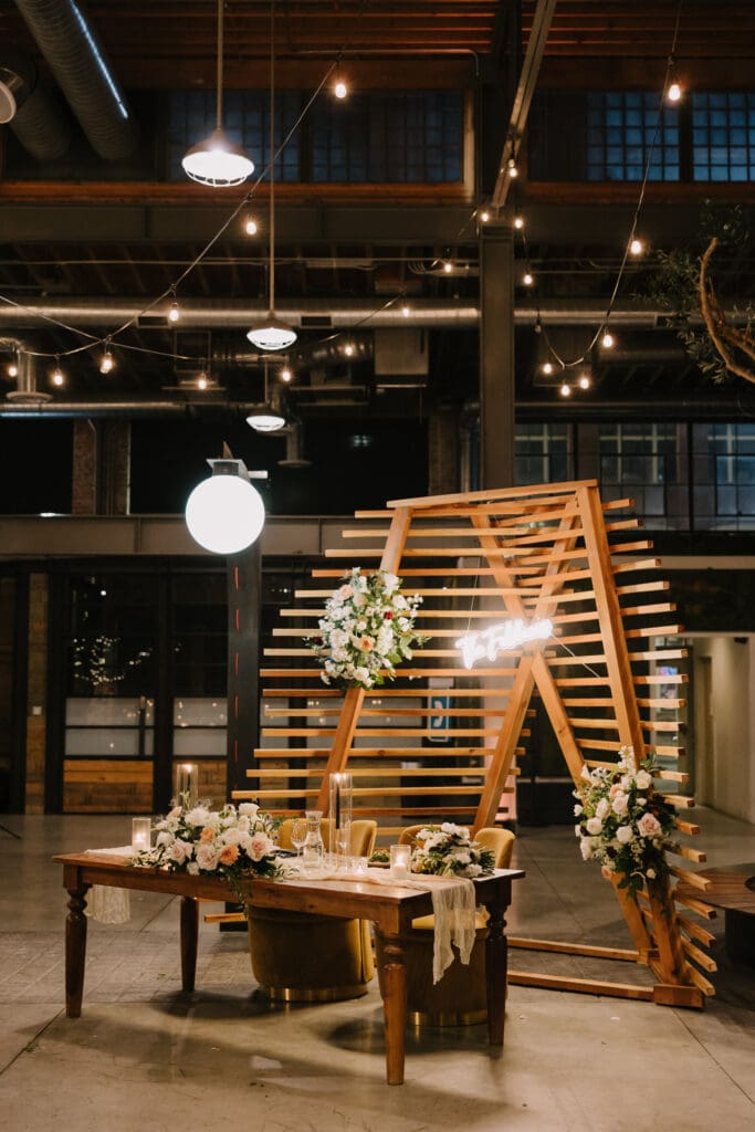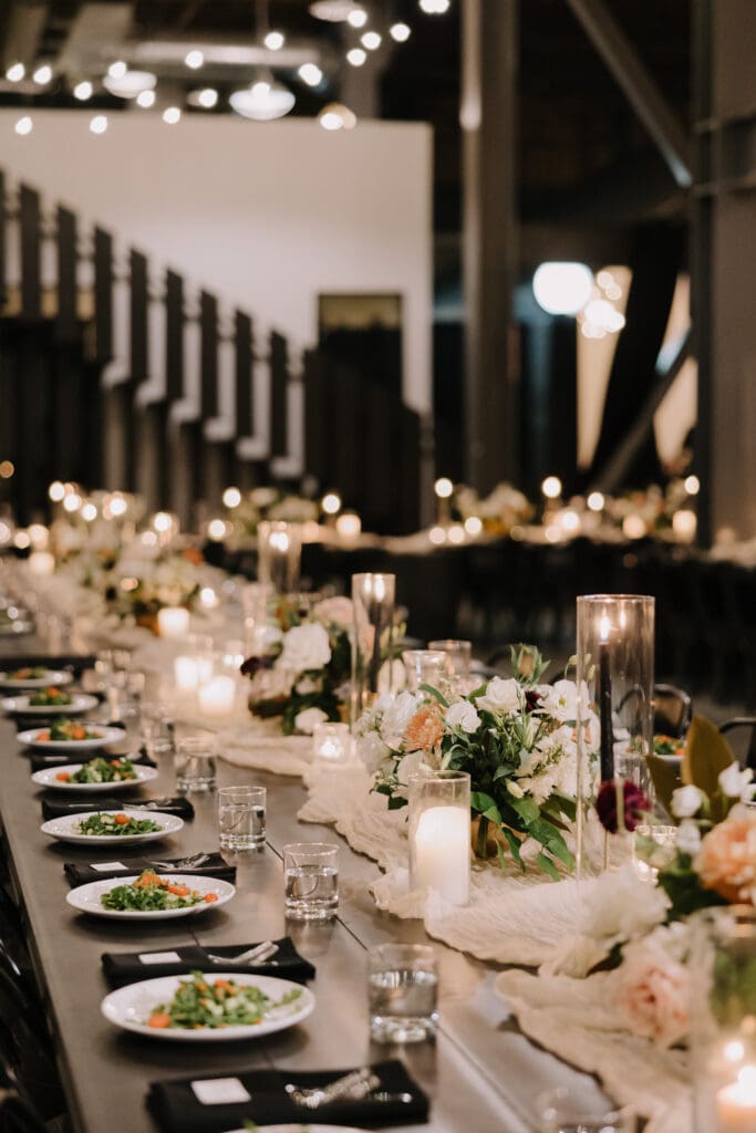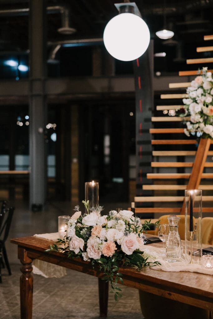 Located within the historic 1933 TR Produce warehouse, Venue 808 is far from your typical ballroom. Stepping inside, guests are immediately greeted by an expansive 18,000-square-foot space that feels both grand and intimate. For Melissa and Ari, the venue provided the perfect “blank canvas” to blend their sophisticated style with the building’s raw, urban character.