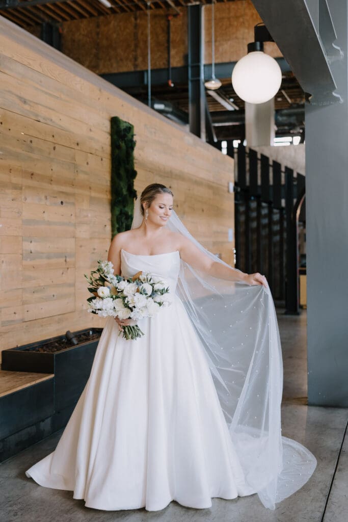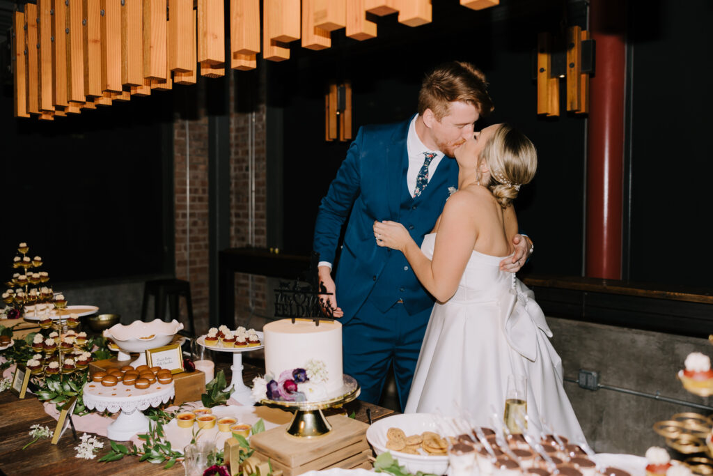 As the night progressed, the industrial-chic aesthetic truly shined. Between the exposed brick walls, market string lights, and custom metal farm tables, the reception felt like a high-end urban gala. The couple utilized the venue’s underground Speakeasy for a private moment after the ceremony—a hidden gem that adds a layer of mystery and “cool factor” to the event.