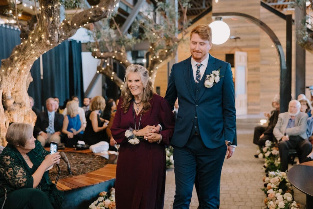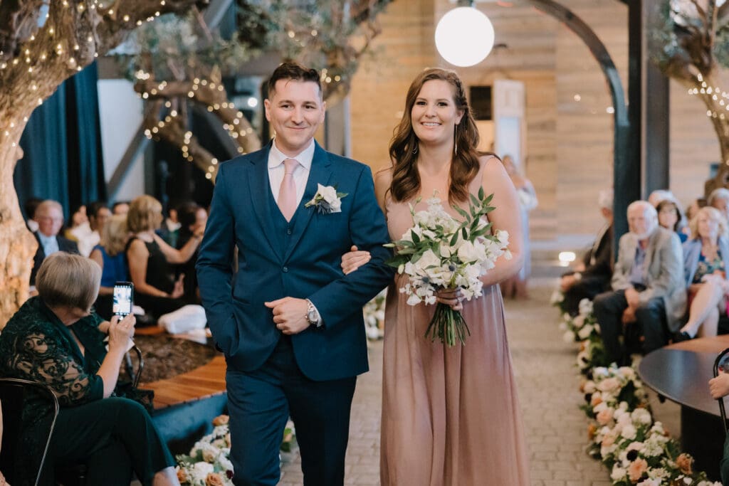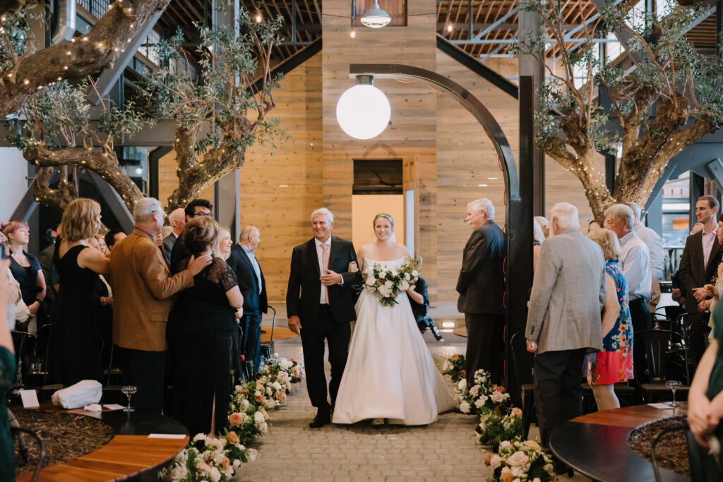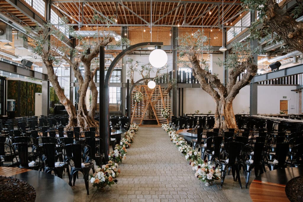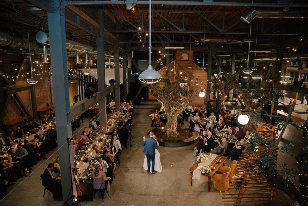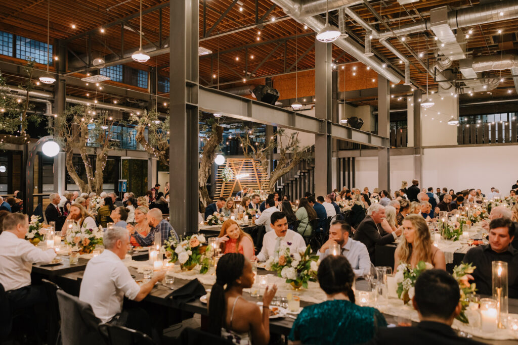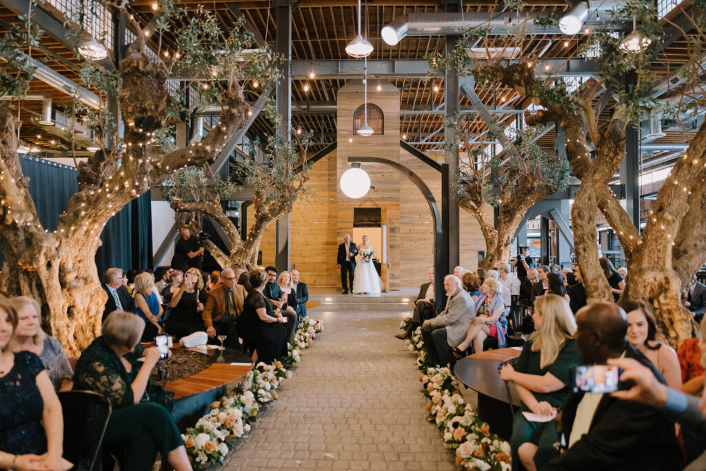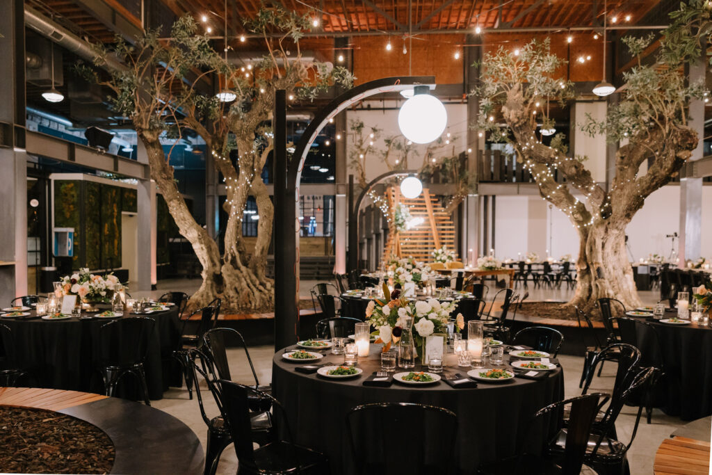 One of the most talked-about features of a Venue 808 San Diego wedding is the indoor grove. Yes, real olive trees! Melissa and Ari’s guests enjoyed signature cocktails in the Sunken Lounge, surrounded by mature trees draped in delicate fairy lights. This “indoor-outdoor” illusion is what makes Venue 808 a top choice for couples who want the beauty of nature without the unpredictability of Southern California weather.
