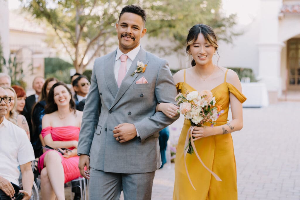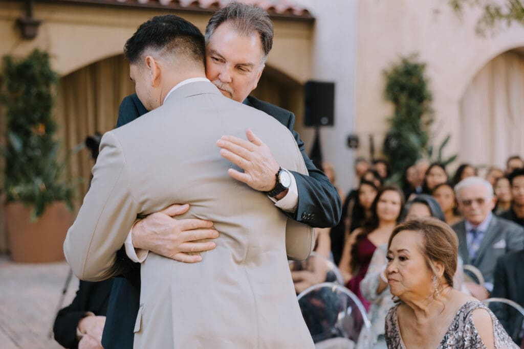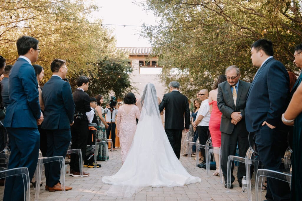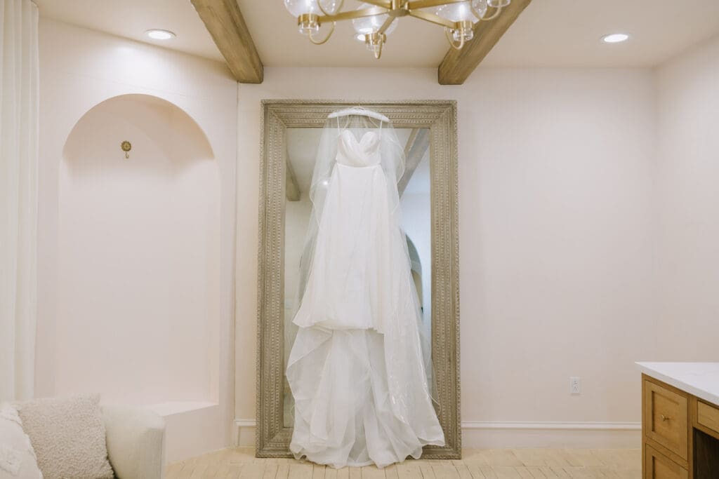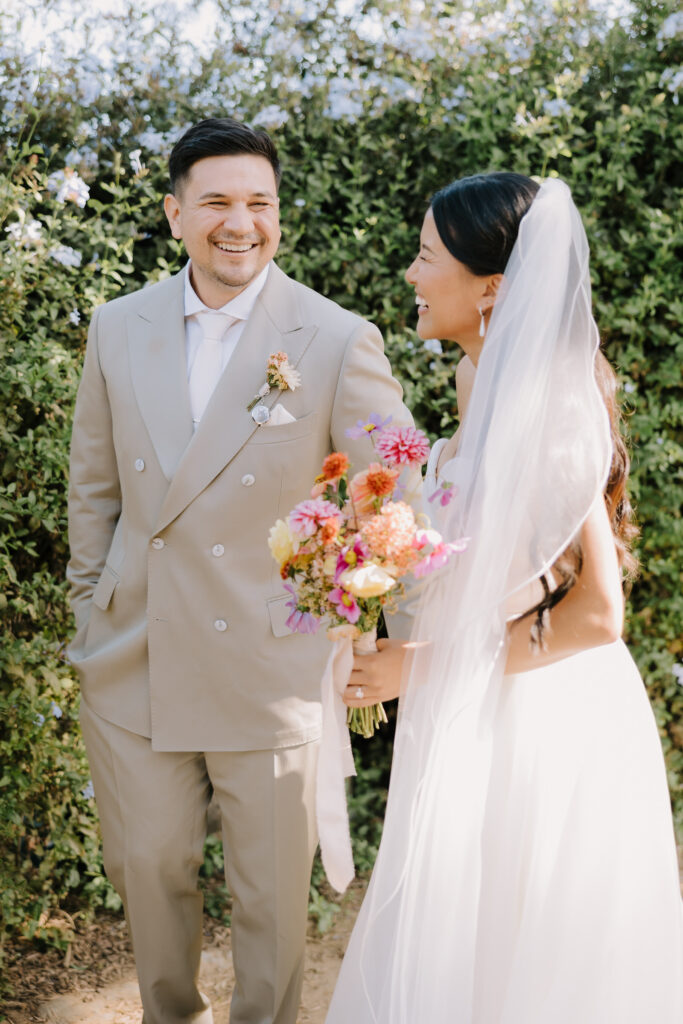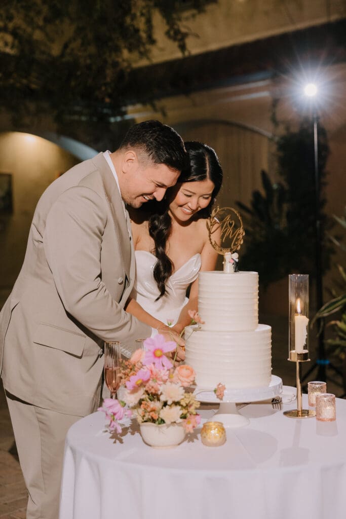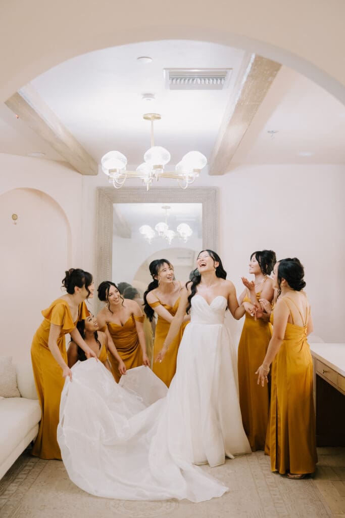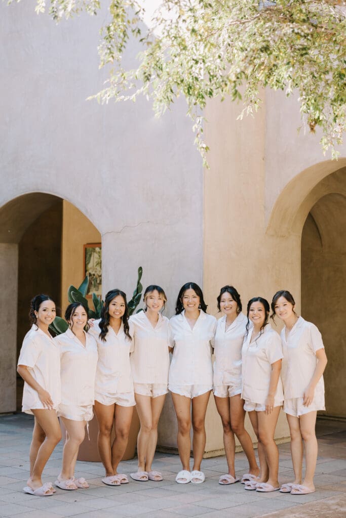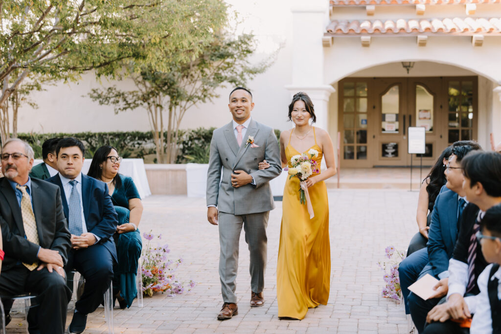 We began the day at the iconic Mission San Juan Capistrano. Known as the “Jewel of the Missions,” its weathered stone arches and blooming bougainvillea provided a cinematic backdrop for the couple’s portraits. Alyssa’s gown glowed against the rustic textures, creating a sophisticated “Old World” feel before the festivities even began.