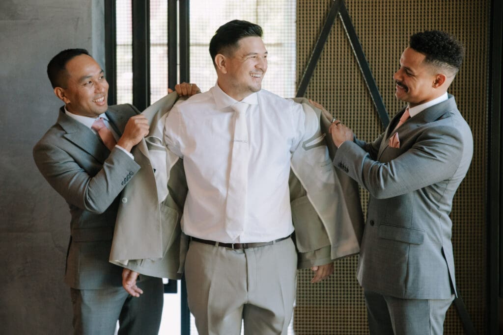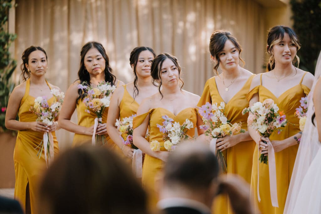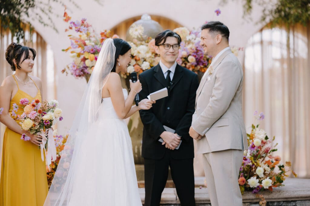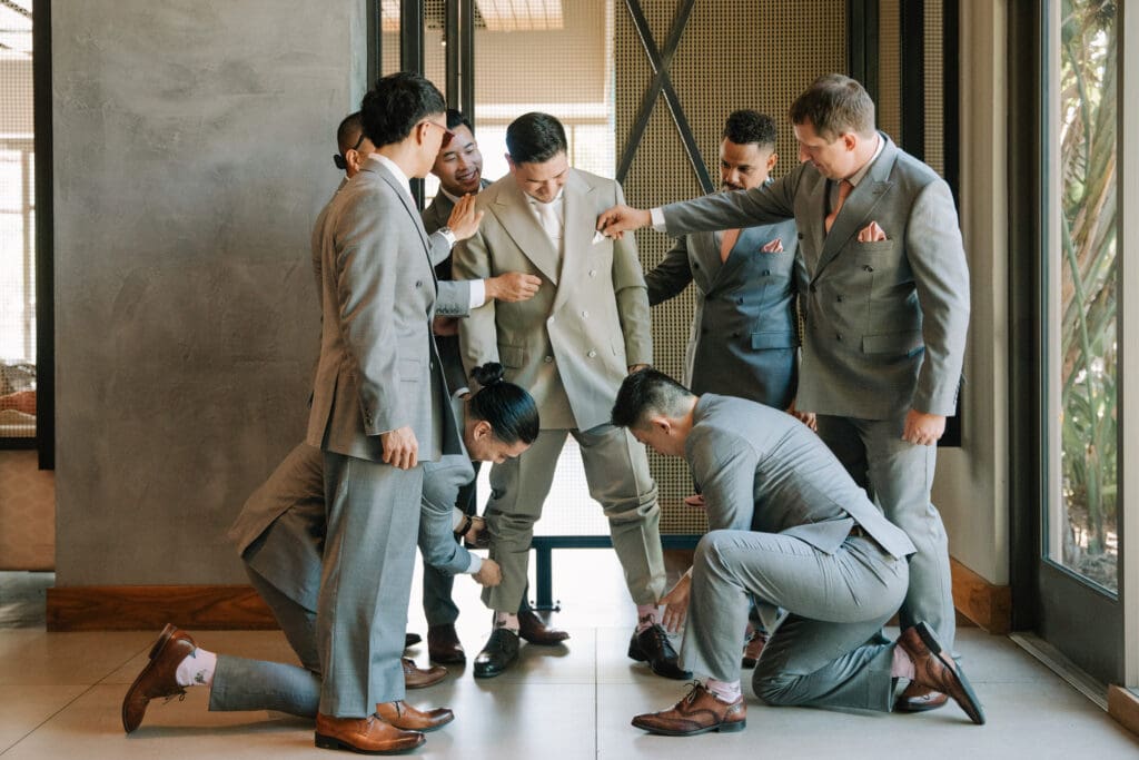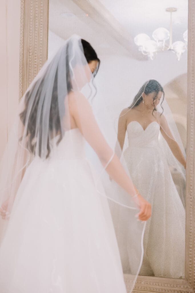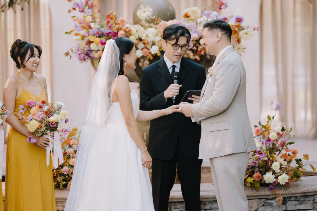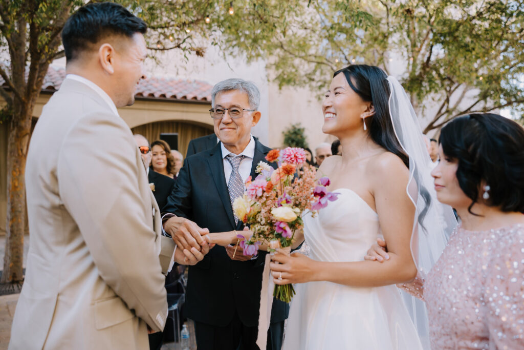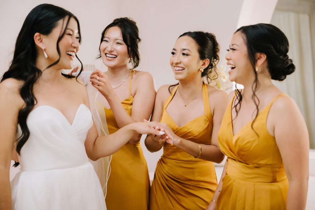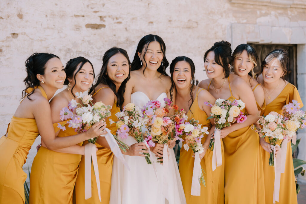We began the day at the iconic Mission San Juan Capistrano. Known as the “Jewel of the Missions,” its weathered stone arches and blooming bougainvillea provided a cinematic backdrop for the couple’s portraits. Alyssa’s gown glowed against the rustic textures, creating a sophisticated “Old World” feel before the festivities even began.
