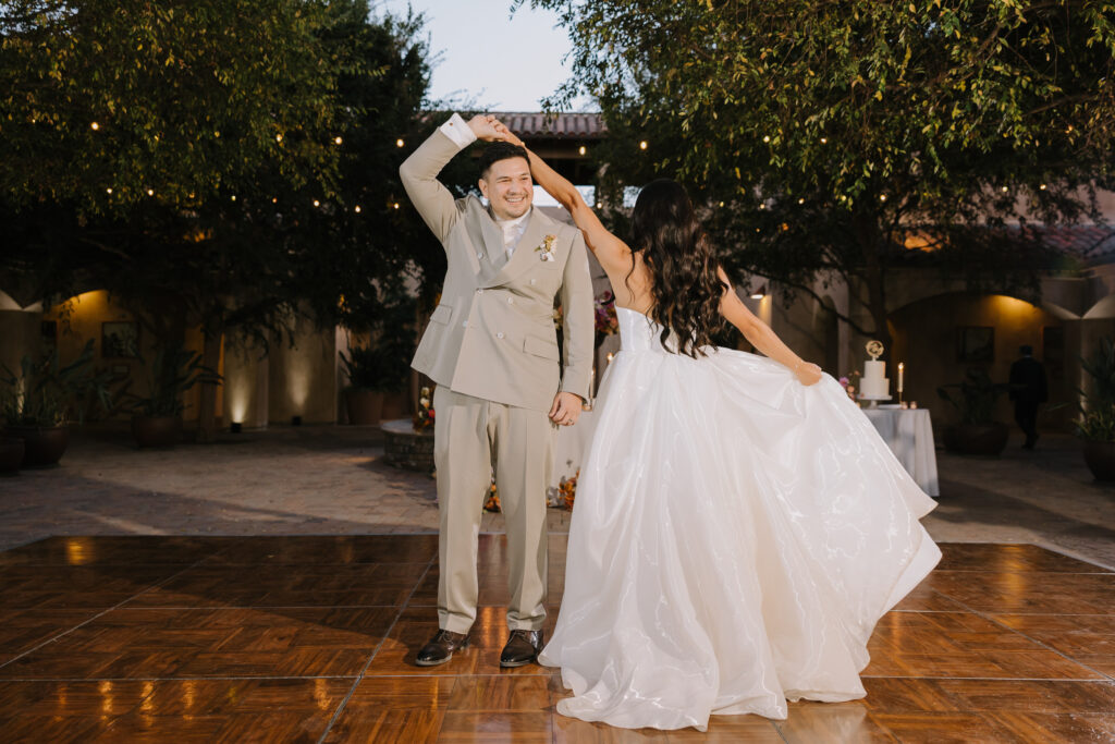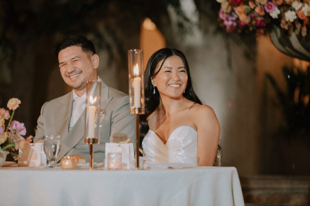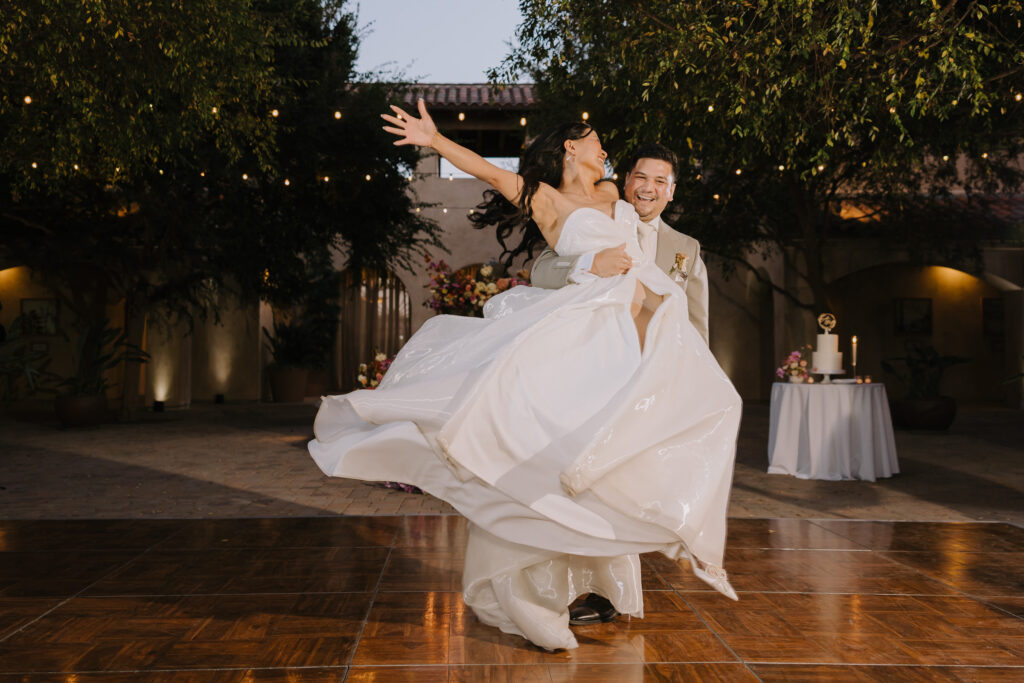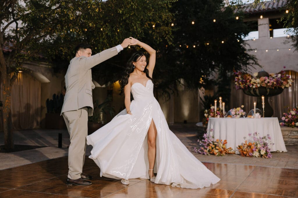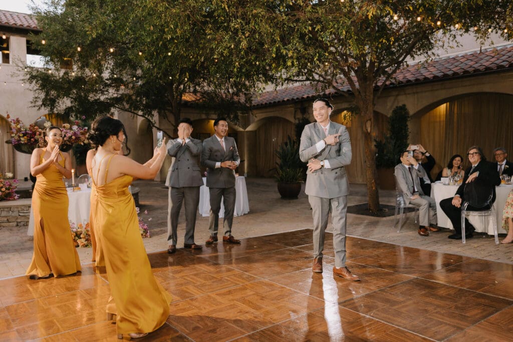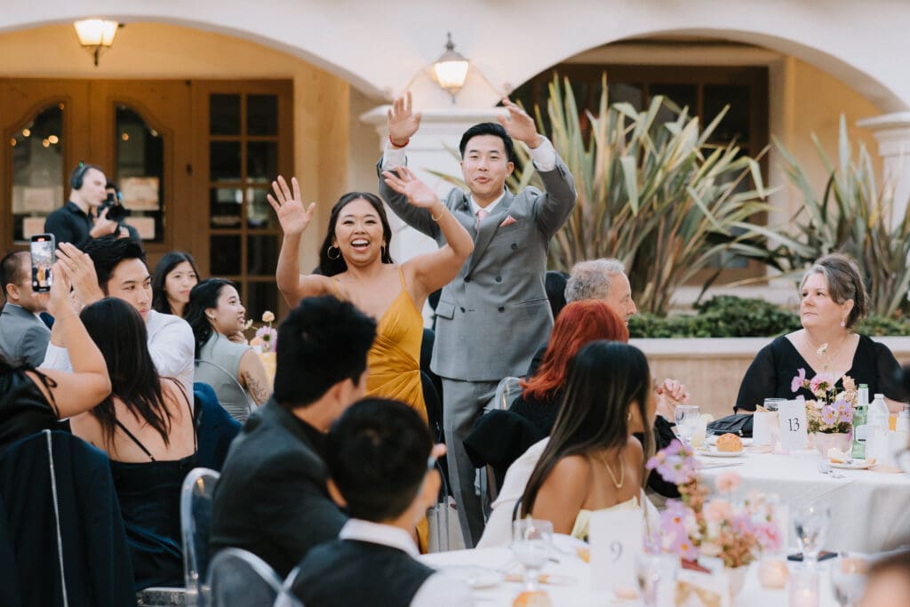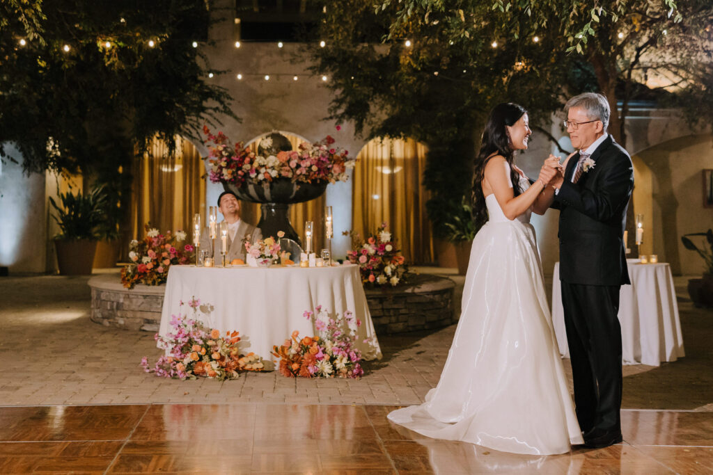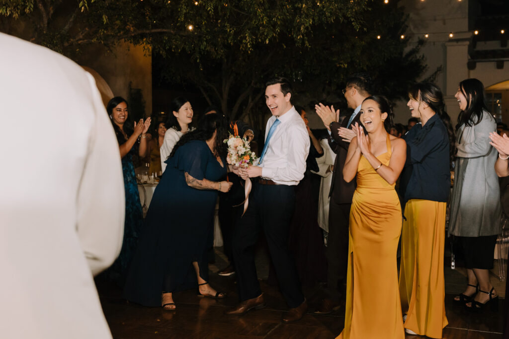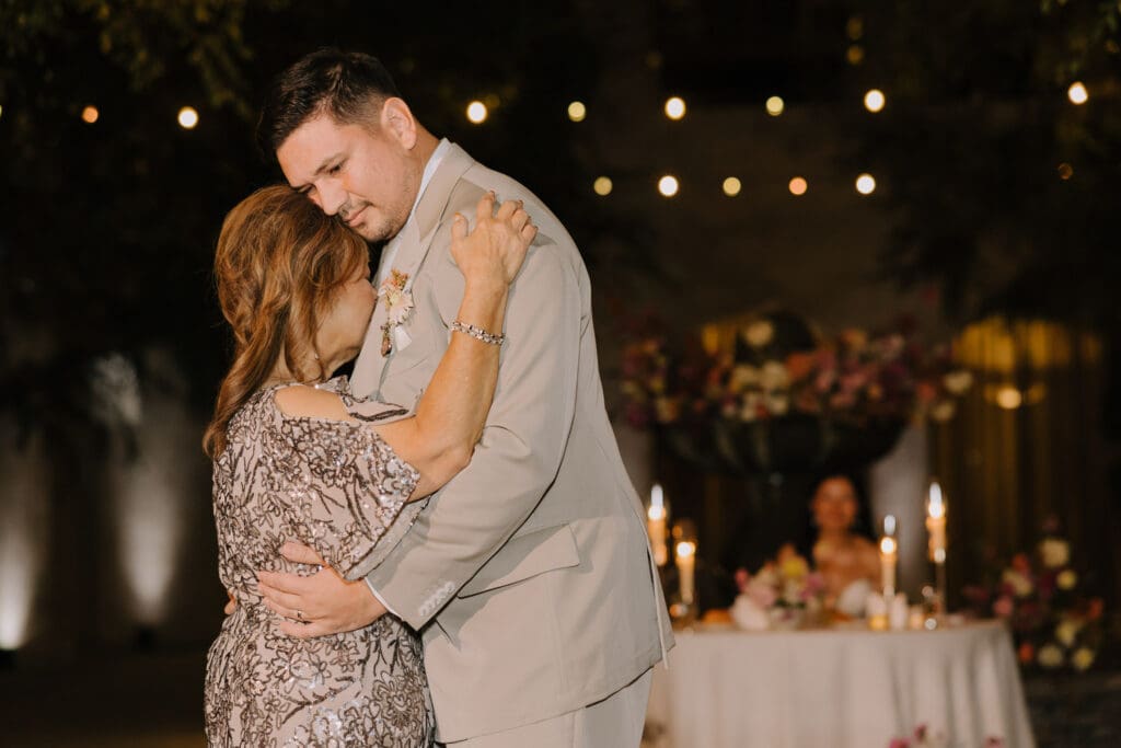 As the sun set, the gold-rimmed tablescapes caught the light, and the plaza transformed into a private Mediterranean estate. This Serra Plaza San Juan Capistrano wedding perfectly balanced the grandeur of a luxury event with the warmth of an outdoor summer night.