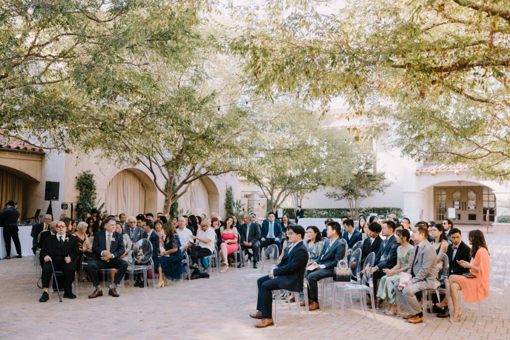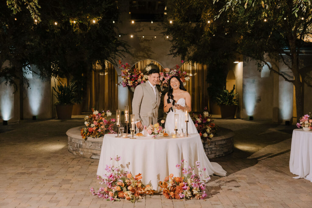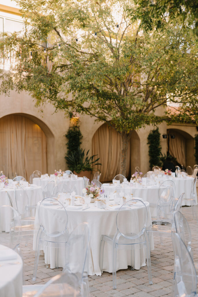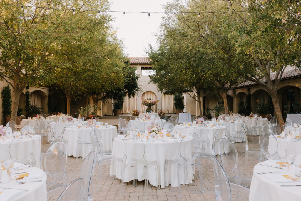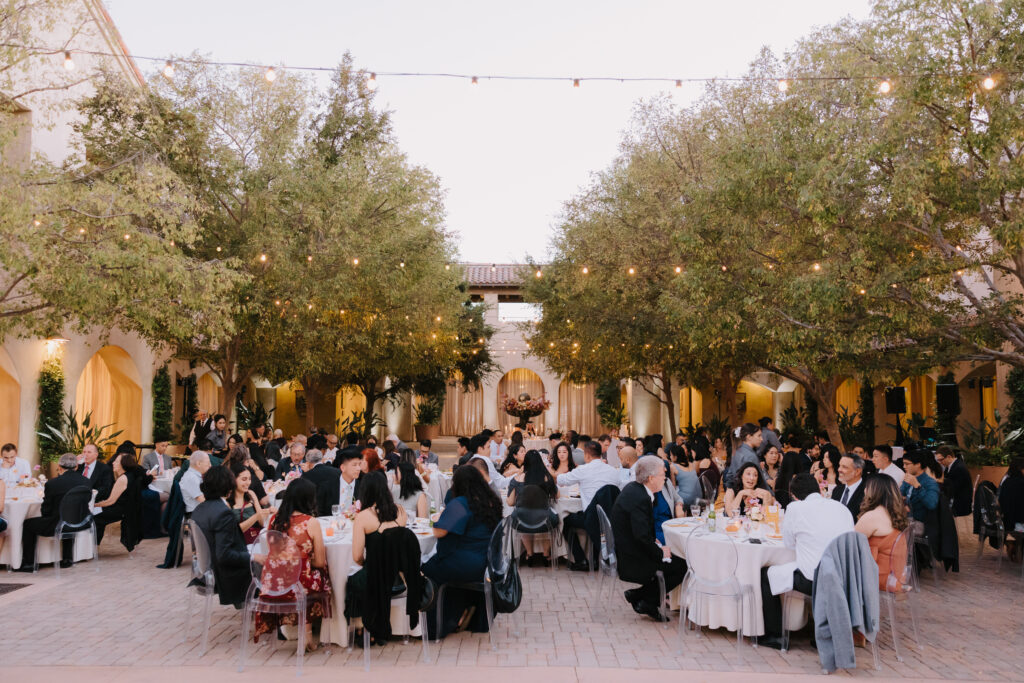 The celebration then moved to Serra Plaza, a stunning open-air courtyard in the heart of the Los Rios District. Alyssa and Marc leaned into a bold, luxury aesthetic to transform the space: