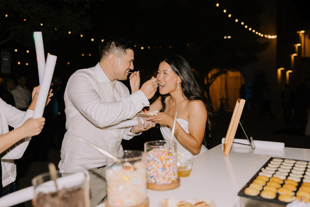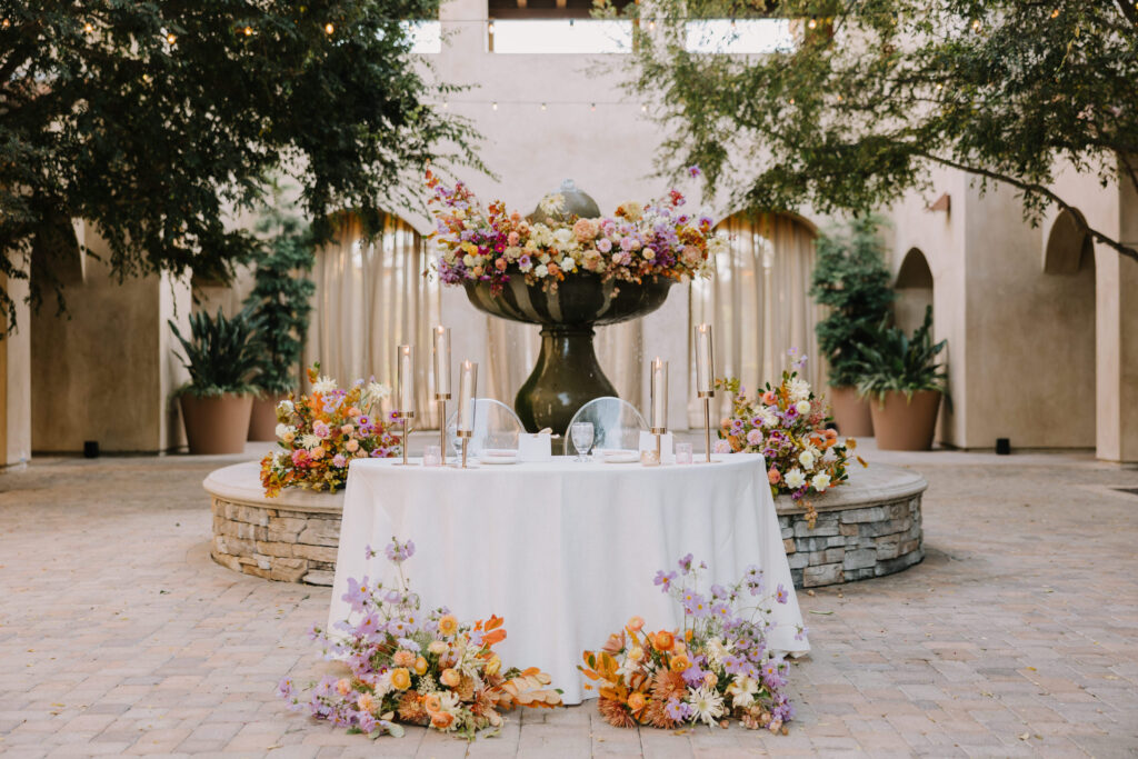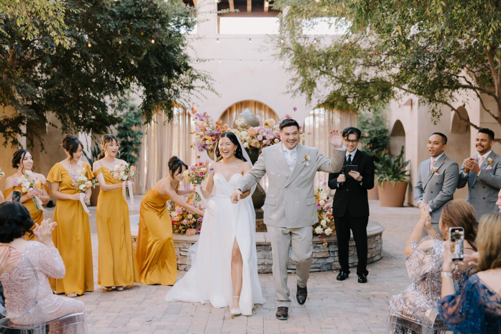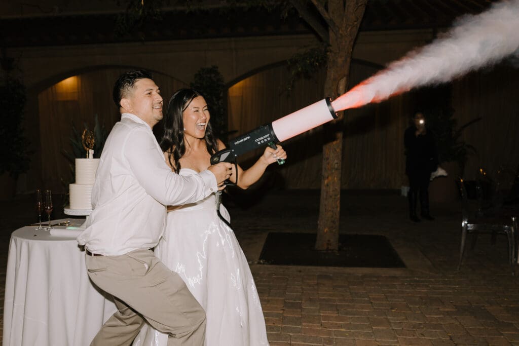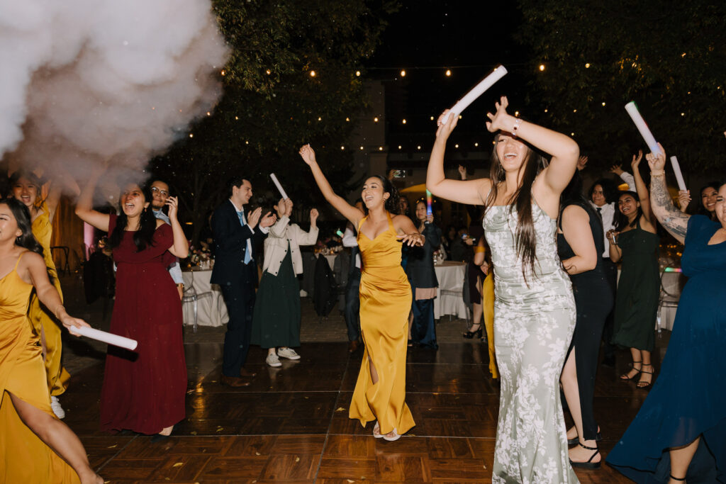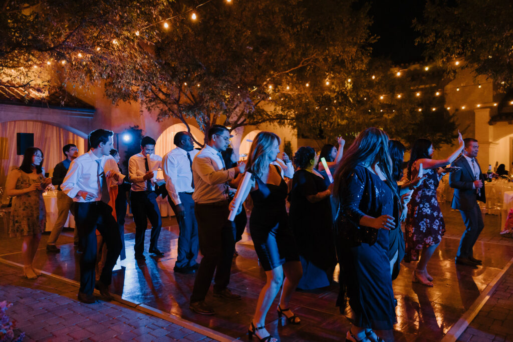 The celebration then moved to Serra Plaza, a stunning open-air courtyard in the heart of the Los Rios District. Alyssa and Marc leaned into a bold, luxury aesthetic to transform the space: