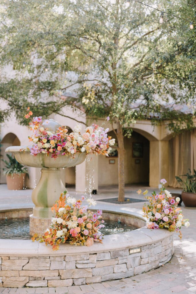 - The Venue: Spanish-style architecture centered around a grand stone fountain.