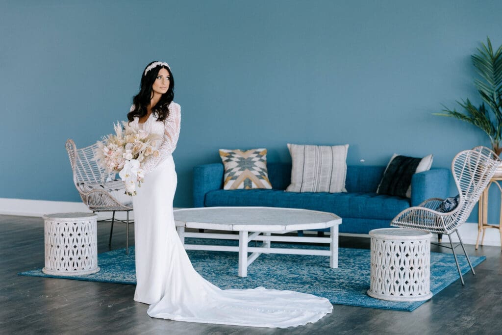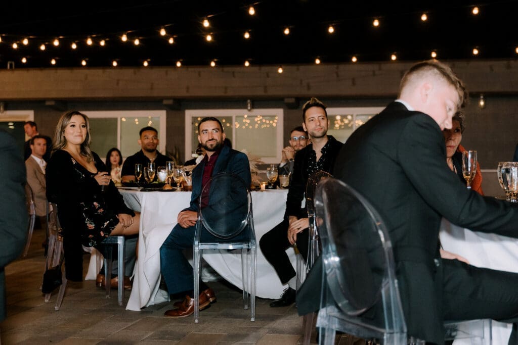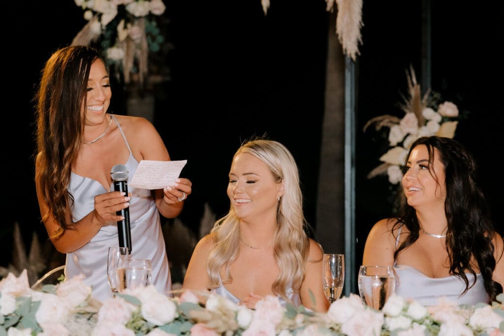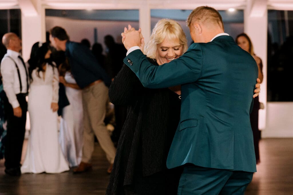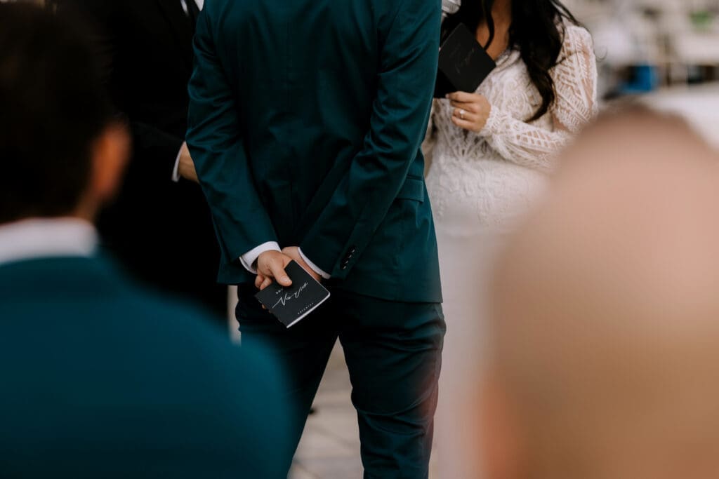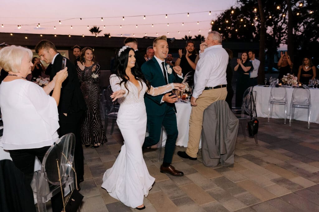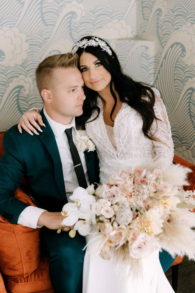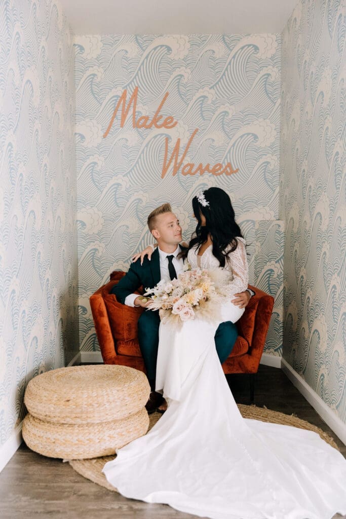 The design for this day was nothing short of picturesque. Specifically, the deep blue tones of the venue walls and the crashing Pacific waves provided a stunning natural canvas. To create a striking contrast, Bruce and Emily chose to incorporate bold yet graceful black accents. Consequently, the dark tones “popped” against the coastal scenery, proving that black is a sophisticated choice for a beach-side celebration.
