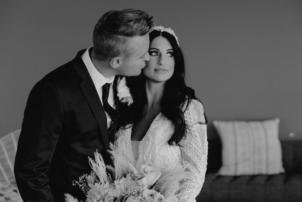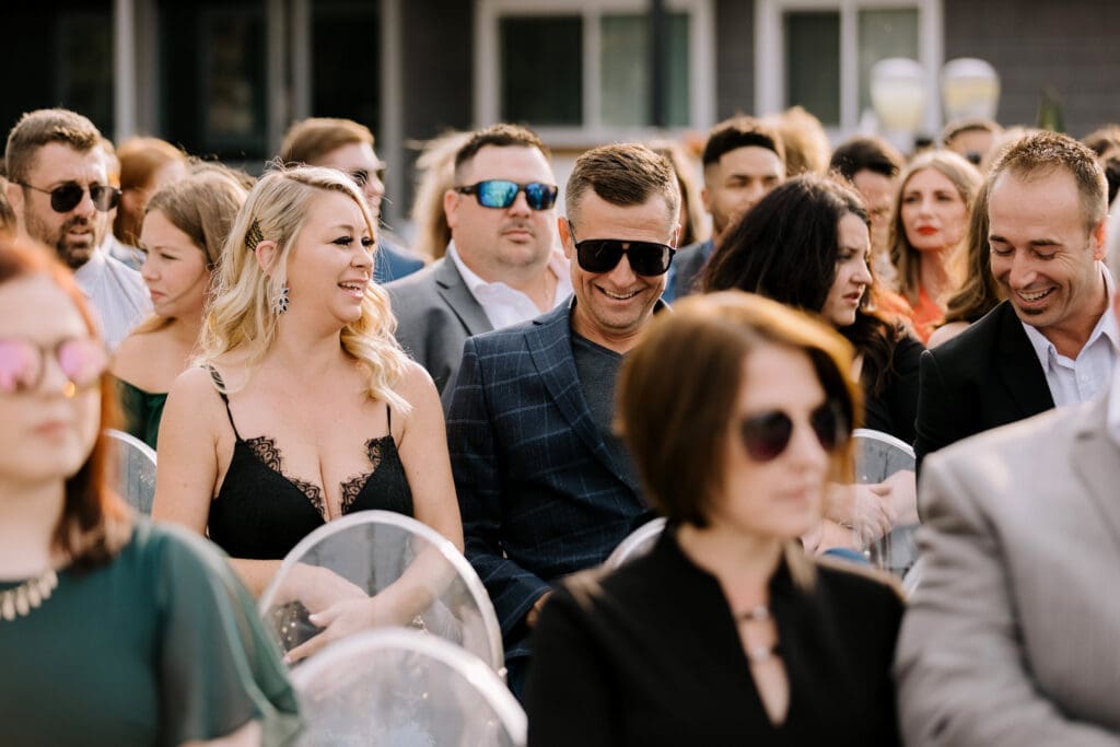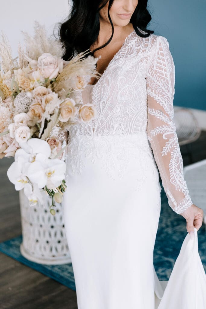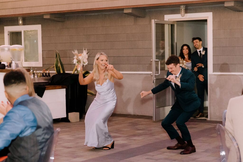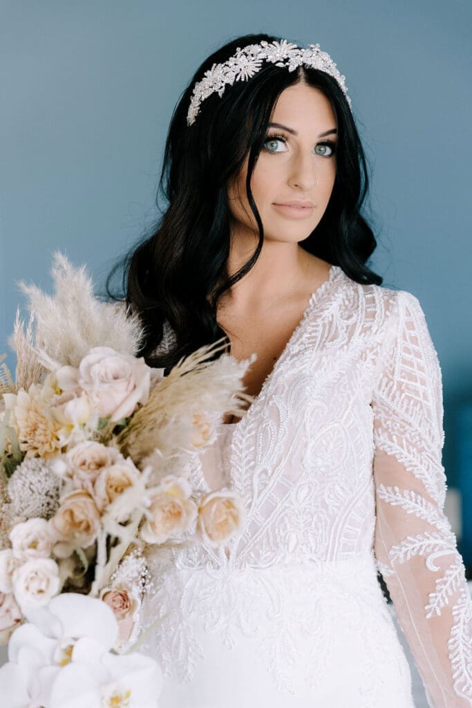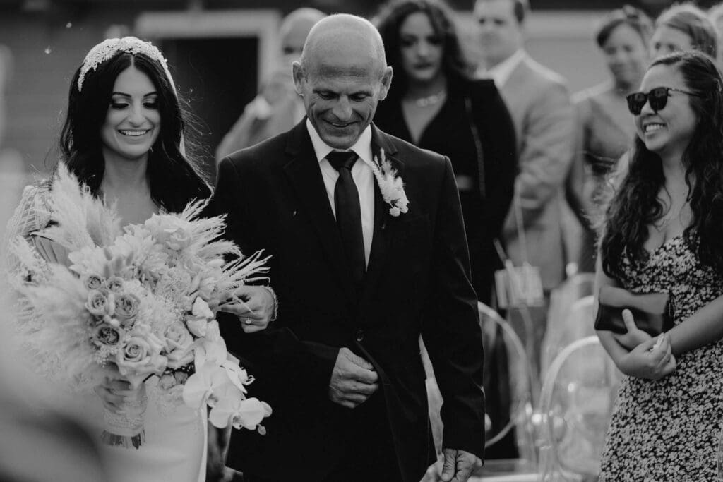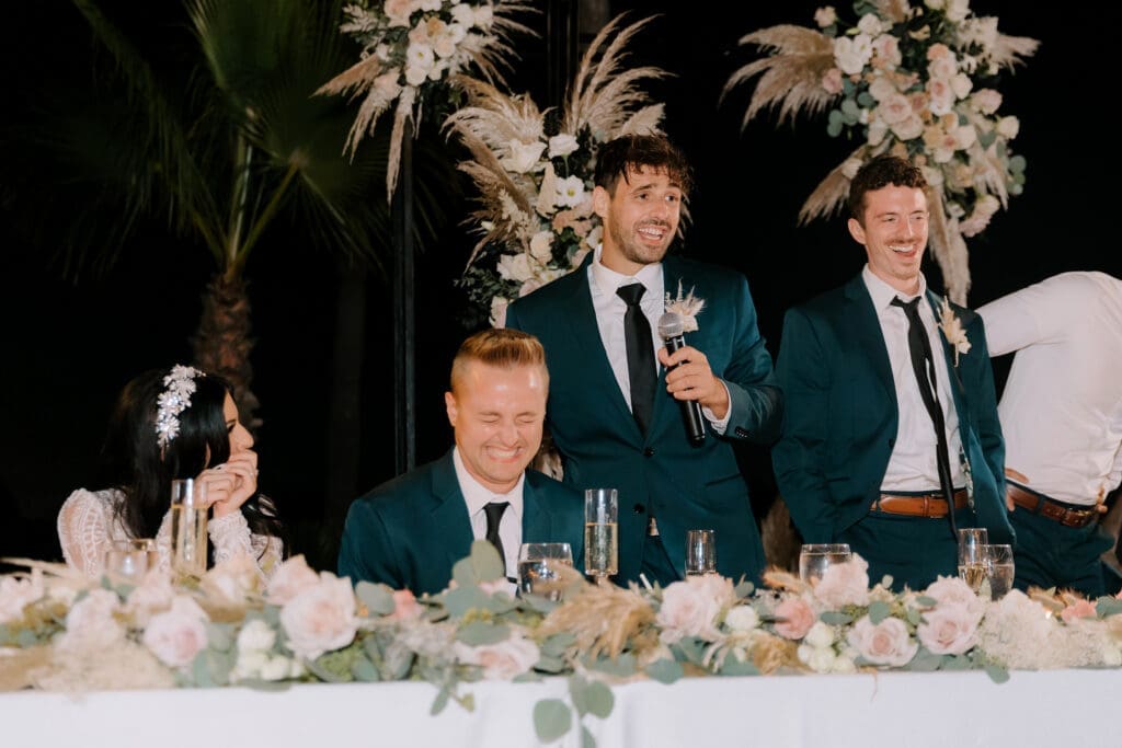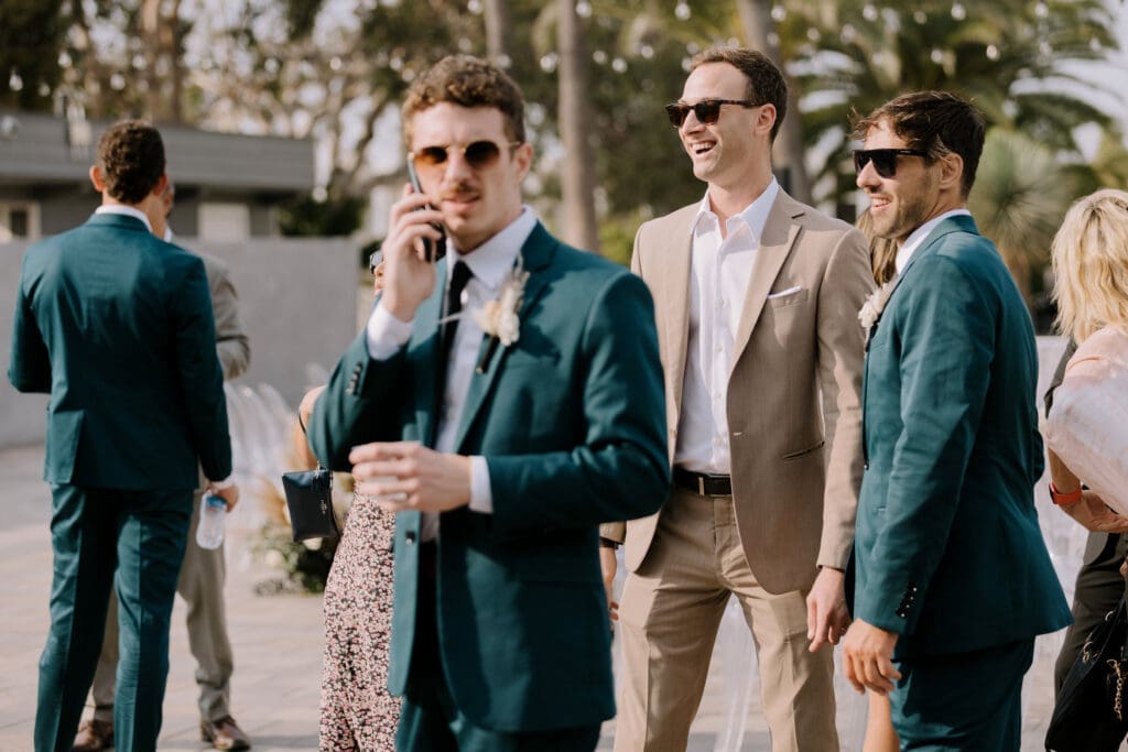 The design for this day was nothing short of picturesque. Specifically, the deep blue tones of the venue walls and the crashing Pacific waves provided a stunning natural canvas. To create a striking contrast, Bruce and Emily chose to incorporate bold yet graceful black accents. Consequently, the dark tones “popped” against the coastal scenery, proving that black is a sophisticated choice for a beach-side celebration.