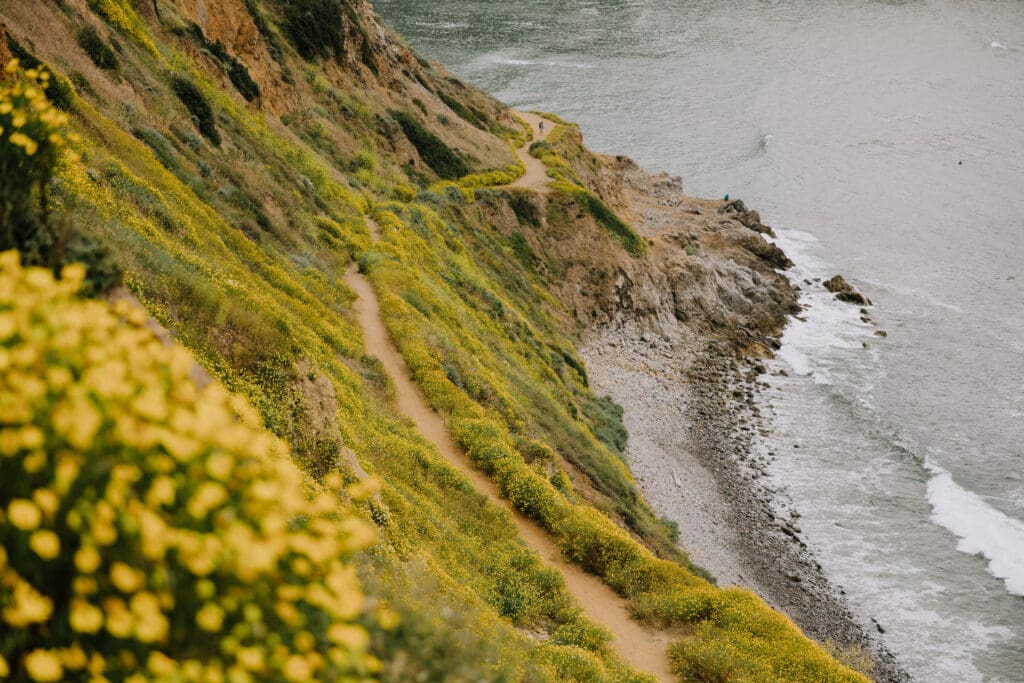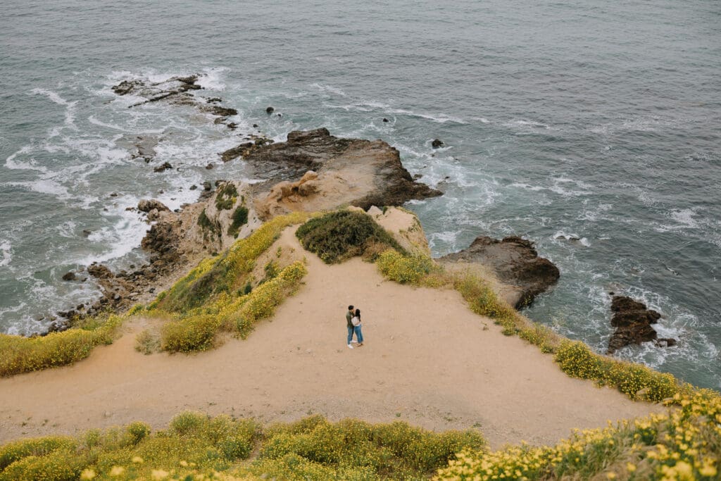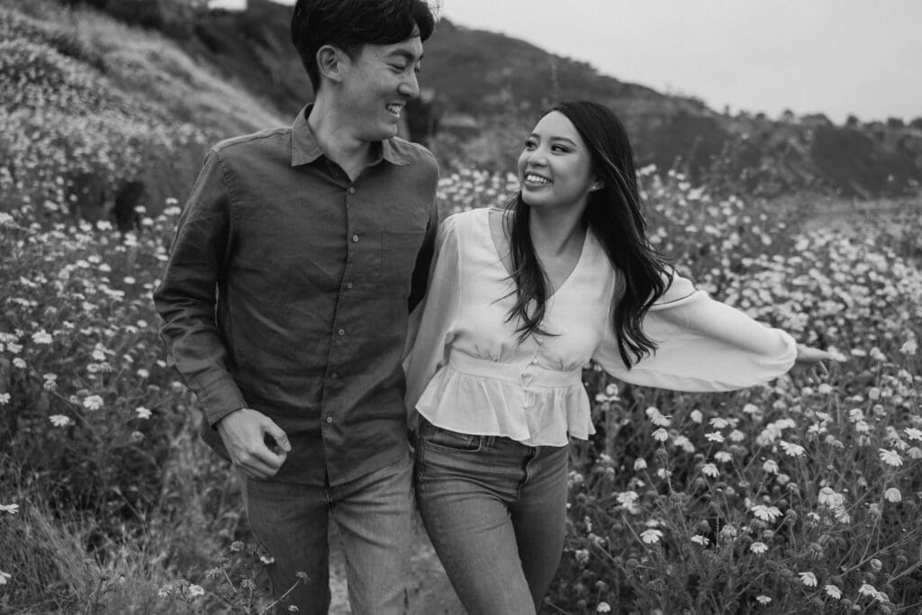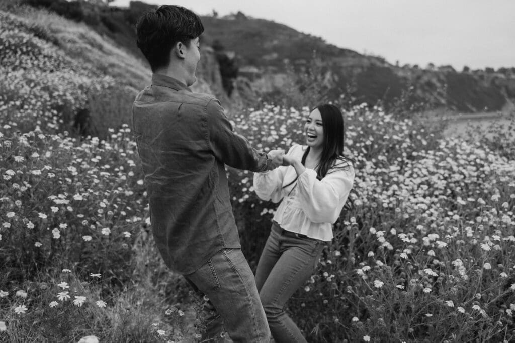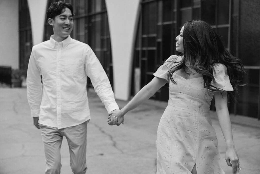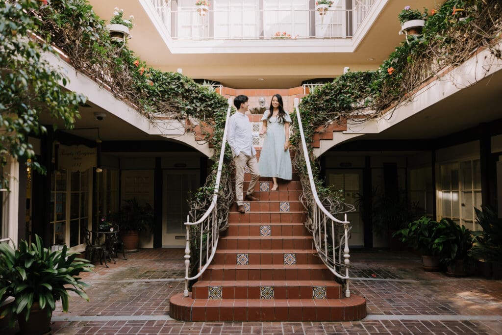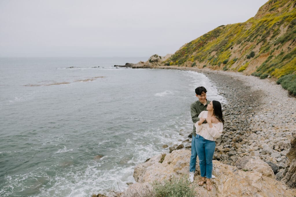 Consequently, Palos Verdes Estates was the most fitting backdrop for their portraits. As the sun set over the Pacific Ocean, the couple strolled hand in hand, soaking in the coastal romance. Furthermore, the golden hour light perfectly captured their authentic connection and playful spirits.