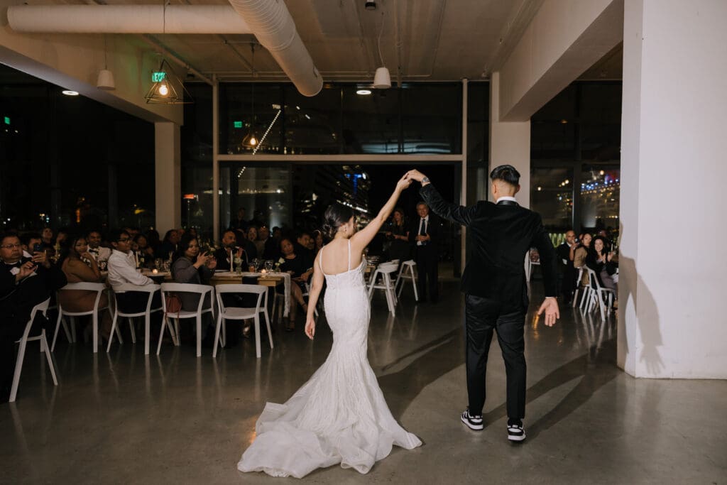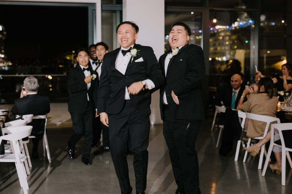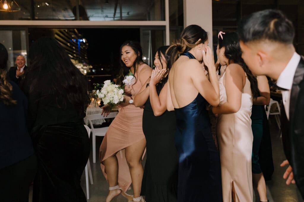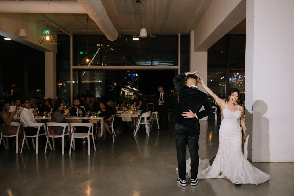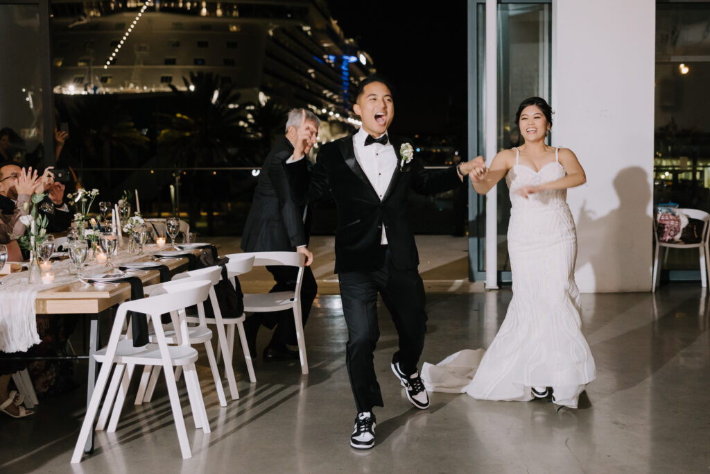 The celebration began with a ceremony on the terrace. Afterward, the party moved seamlessly indoors. Because the venue has massive sliding glass doors, the connection to the water remained all night. Consequently, guests could enjoy the harbor breeze while dancing the night away.