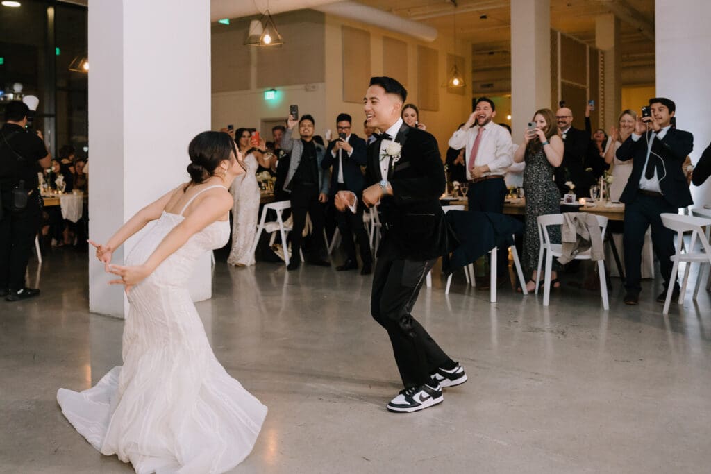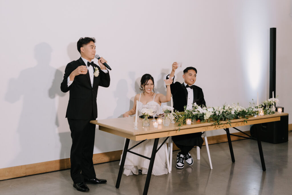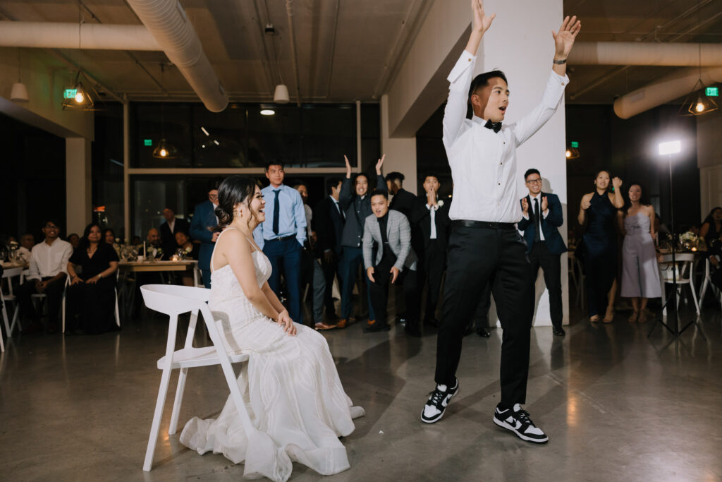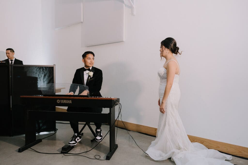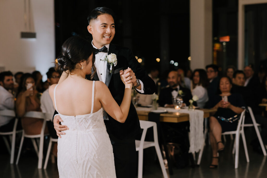 The celebration began with a ceremony on the terrace. Afterward, the party moved seamlessly indoors. Because the venue has massive sliding glass doors, the connection to the water remained all night. Consequently, guests could enjoy the harbor breeze while dancing the night away.