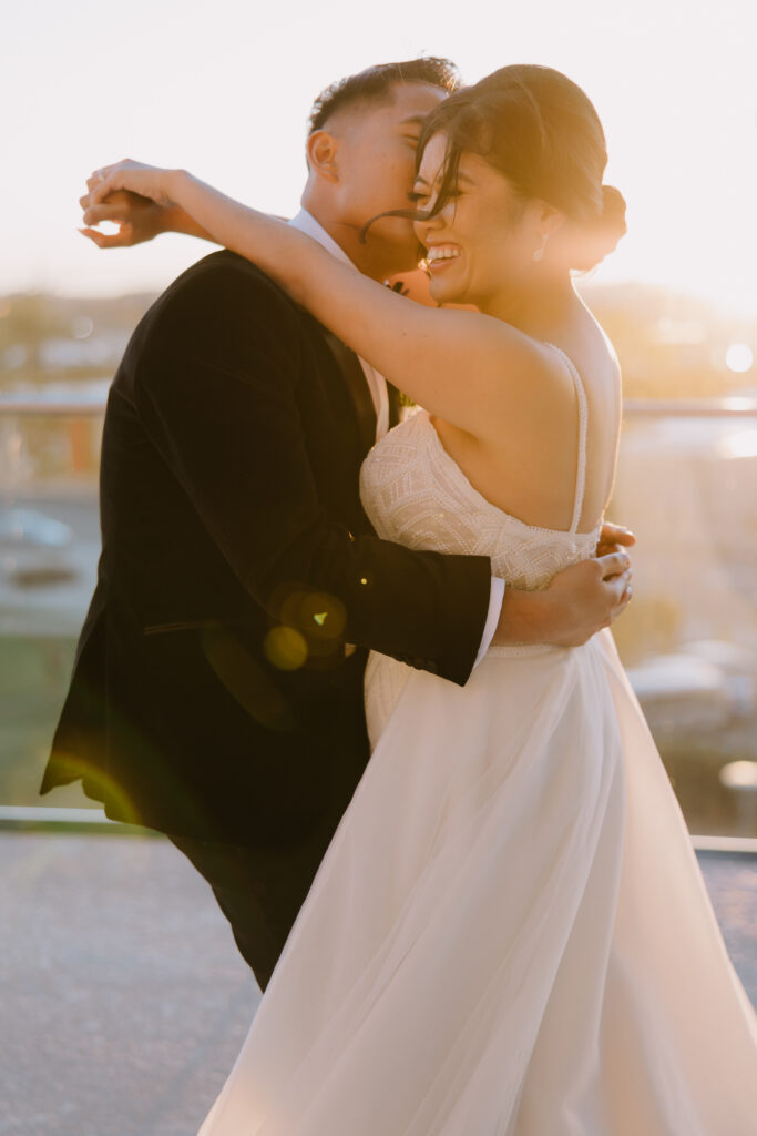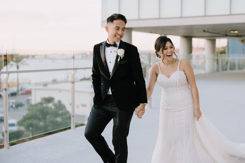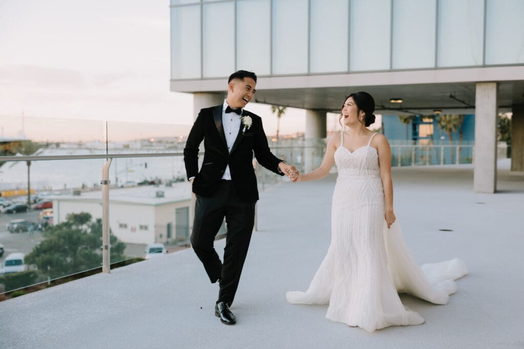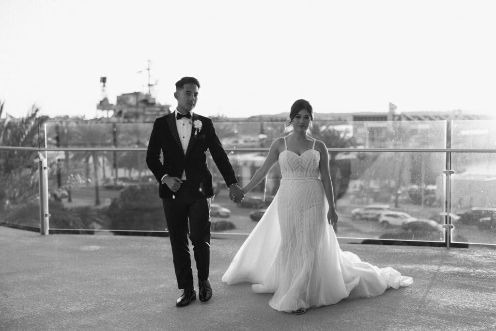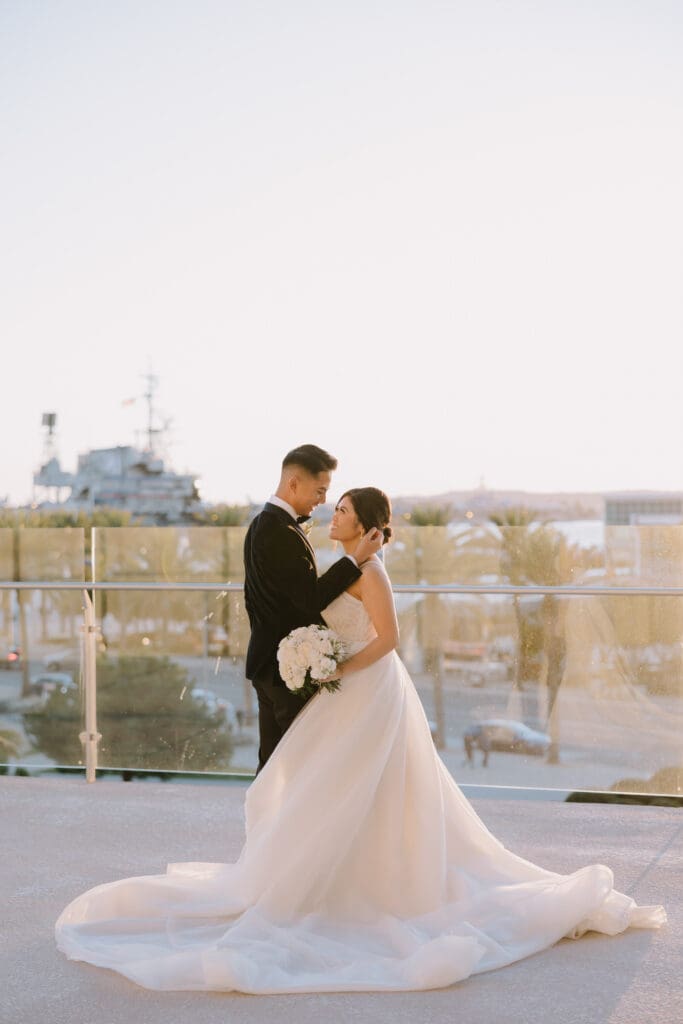 For Sam and Ralph, their wedding day was a love letter to the San Diego coast. They chose The Lane, a premier waterfront venue located in the heart of the downtown Embarcadero. This space is a dream for couples who want a minimalist, “blank canvas” aesthetic paired with the energy of the city.