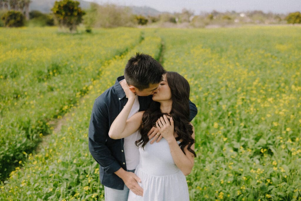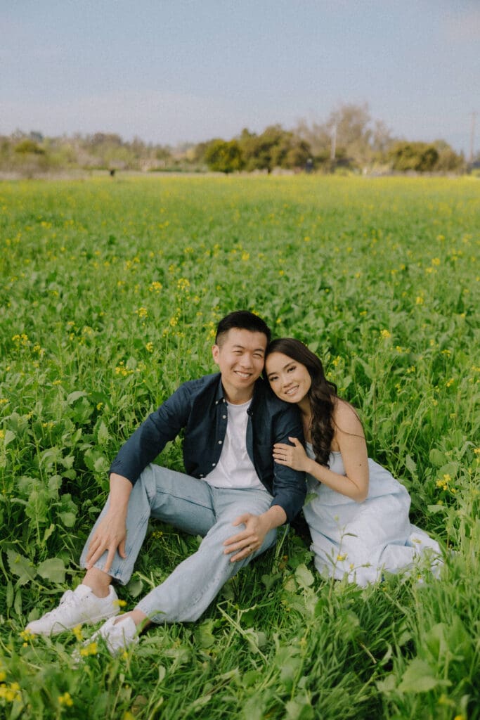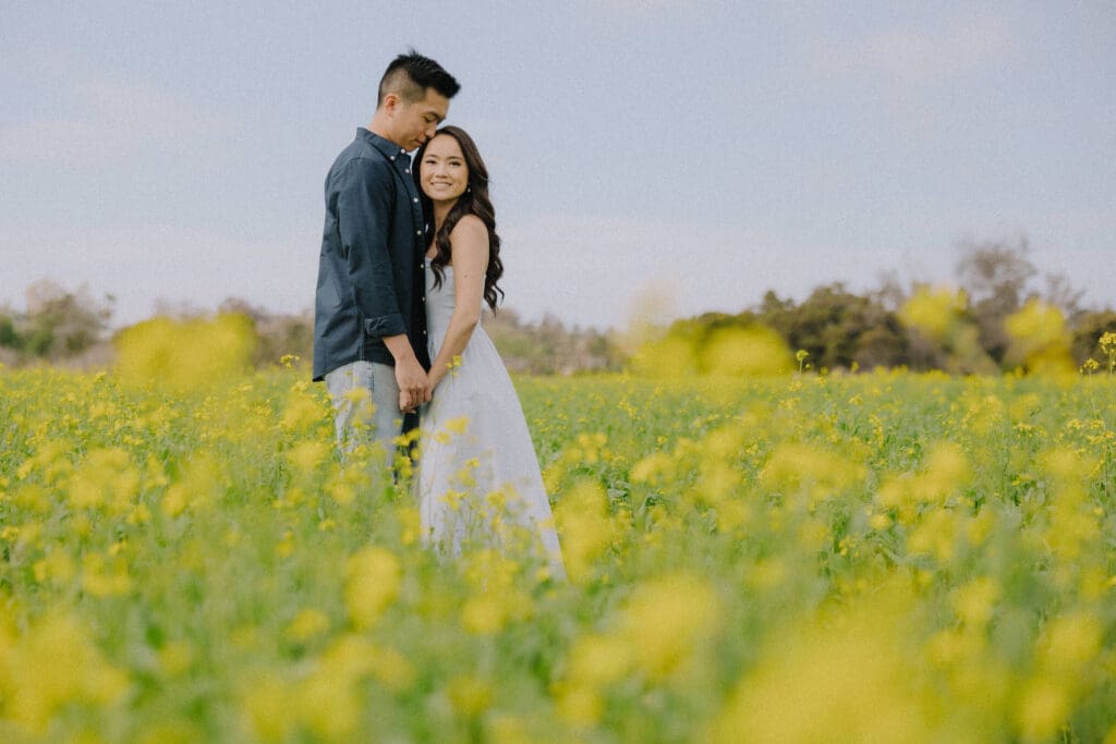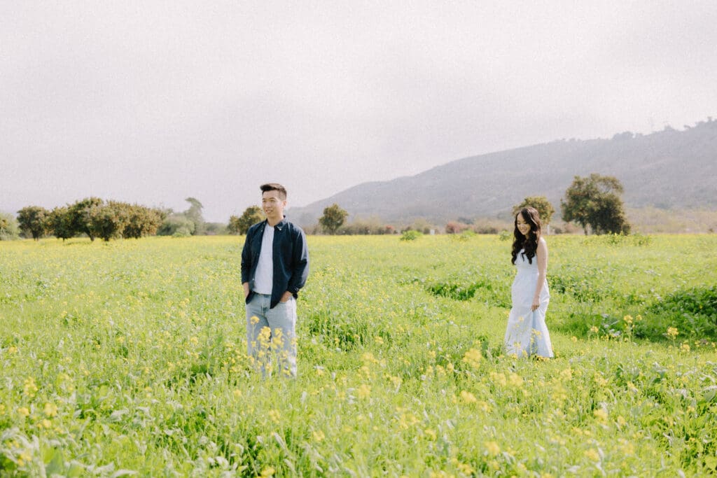 Nature put on a spectacular show for Mai and Nate. The couple scheduled their engagement session during the famous California super bloom. We found the perfect spot in San Juan Capistrano, where vibrant yellow mustard plants covered the hillsides.