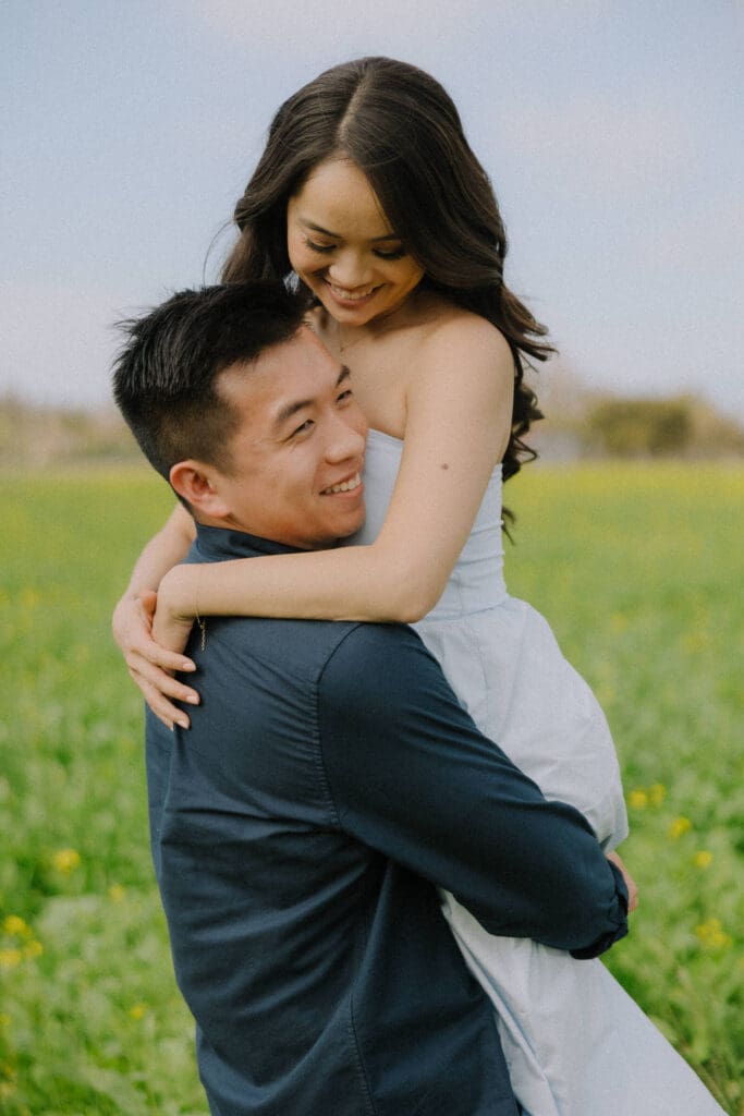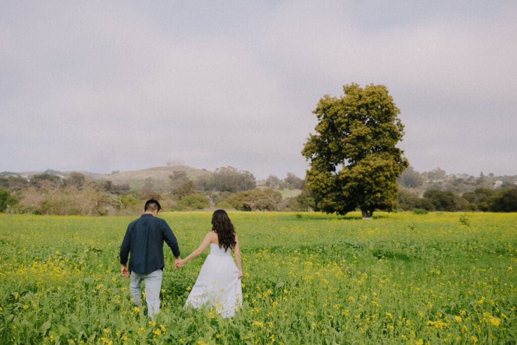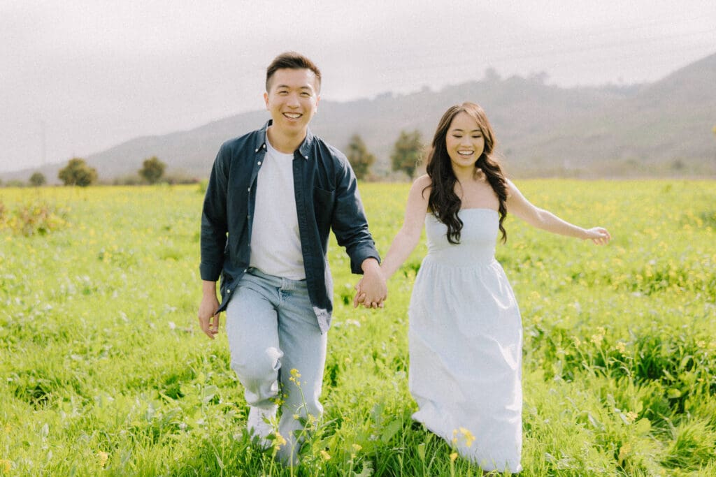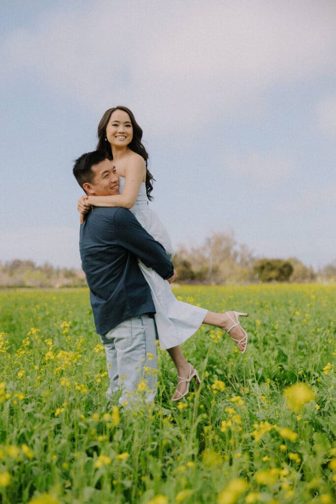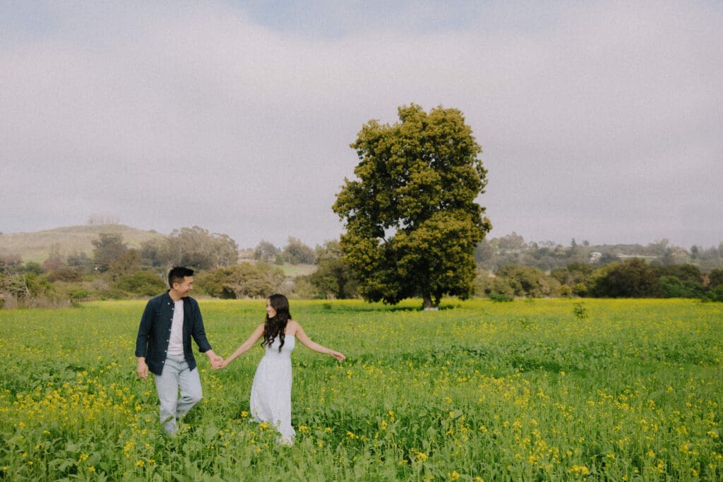 Nature put on a spectacular show for Mai and Nate. The couple scheduled their engagement session during the famous California super bloom. We found the perfect spot in San Juan Capistrano, where vibrant yellow mustard plants covered the hillsides.