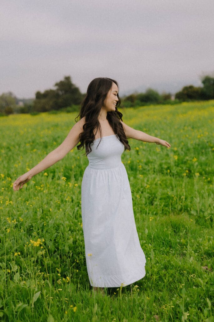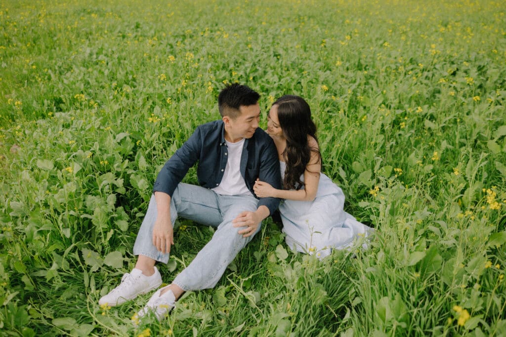 The “spring vibe” was everywhere. Mai and Nate spent the afternoon playing in the flourishing fields. These tall yellow flowers created a natural, whimsical frame for every photo.