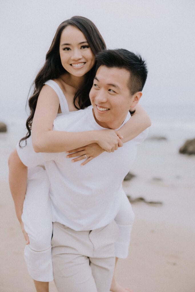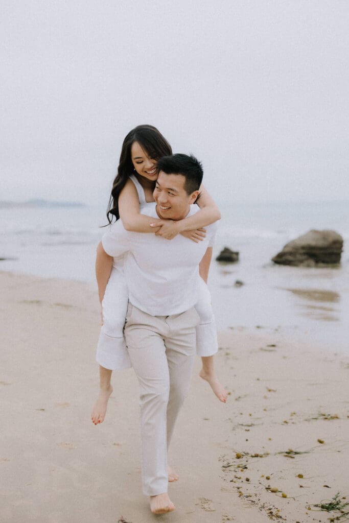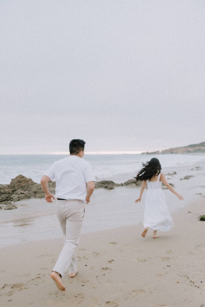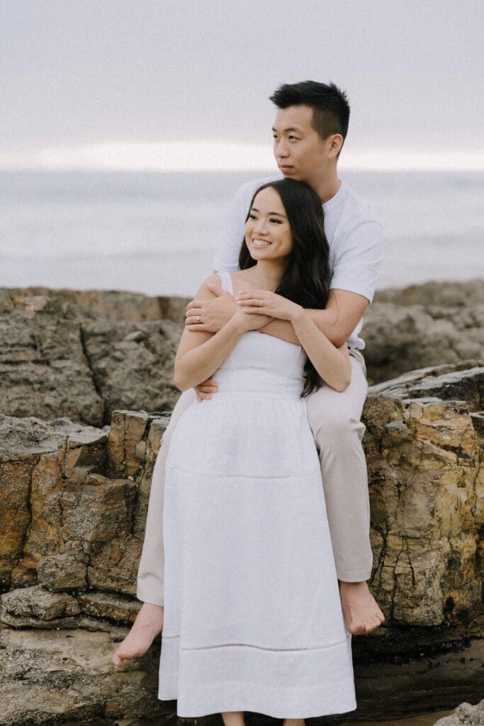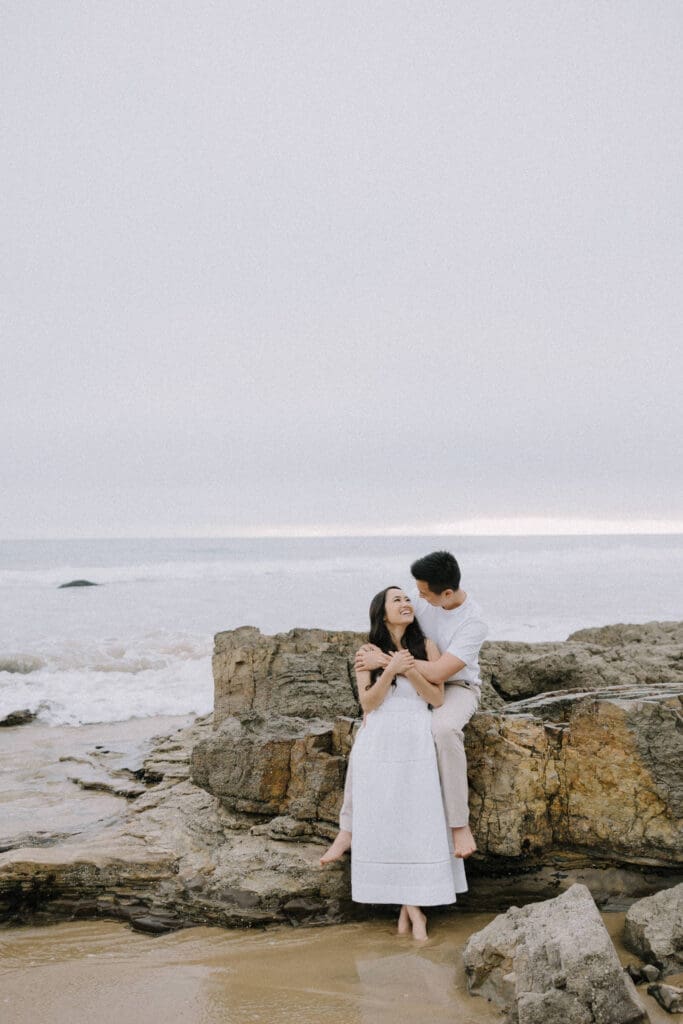 Mai and Nate took an afternoon stroll along the beach. The transition from the golden inland hills to the crashing waves provided two distinct looks for their gallery. They watched the sunset together, ending their session with the ultimate romantic backdrop.