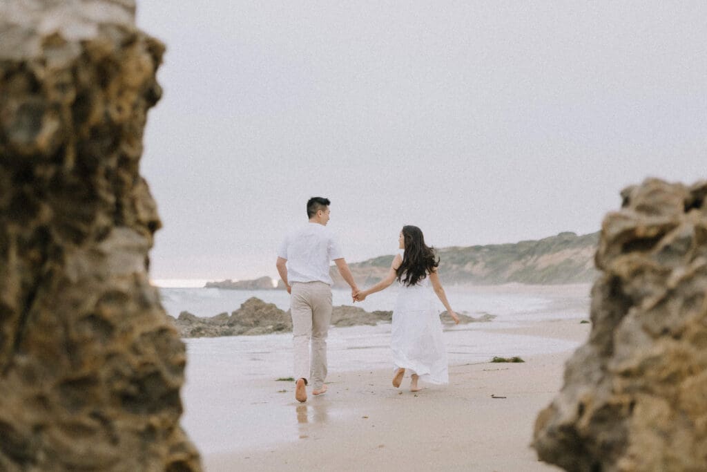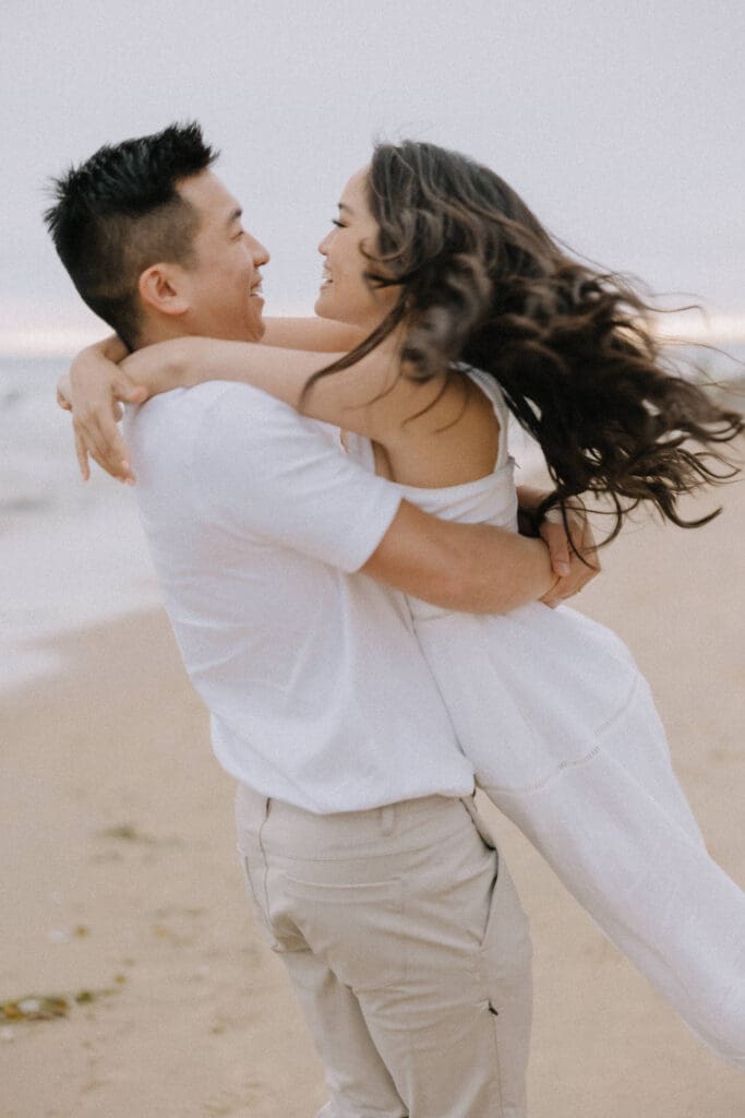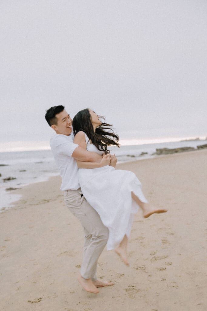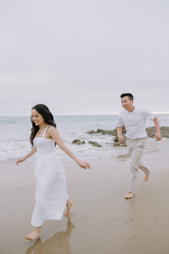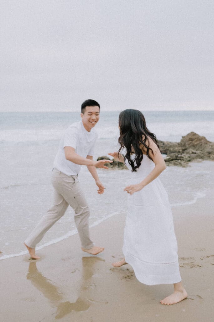 Mai and Nate took an afternoon stroll along the beach. The transition from the golden inland hills to the crashing waves provided two distinct looks for their gallery. They watched the sunset together, ending their session with the ultimate romantic backdrop.