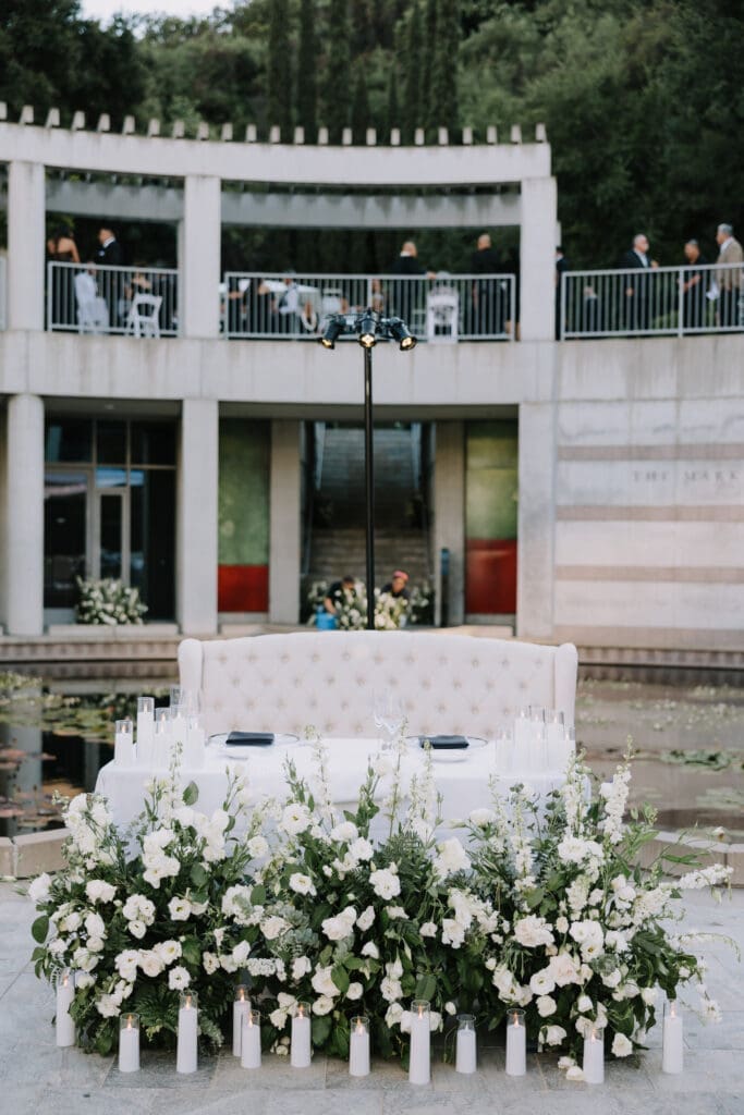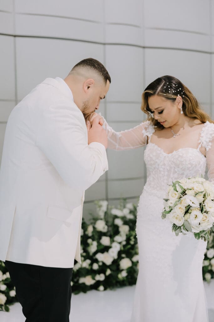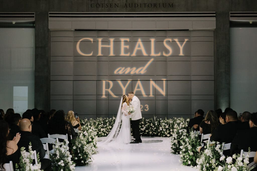 Chealsy and Ryan demonstrated an incredible eye for detail throughout their planning process. Specifically, they chose sleek decor and curated floral arrangements that mirrored their love for timeless elegance. Because the Skirball is known for its dramatic architecture, these modern elements complemented the space perfectly. Consequently, every corner of the celebration felt intentional, from the crisp ceremony lines to the high-fashion floral textures.